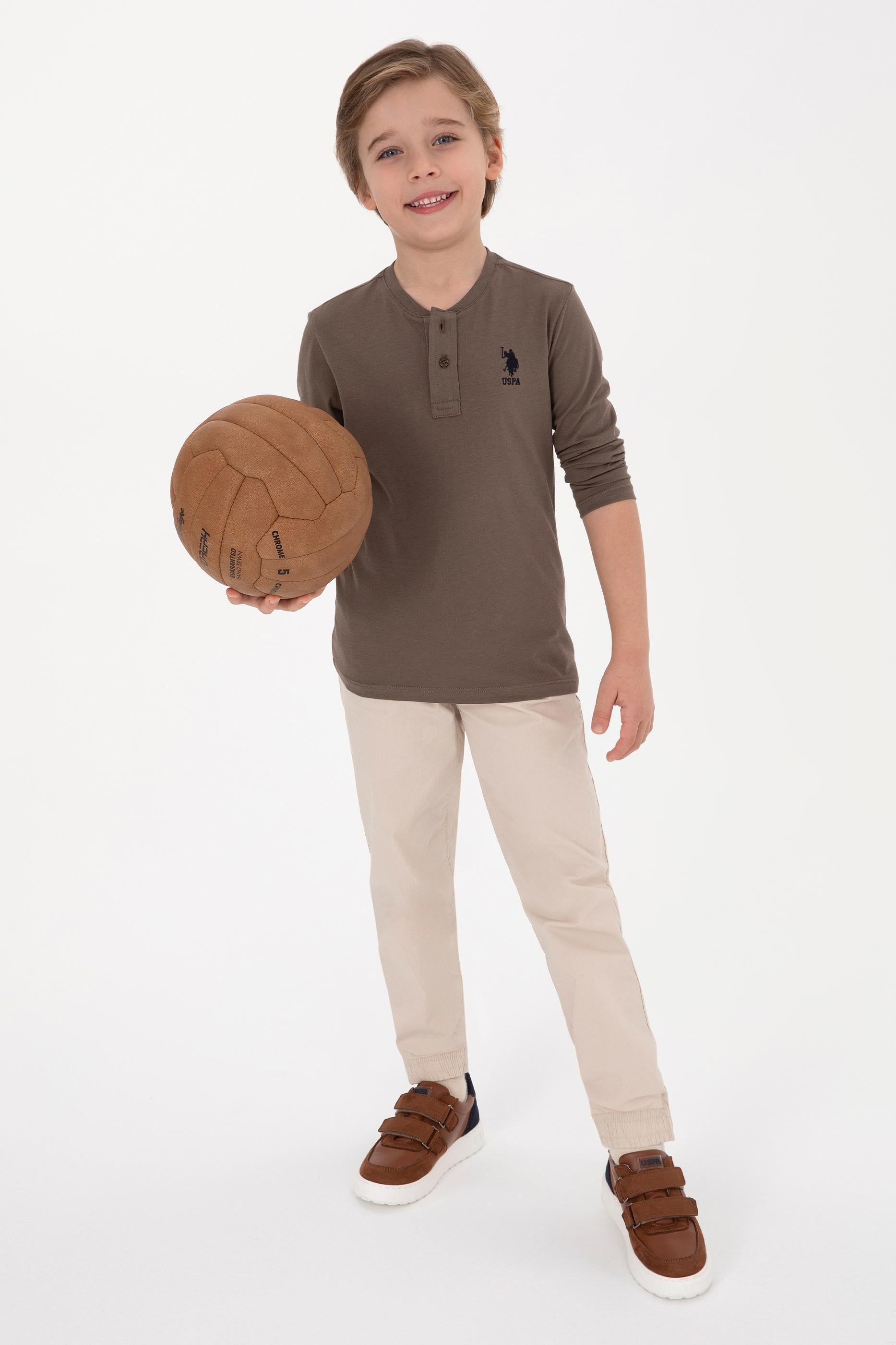 Erkek Çocuk Vizon Bisiklet Yaka Sweatshirt