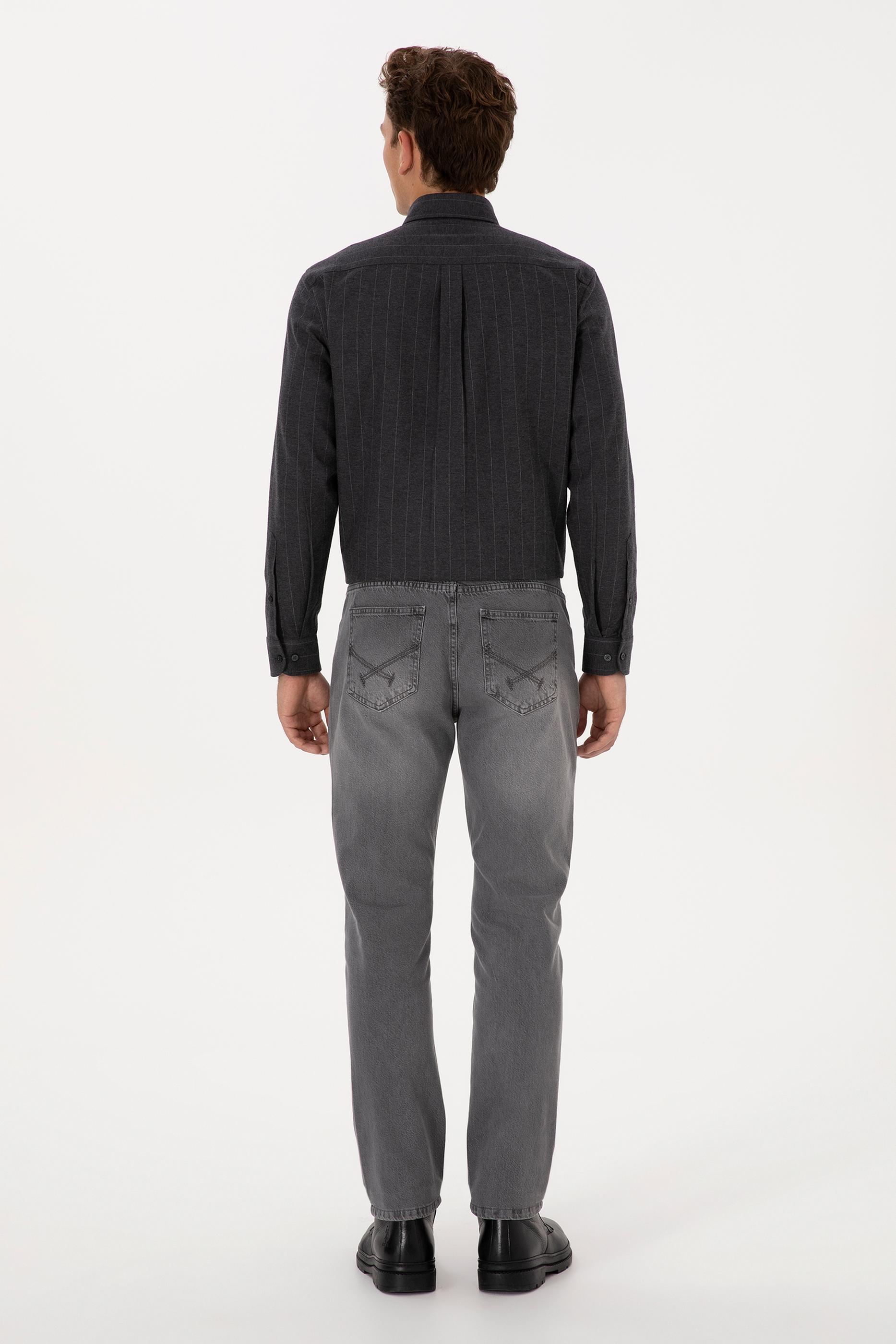 Erkek Gri Straight Fit Jean Pantolon