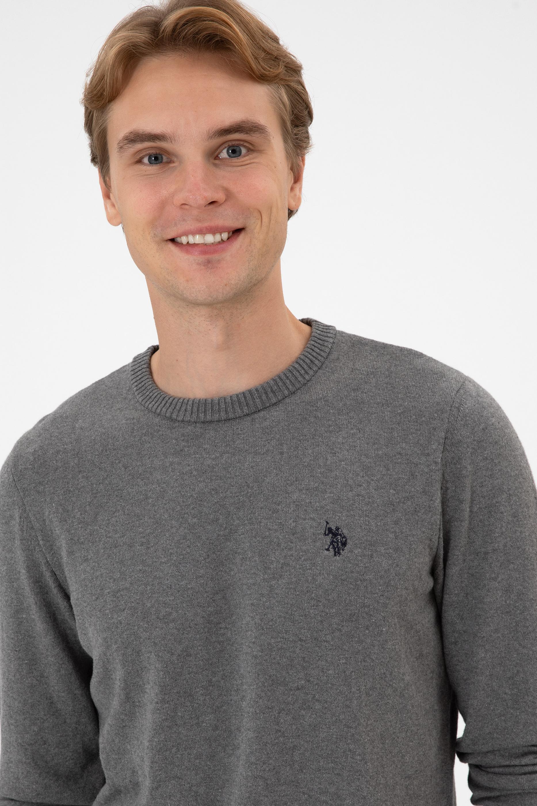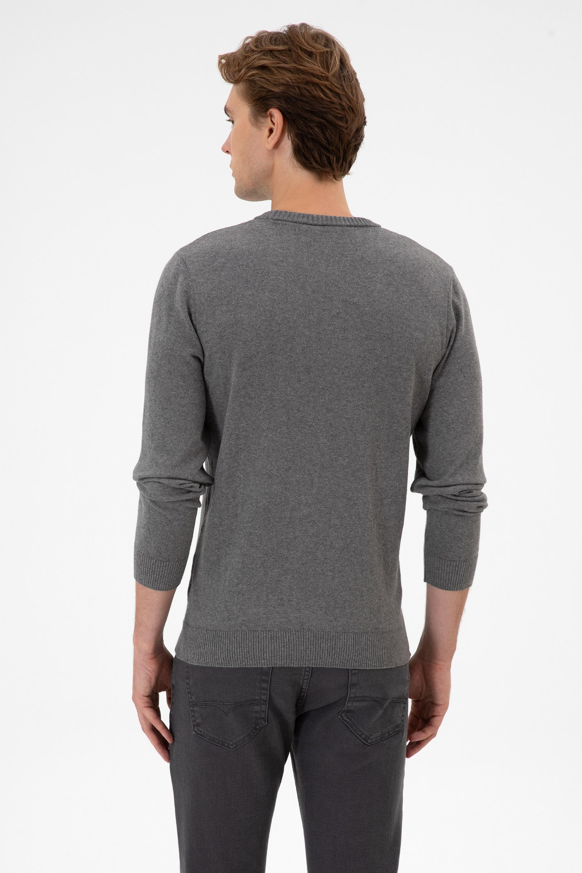 - Erkek Slim Fit Bisiklet Yaka Gri Melanj Basic Kazak