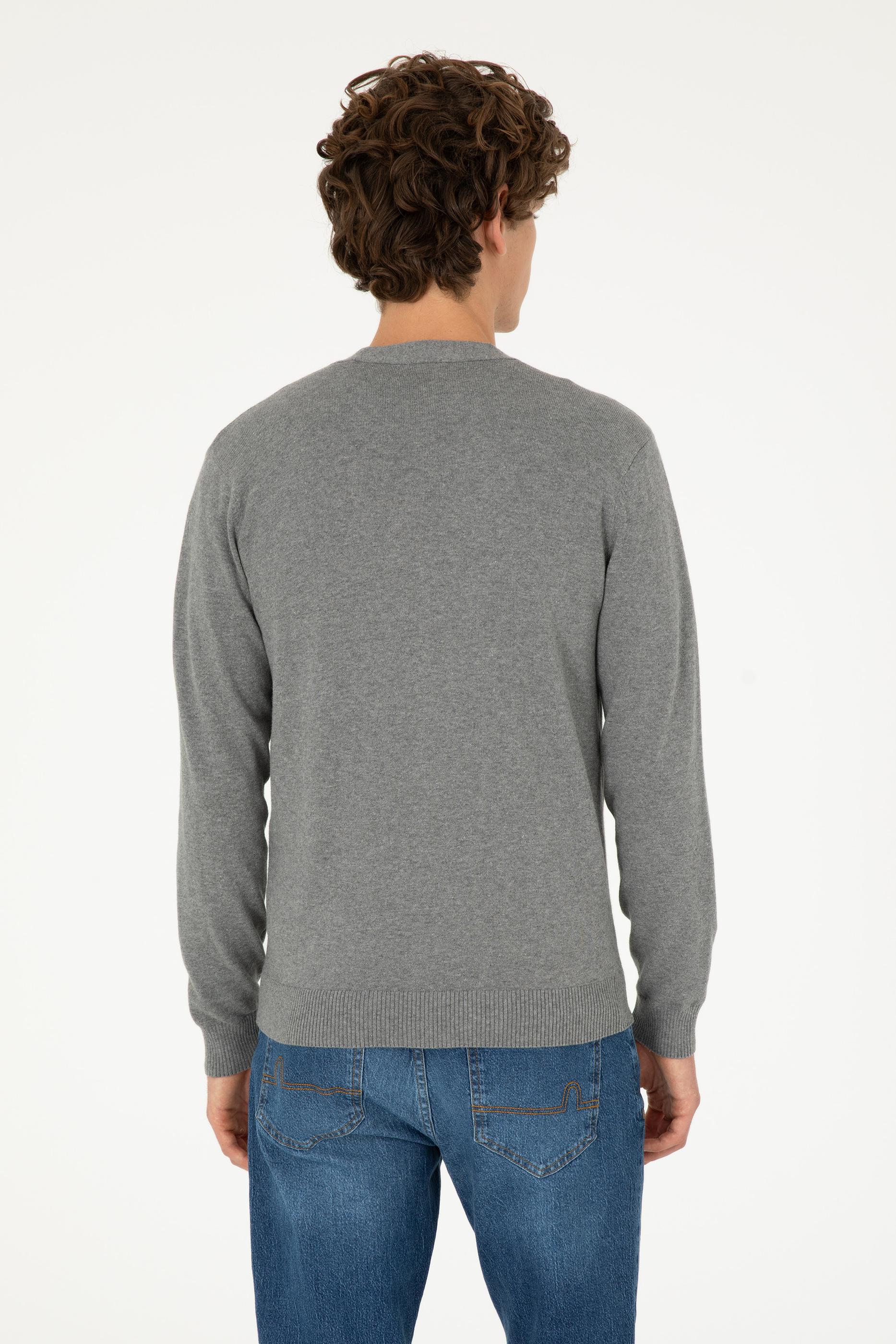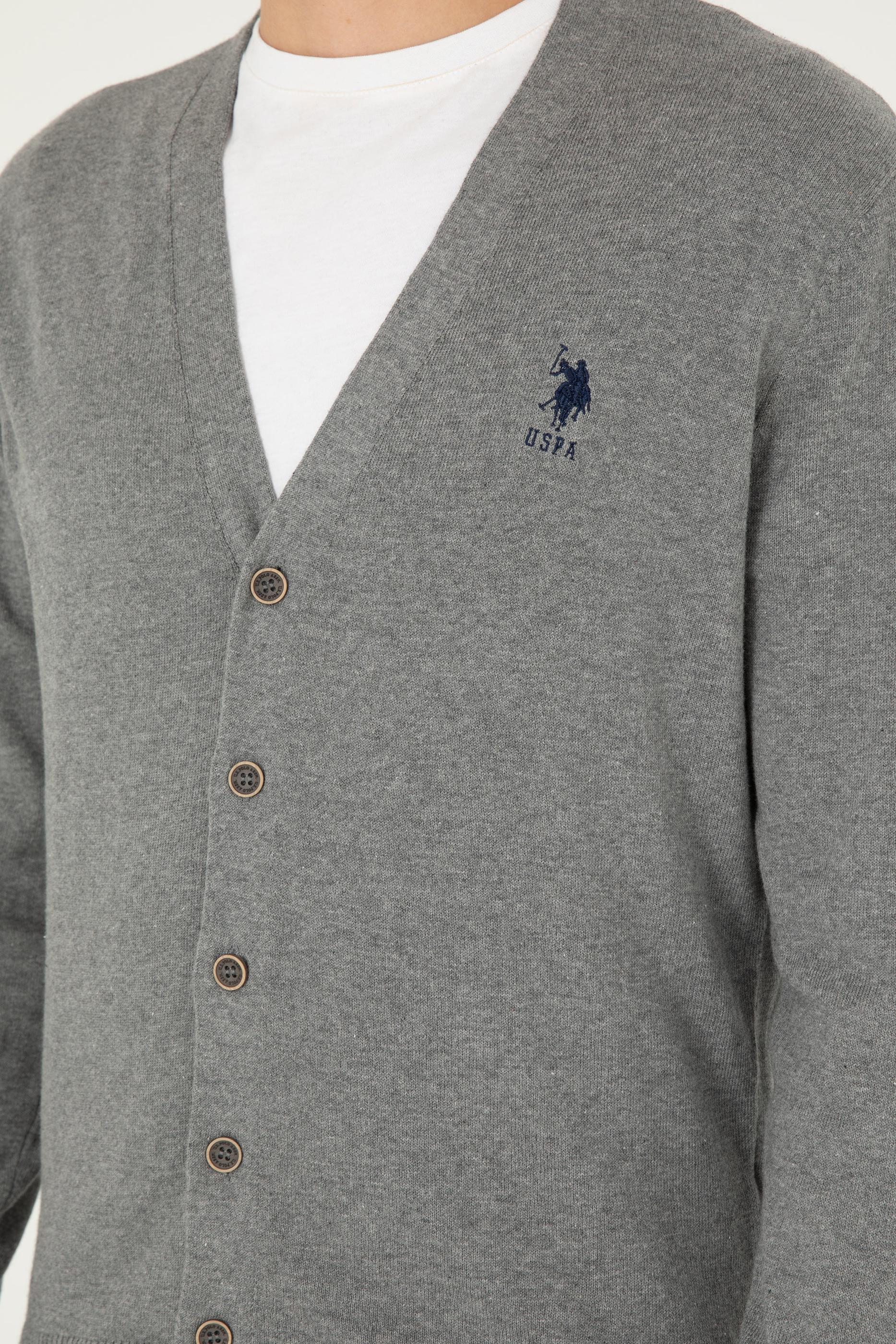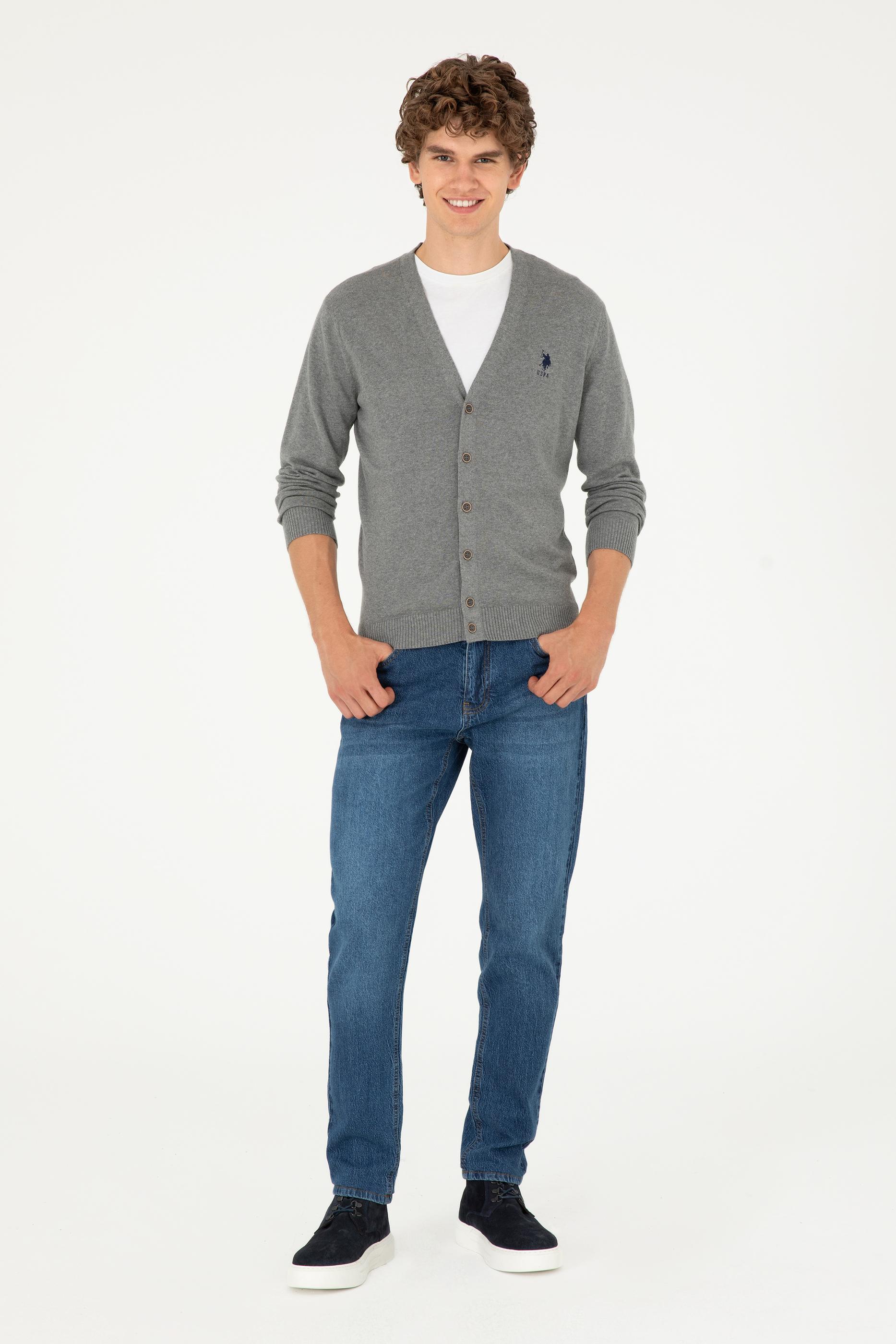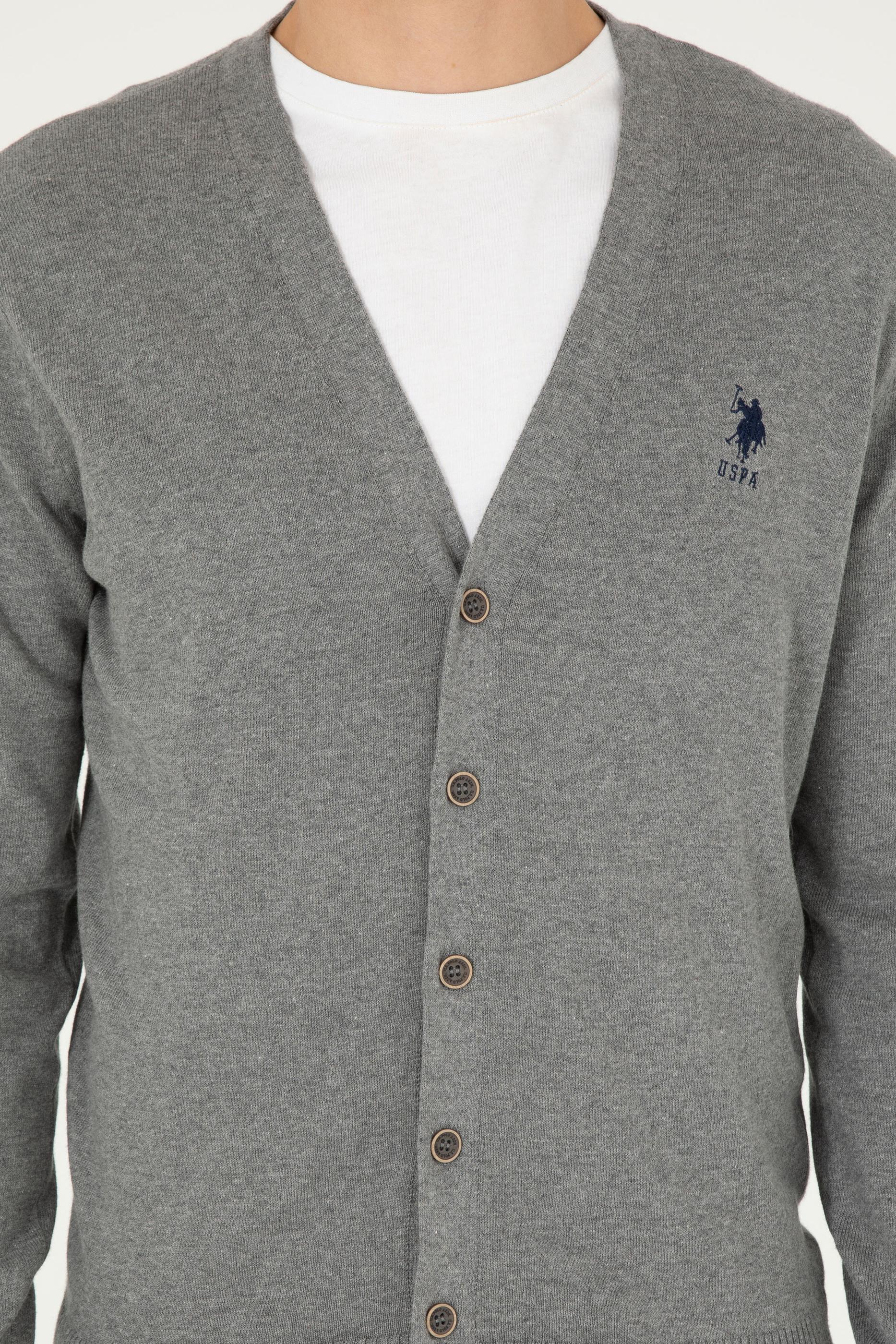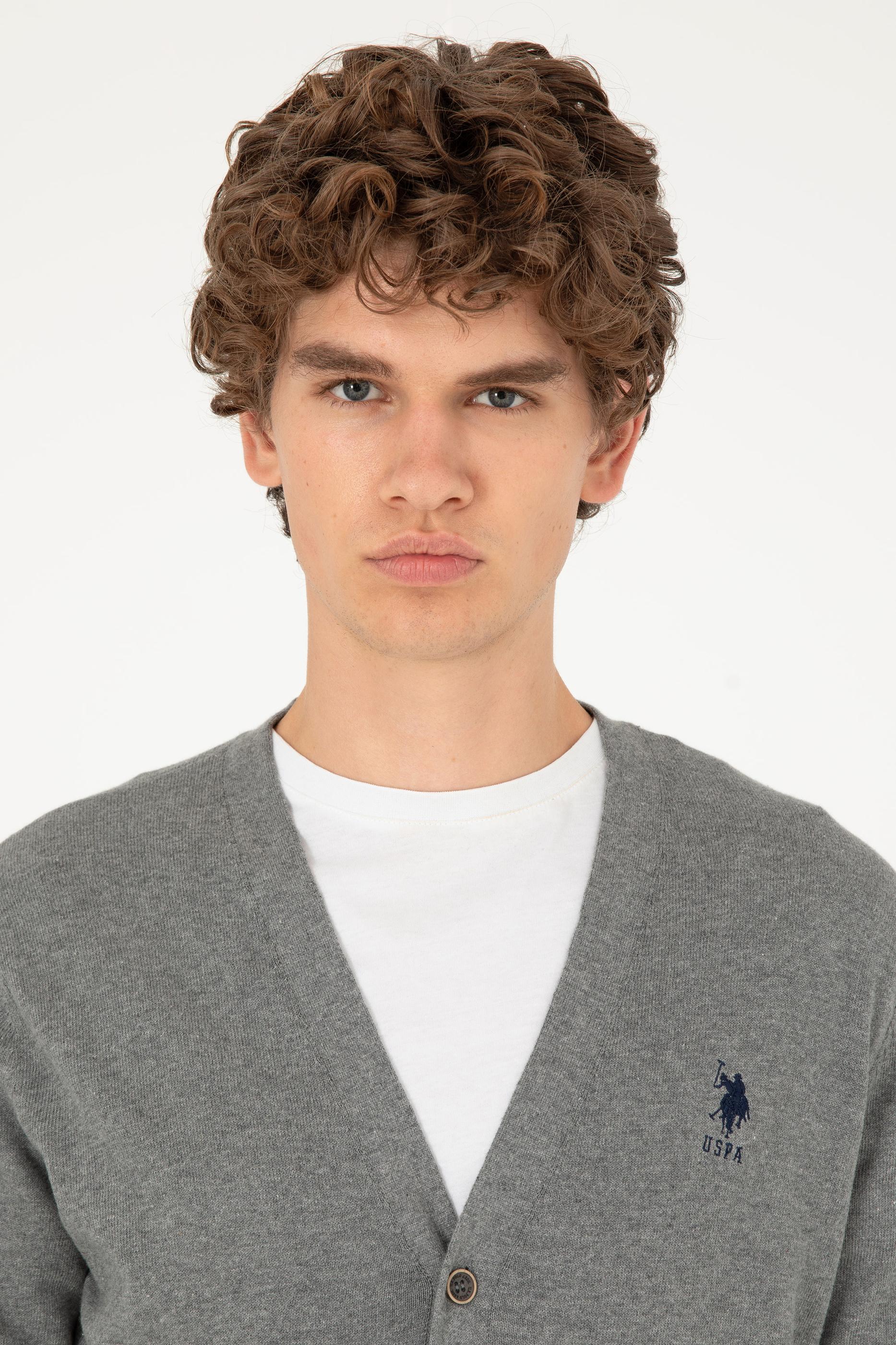 Erkek Gri Melanj Basic Triko Hırka