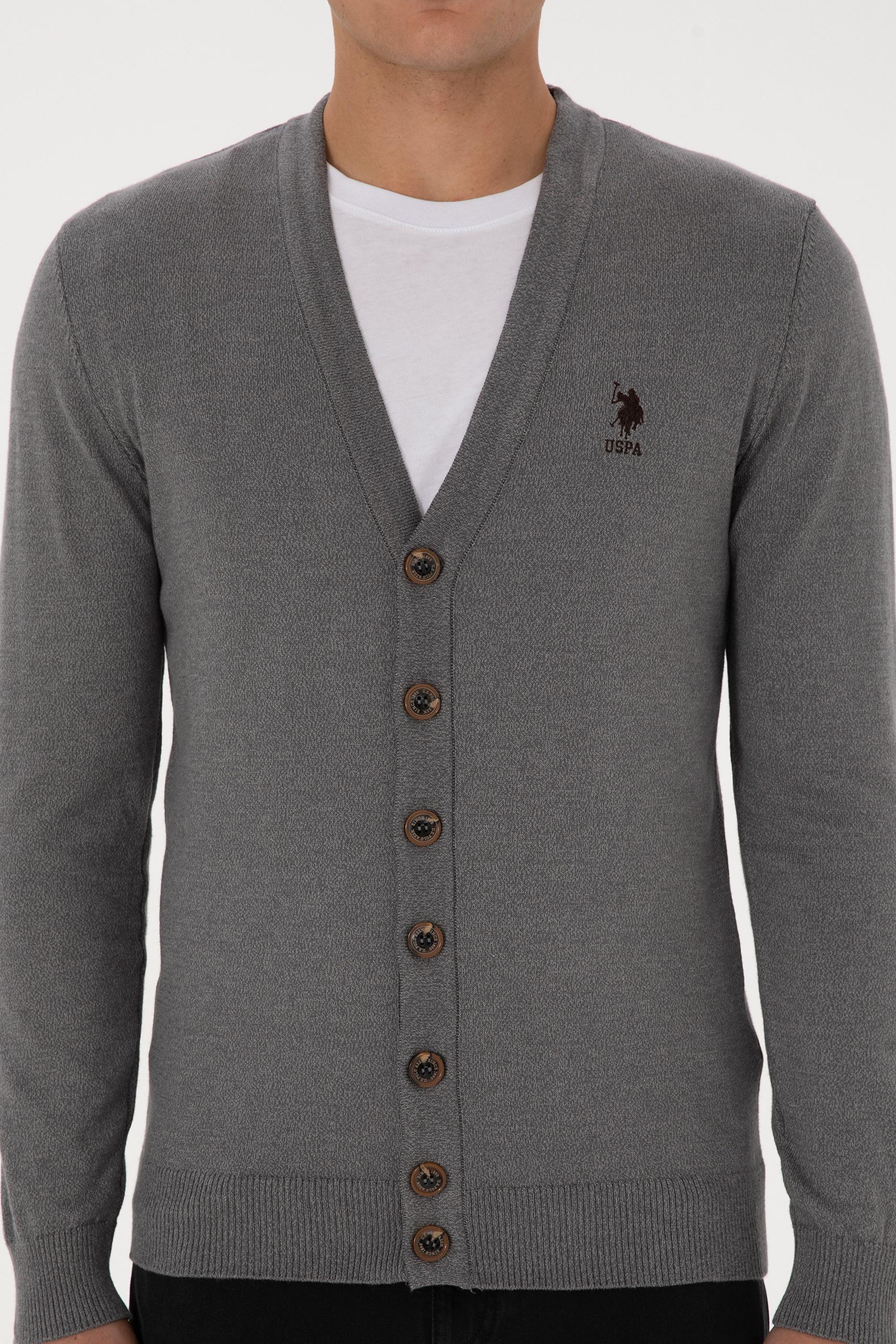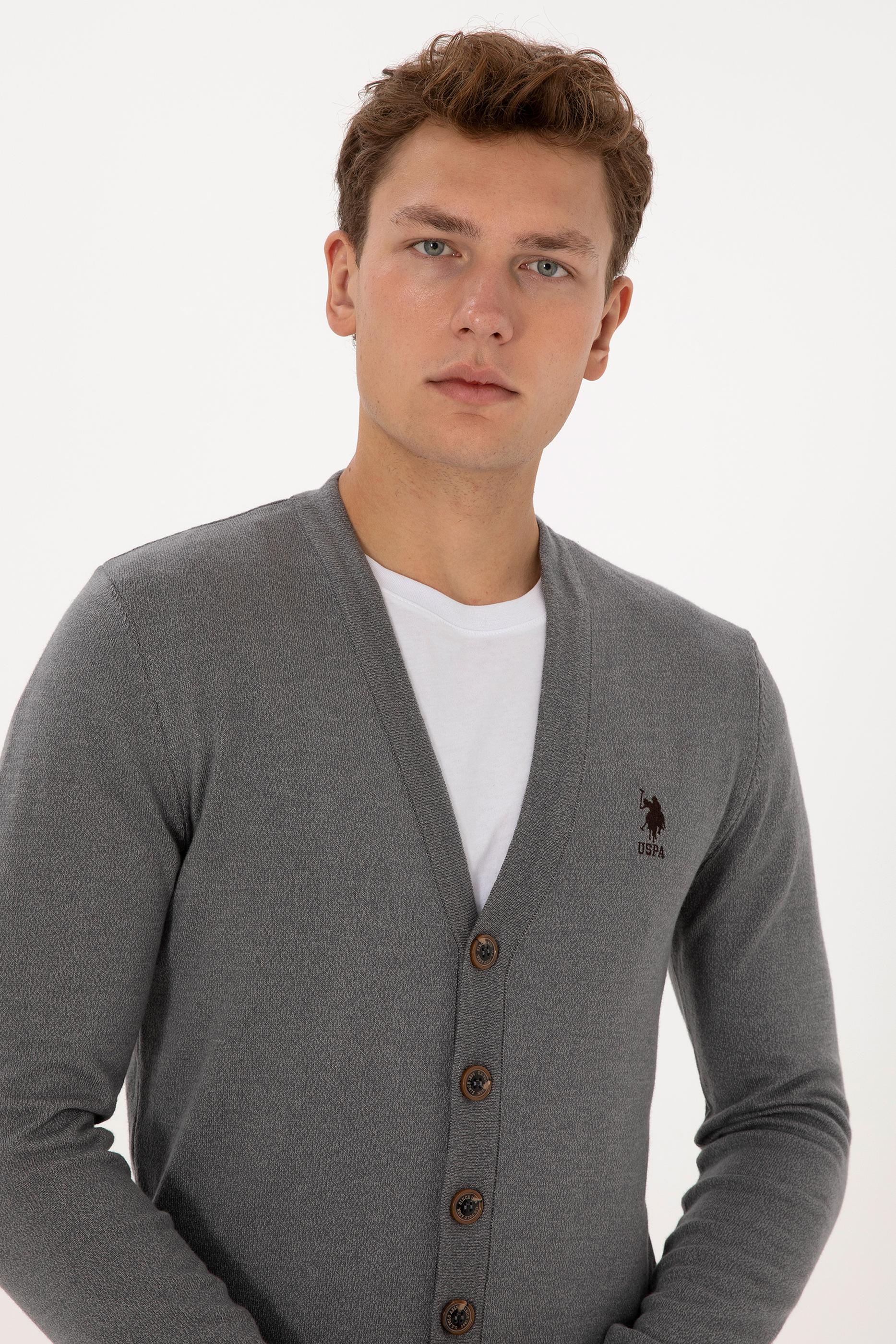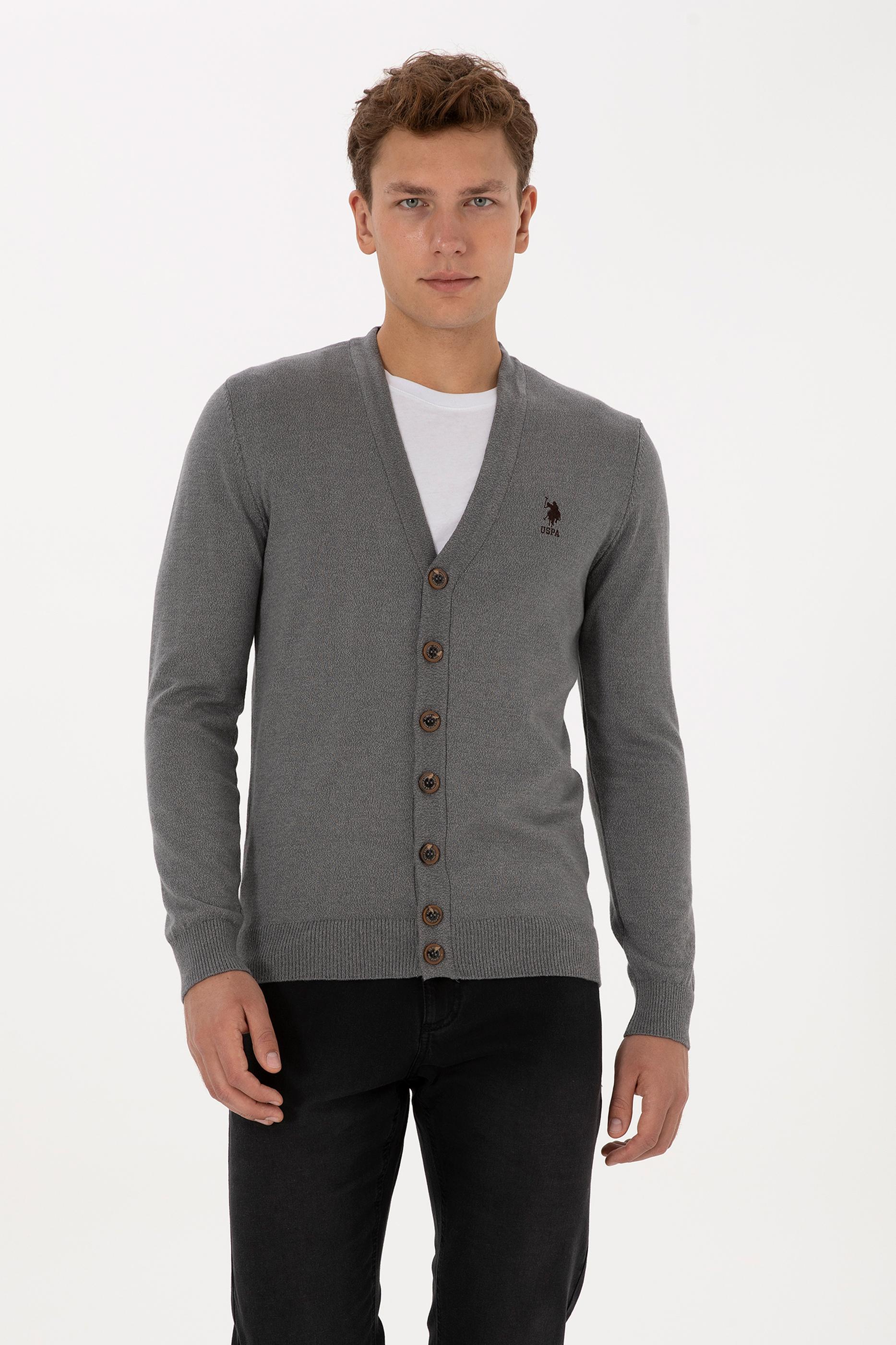 Erkek Gri Melanj Basic Triko Hırka