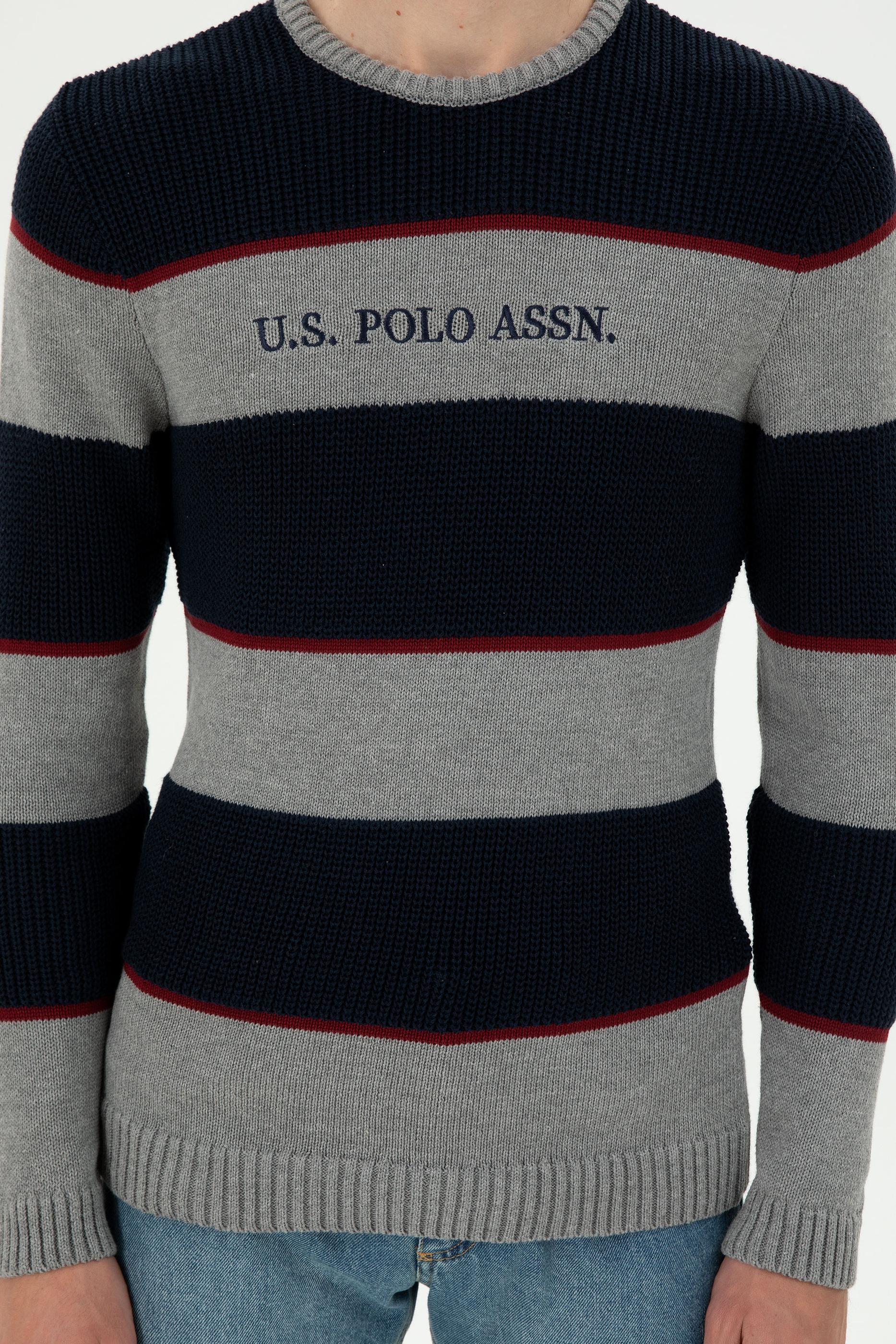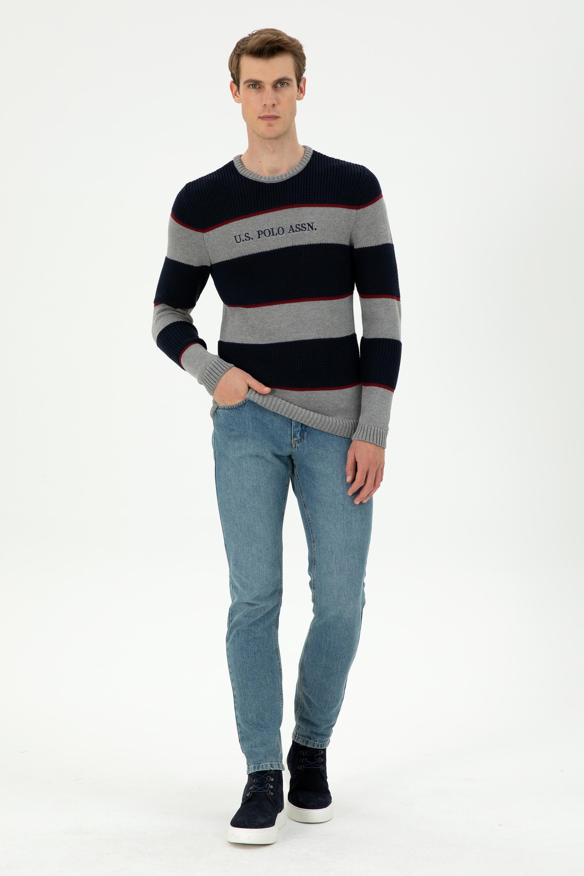 - Erkek Slim Fit Bisiklet Yaka Gri Melanj Kazak