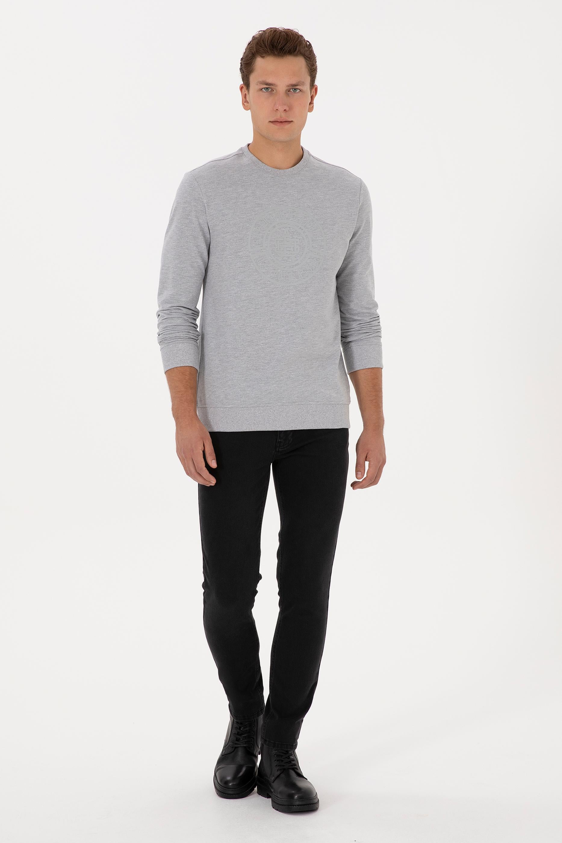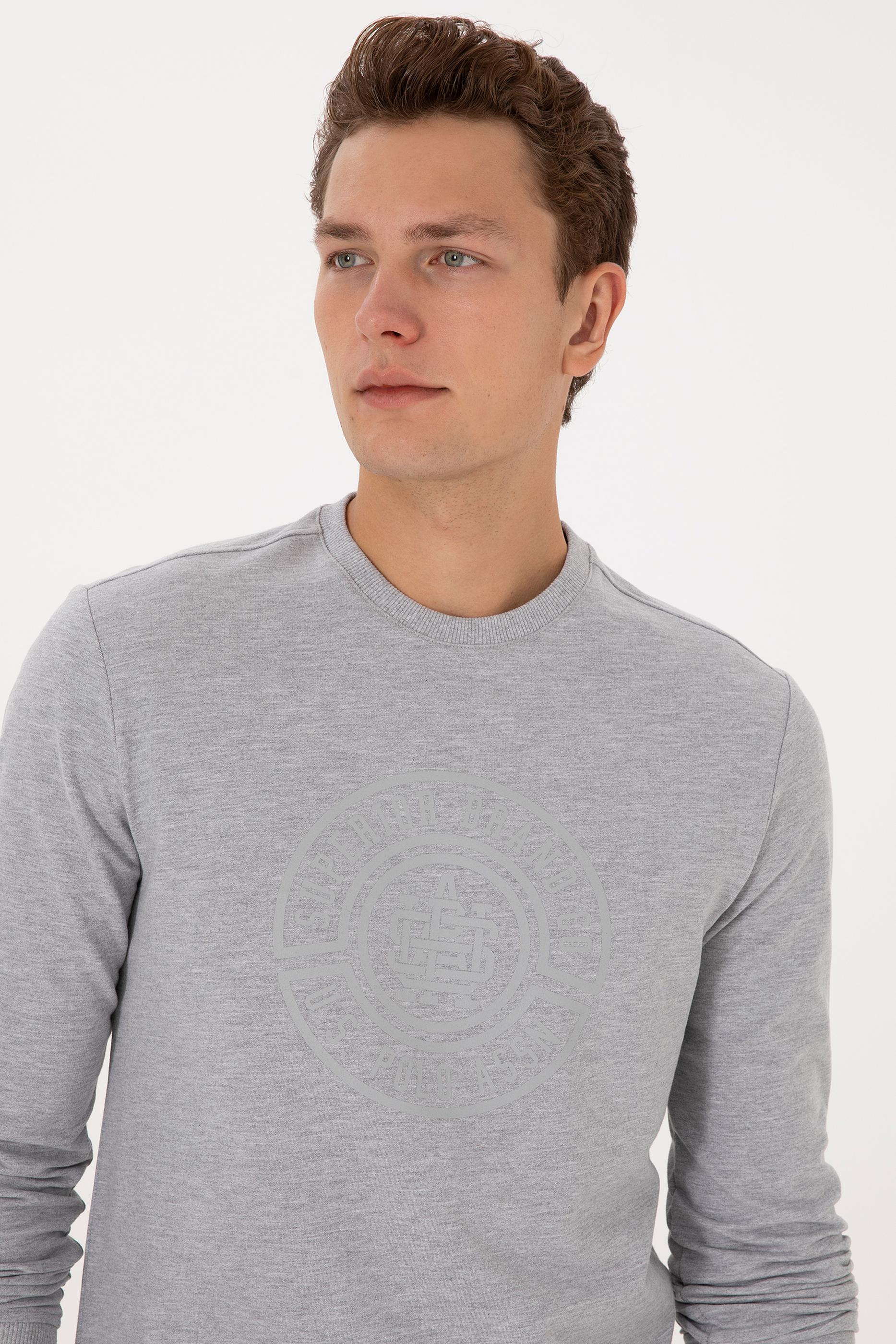 - Erkek Regular Fit Bisiklet Yaka Gri Melanj İnce Sweatshirt
