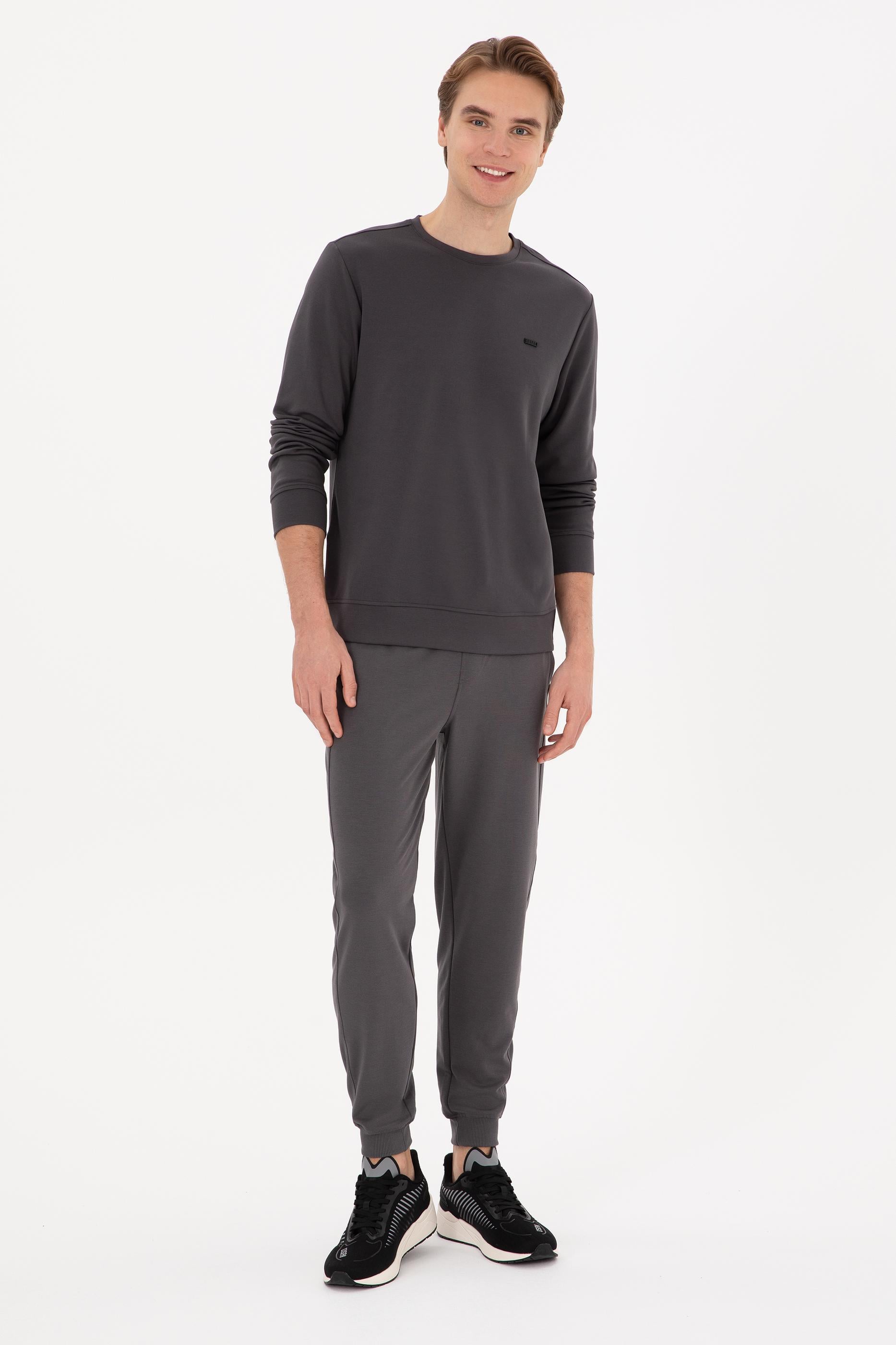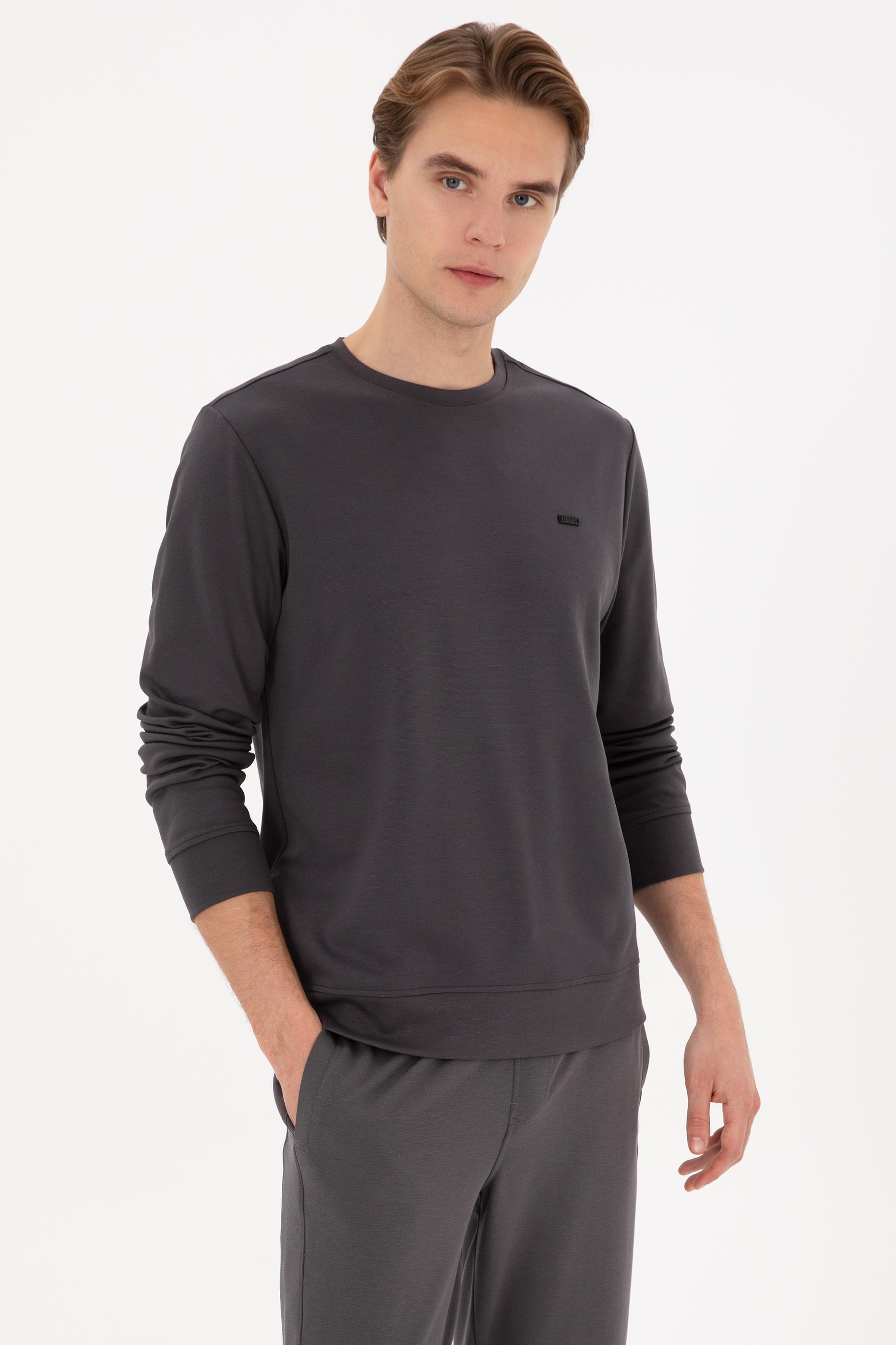 - Erkek Regular Fit Bisiklet Yaka Gri Sweatshirt