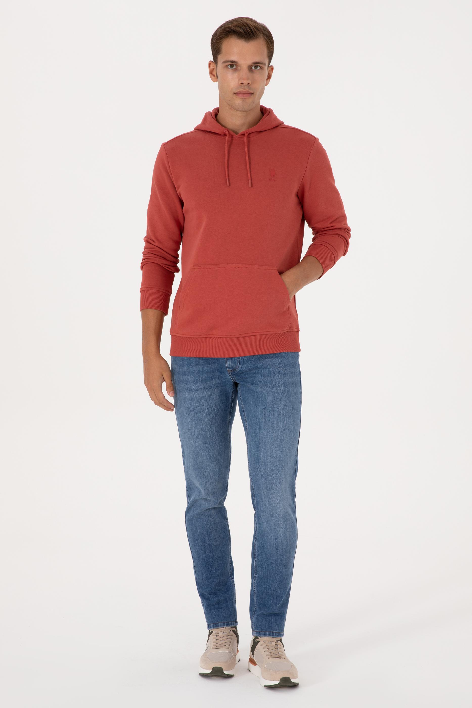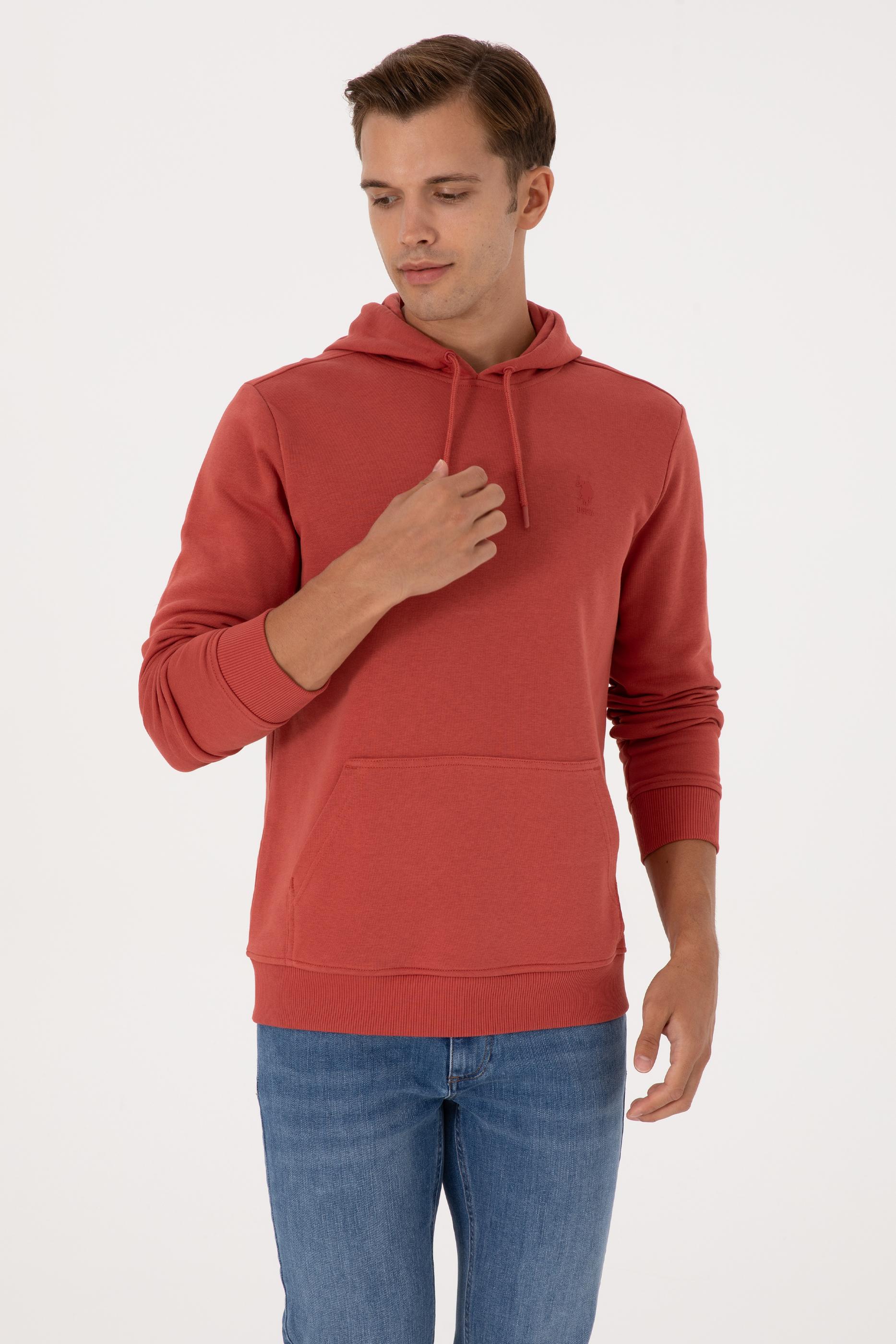 - Erkek Regular Fit Kapüşonlu Gül Kurusu Basic Sweatshirt