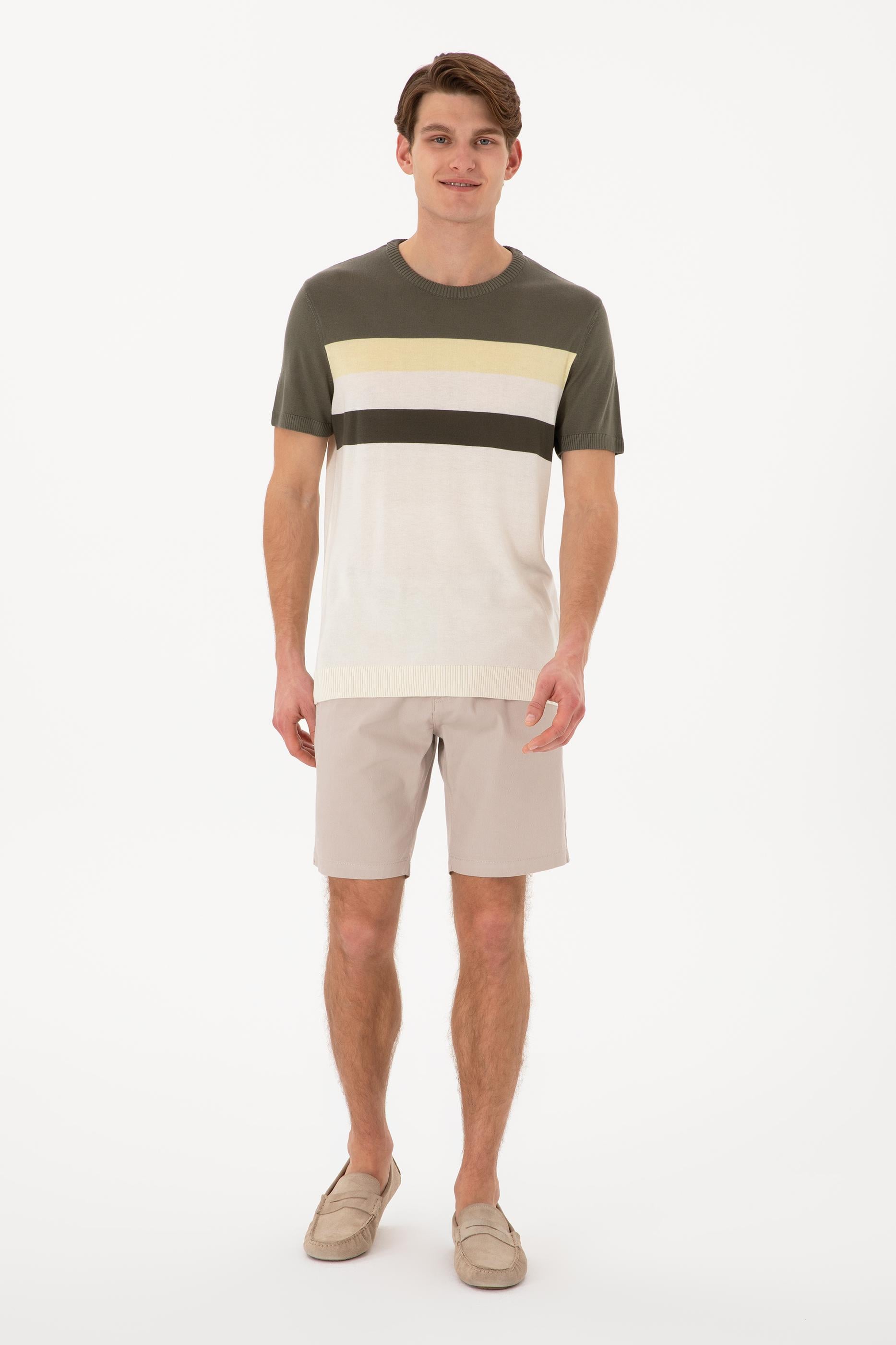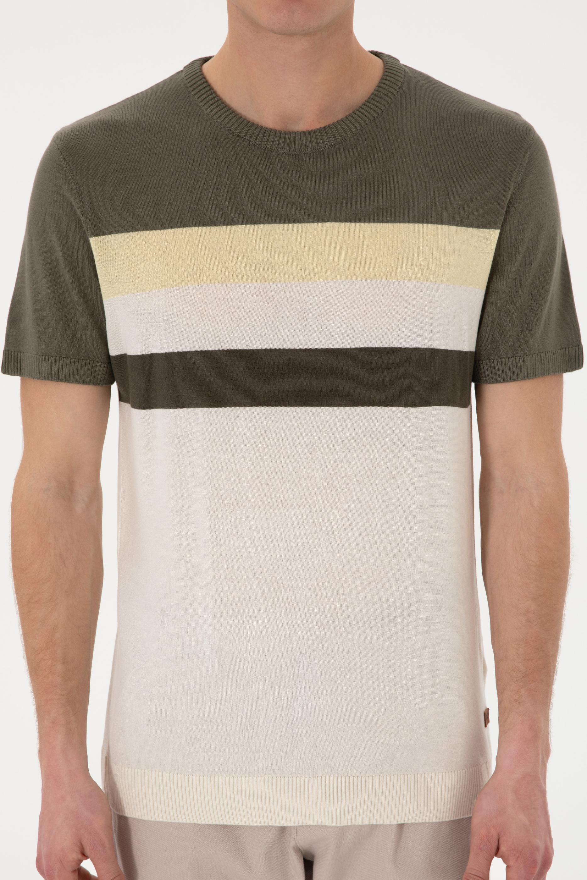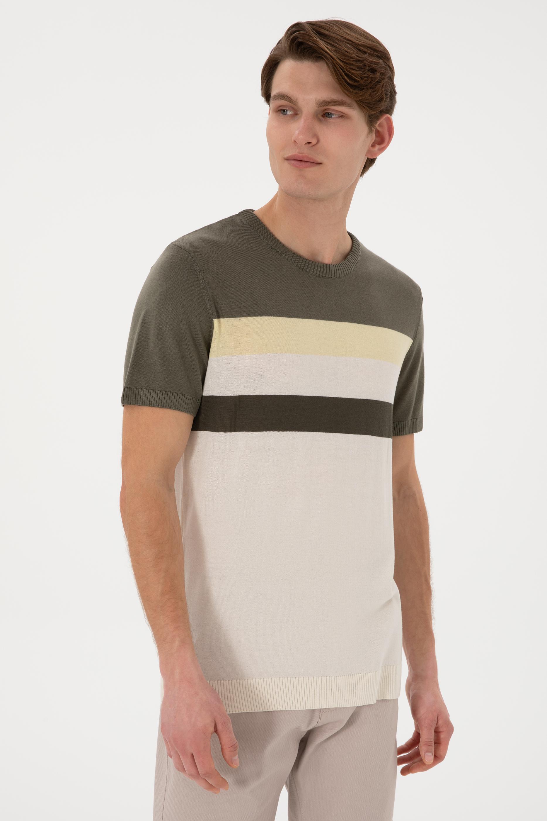 Erkek Slim Fit Bisiklet Yaka Haki Tişört