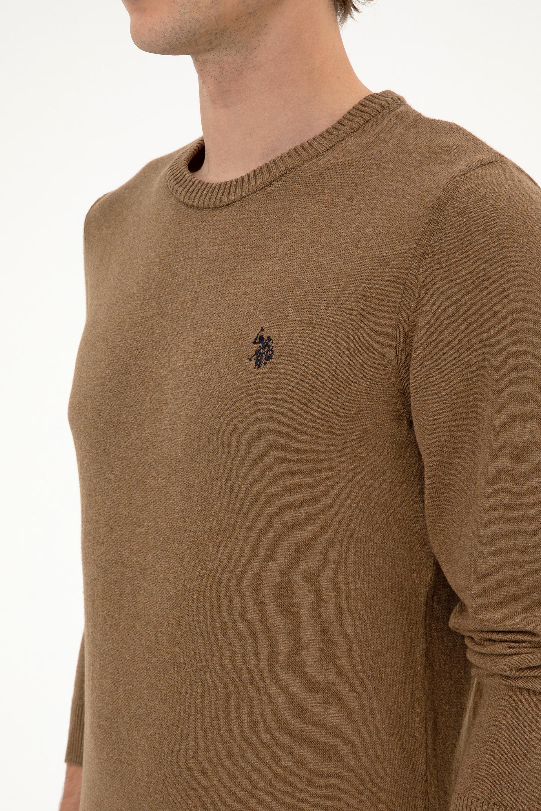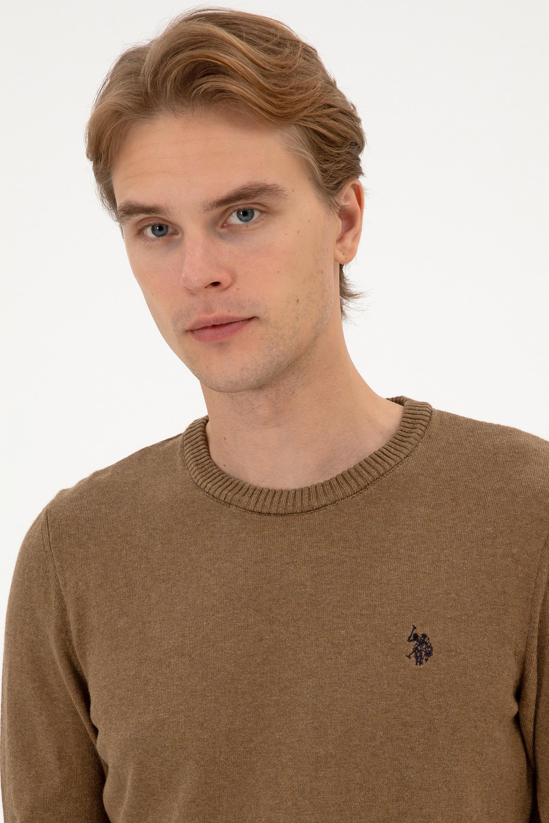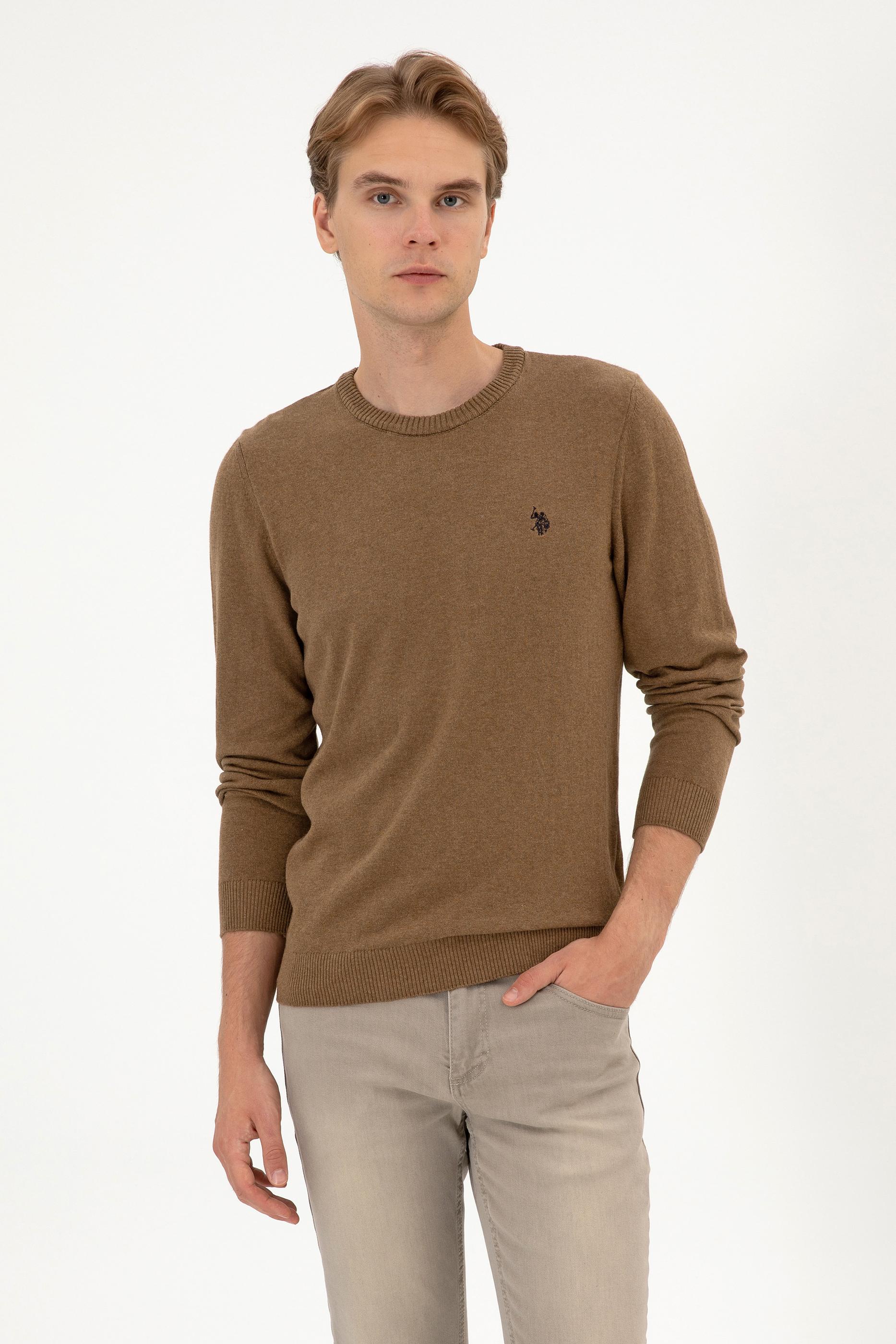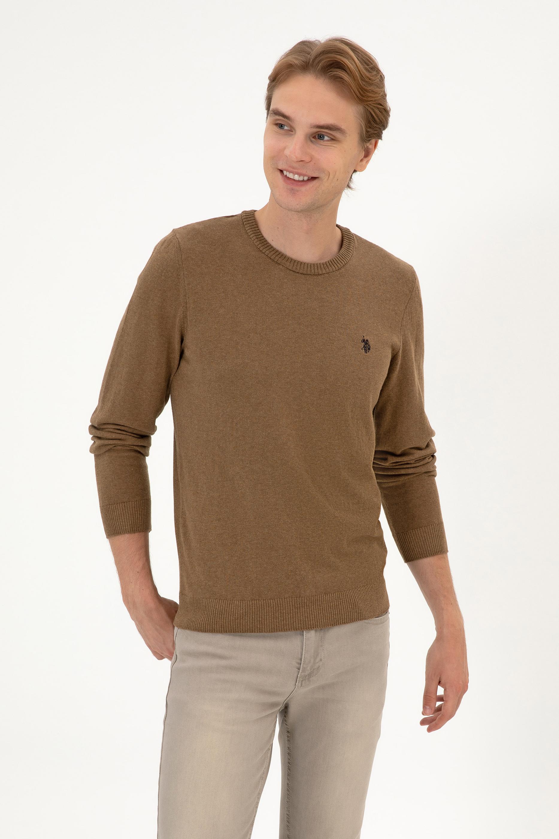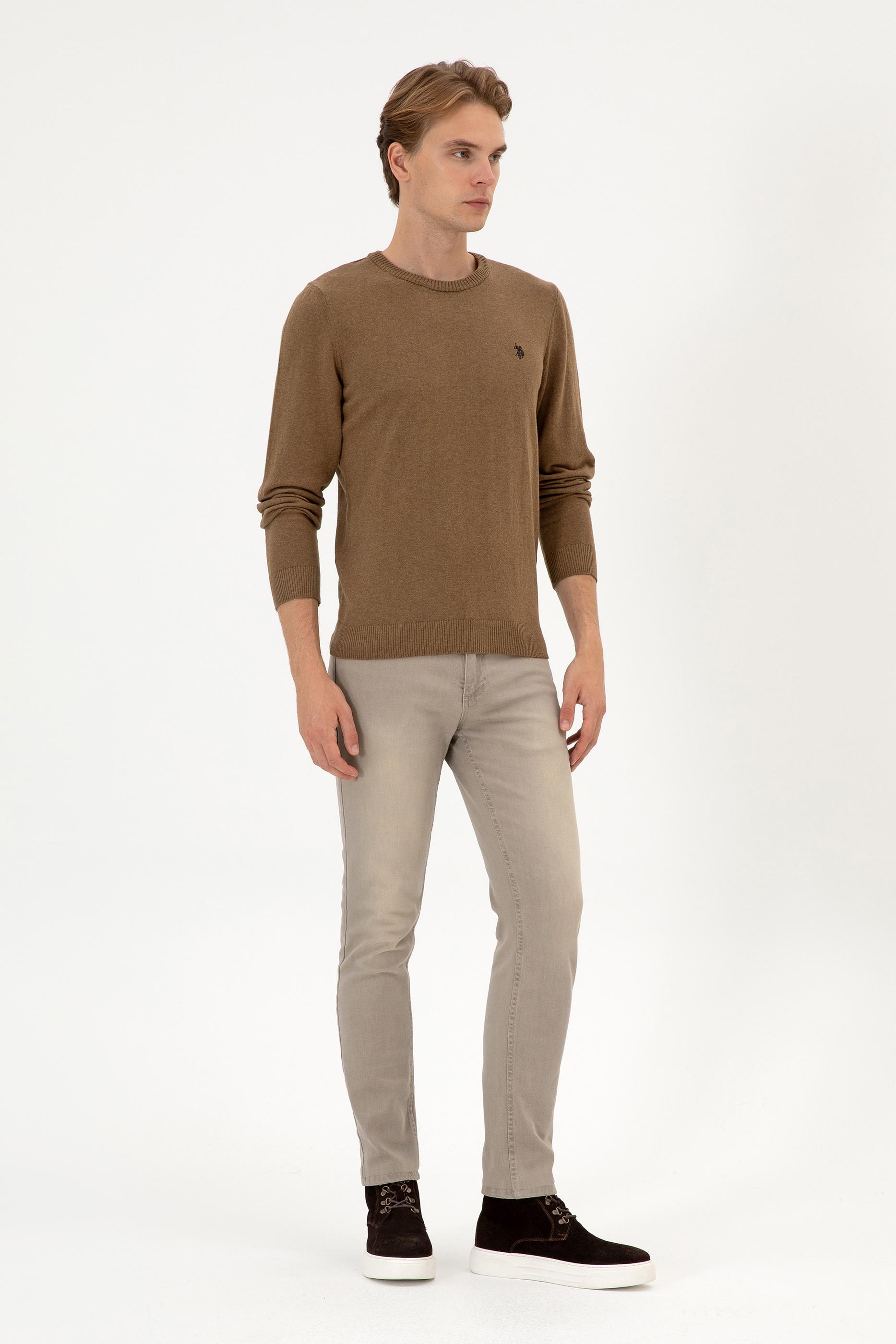 Erkek Slim Fit Bisiklet Yaka Haki Melanj Basic Kazak