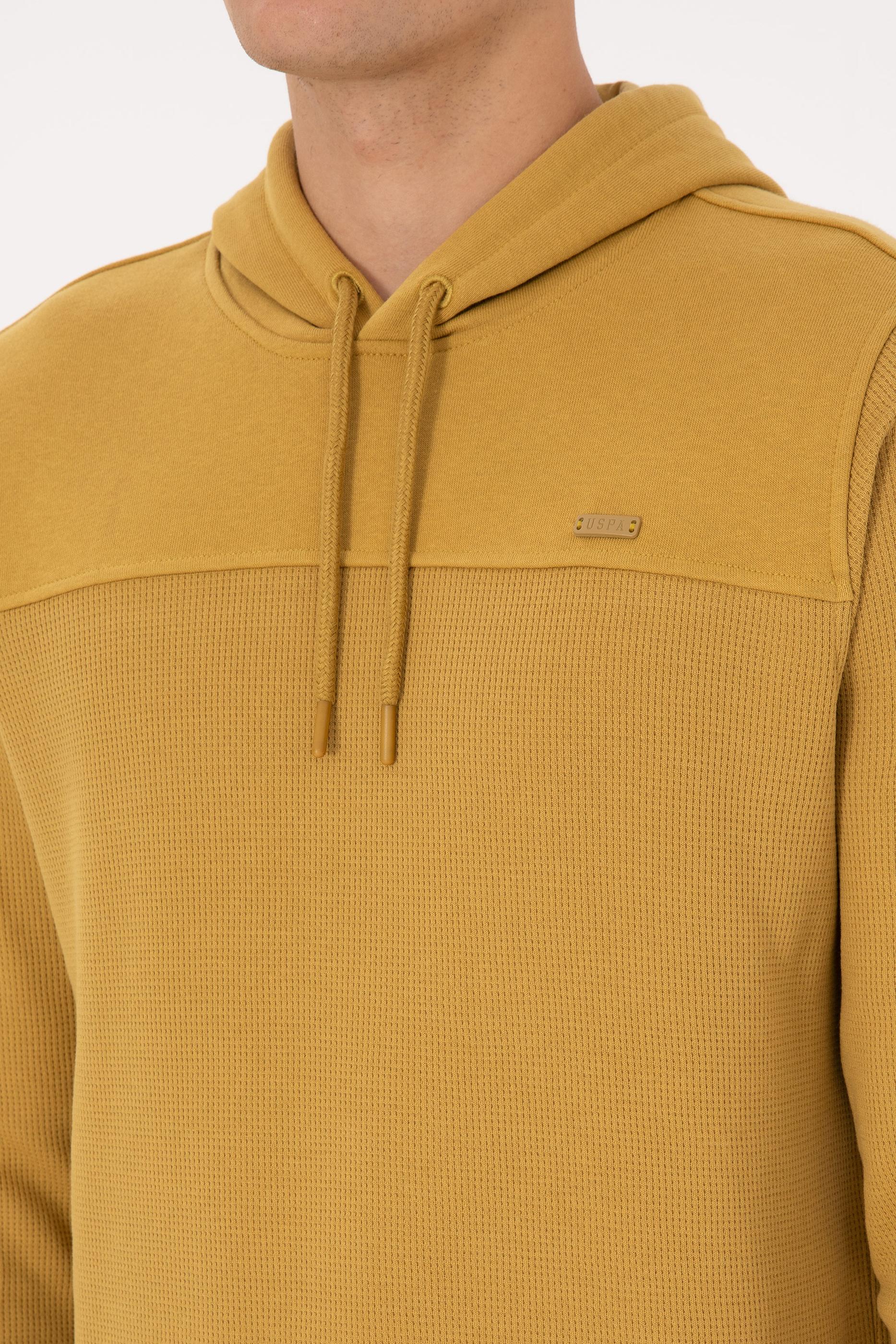 - Erkek Regular Fit Kapüşonlu Petek Dokulu Hardal Sweatshirt
