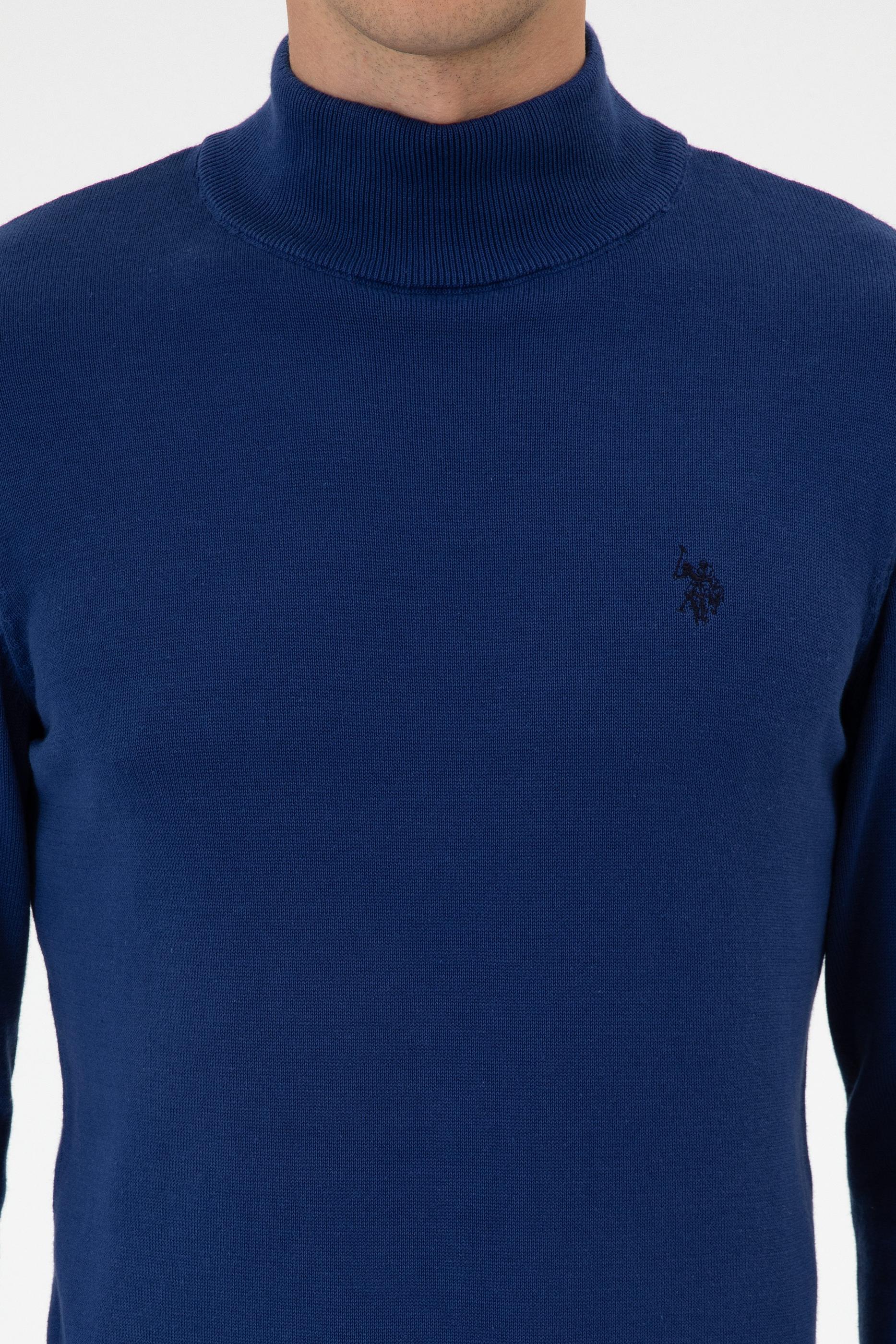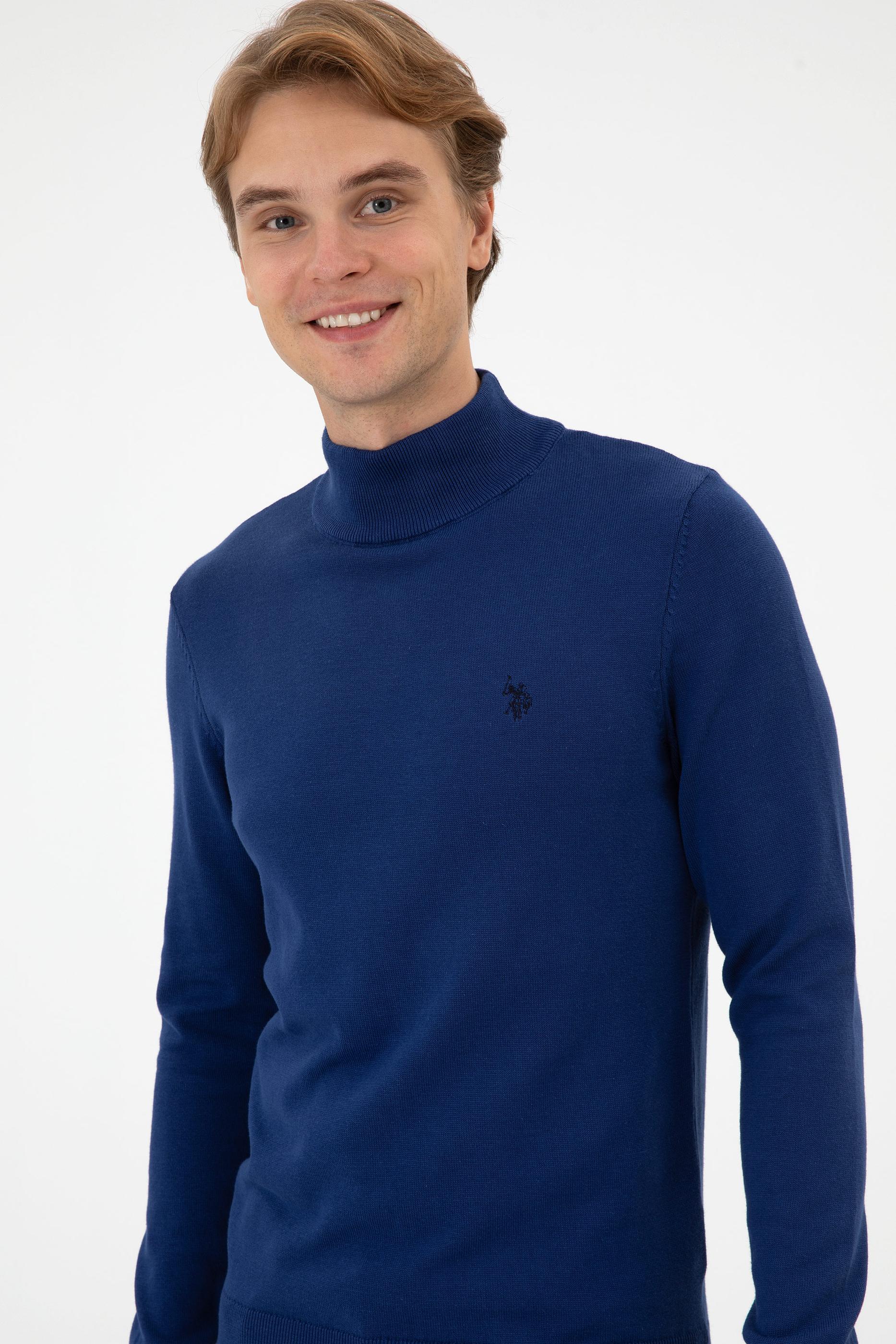 - Erkek Slim Fit Boğazlı İndigo Basic Kazak
