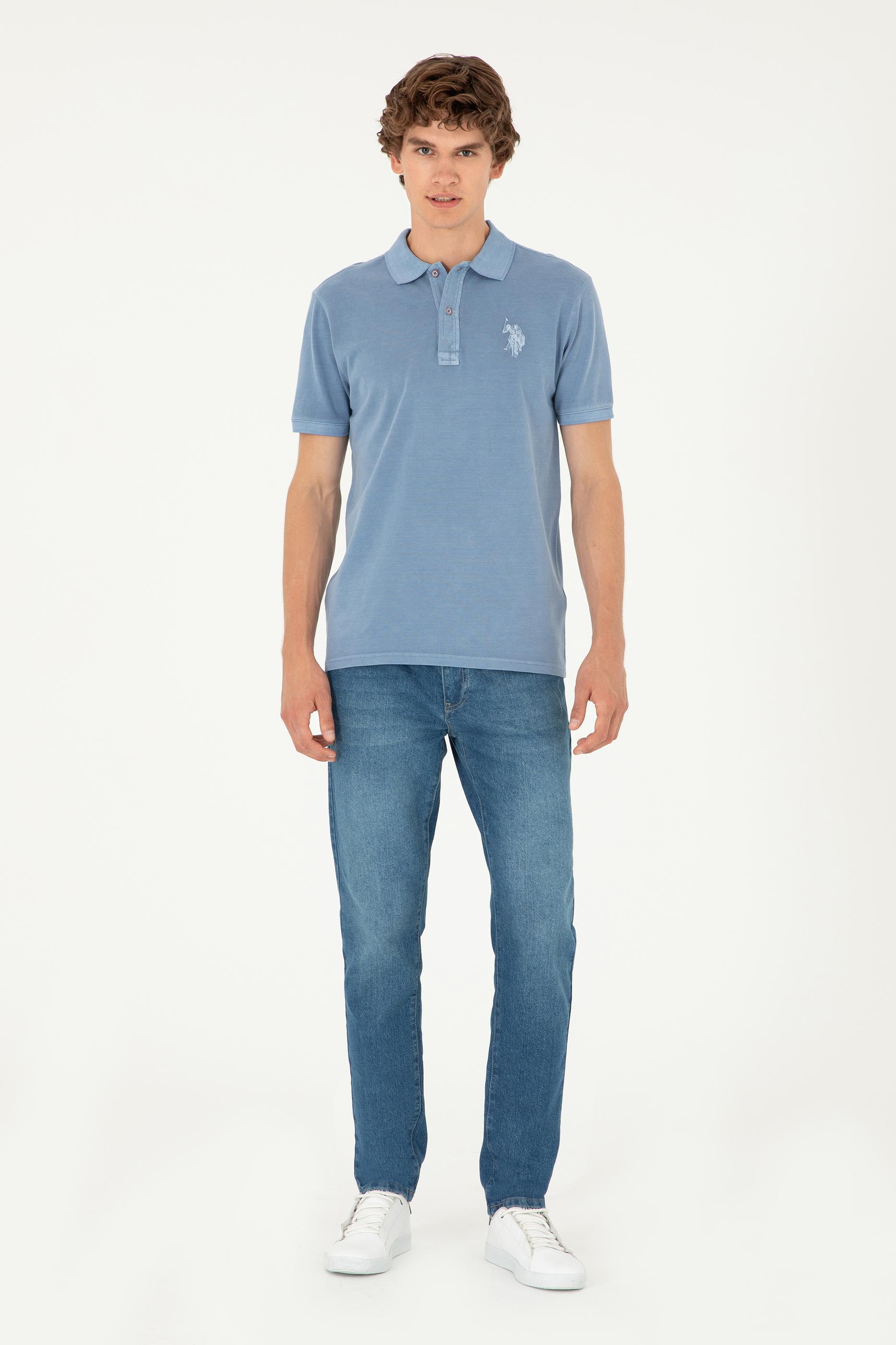 - Erkek Slim Fit Polo Yaka İndigo Basic Tişört