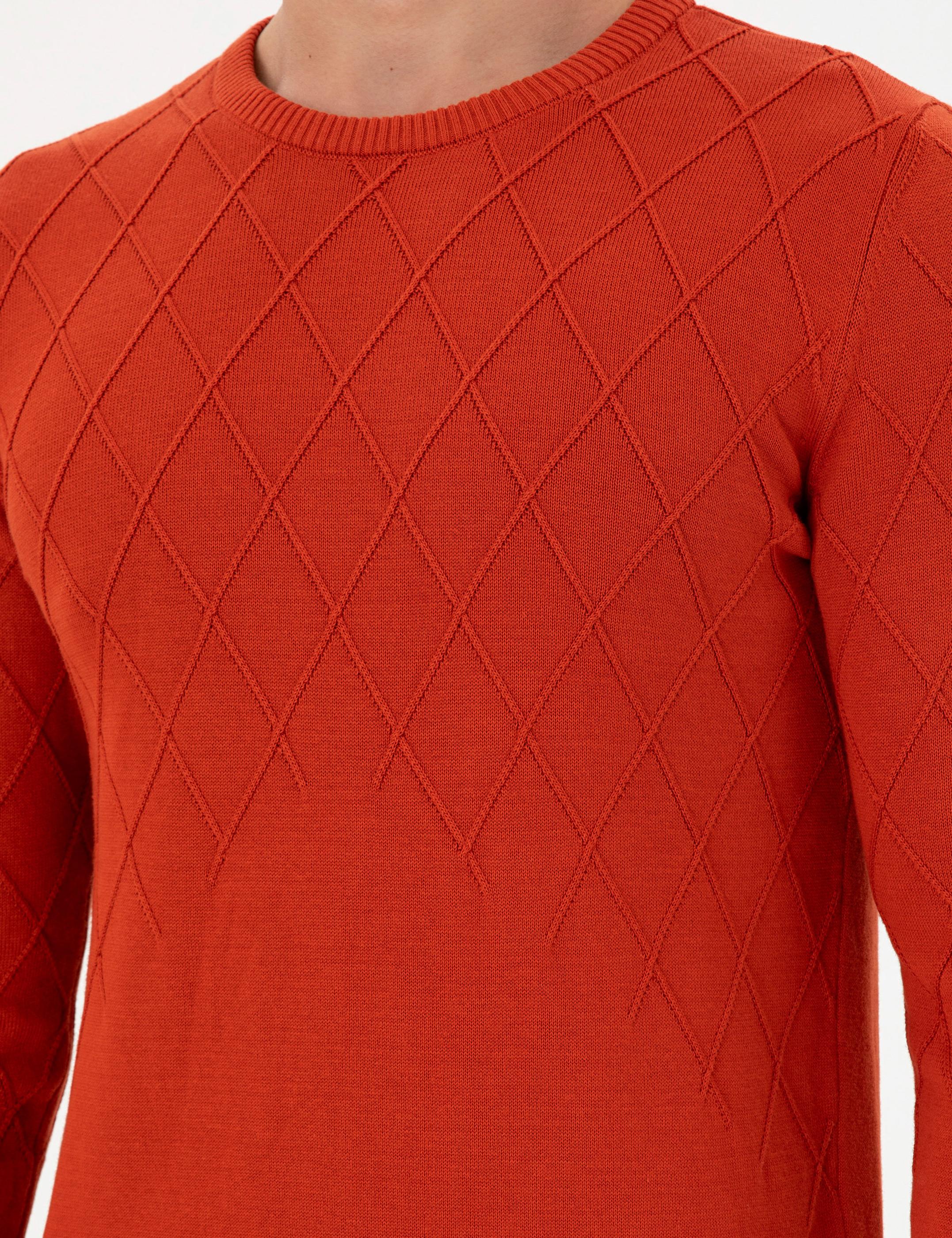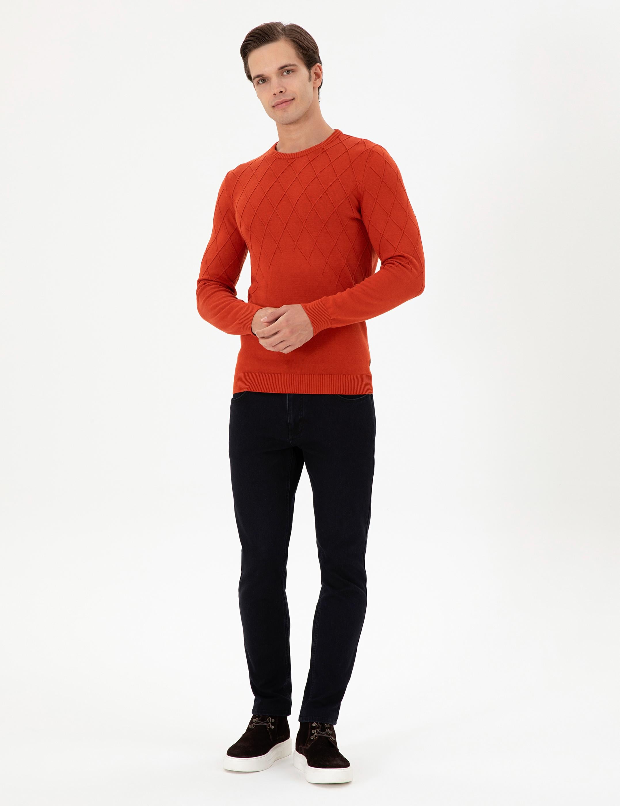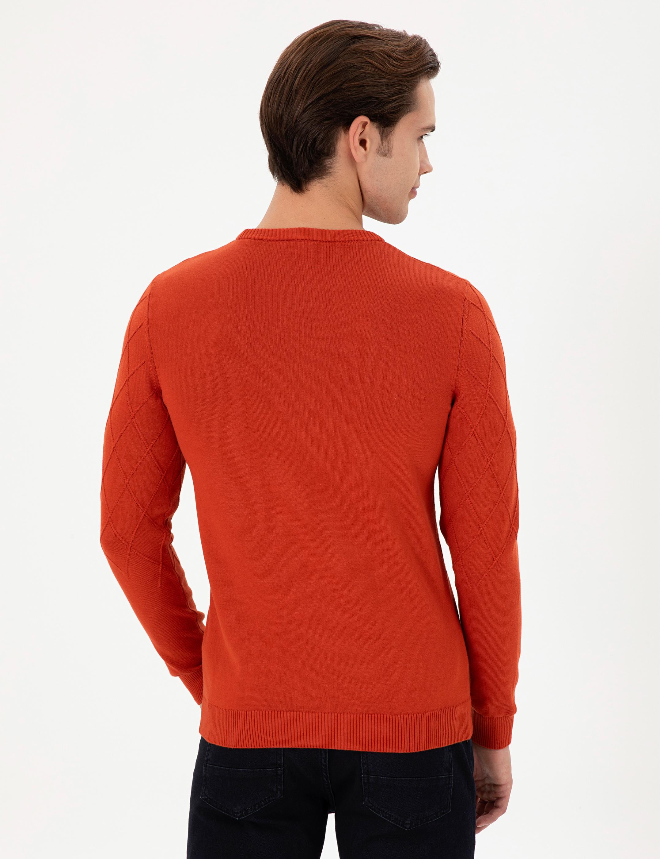 Erkek Slim Fit Bisiklet Yaka Kiremit Kazak