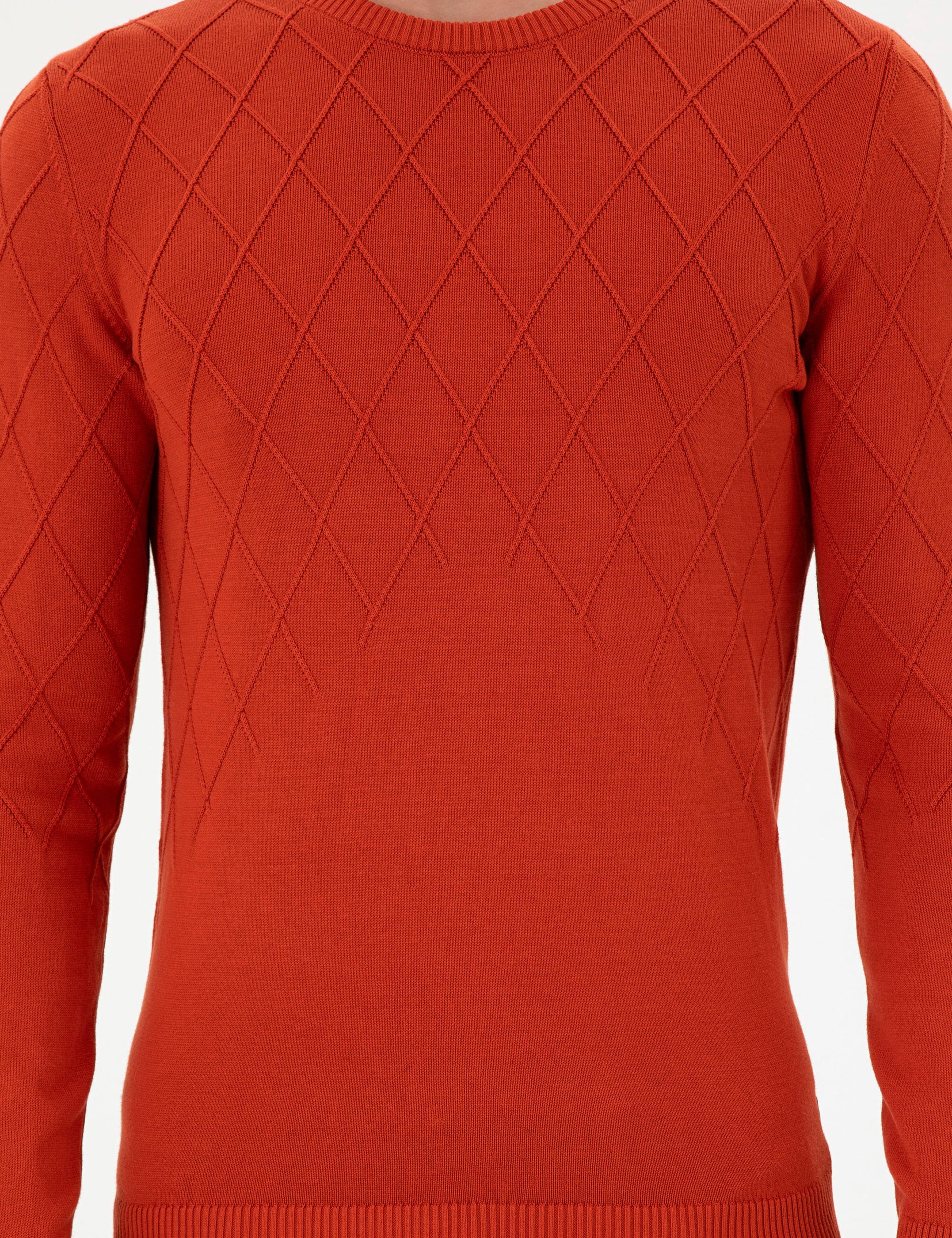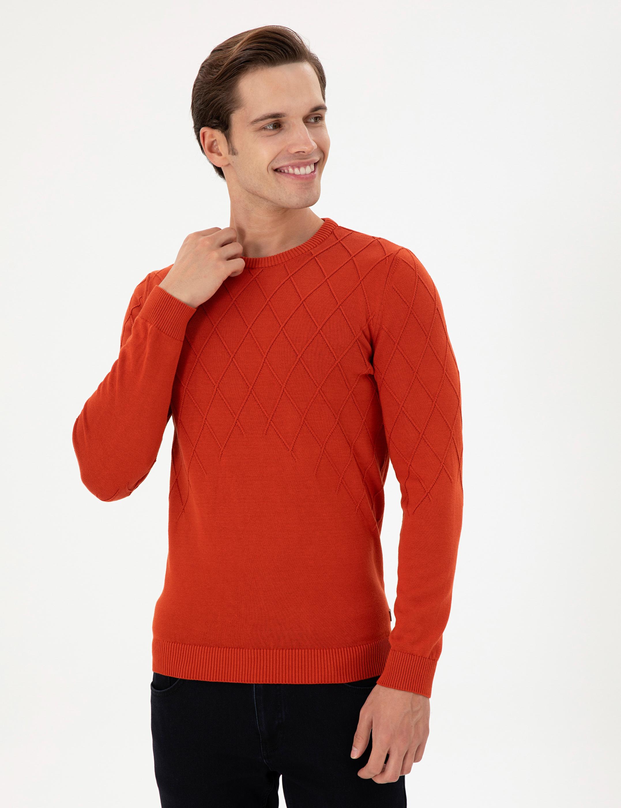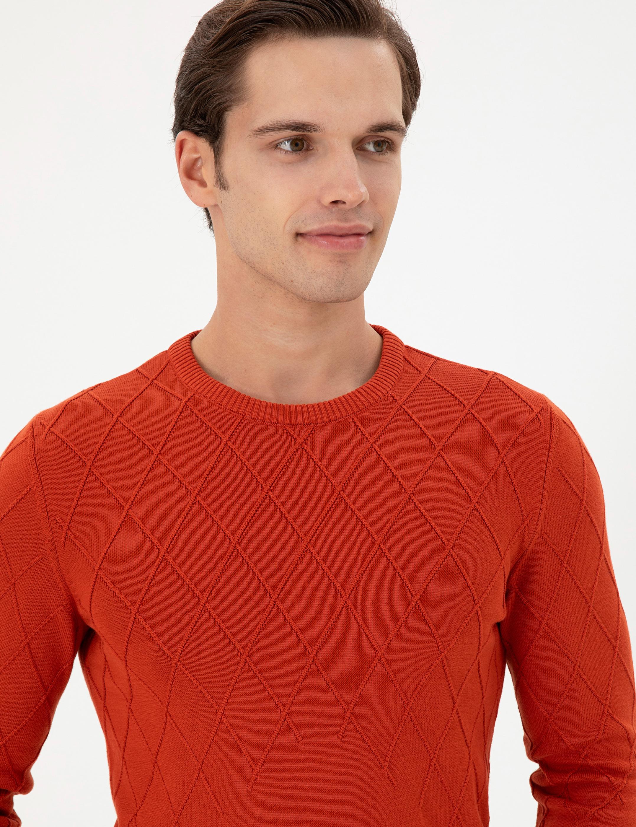 Erkek Slim Fit Bisiklet Yaka Kiremit Kazak