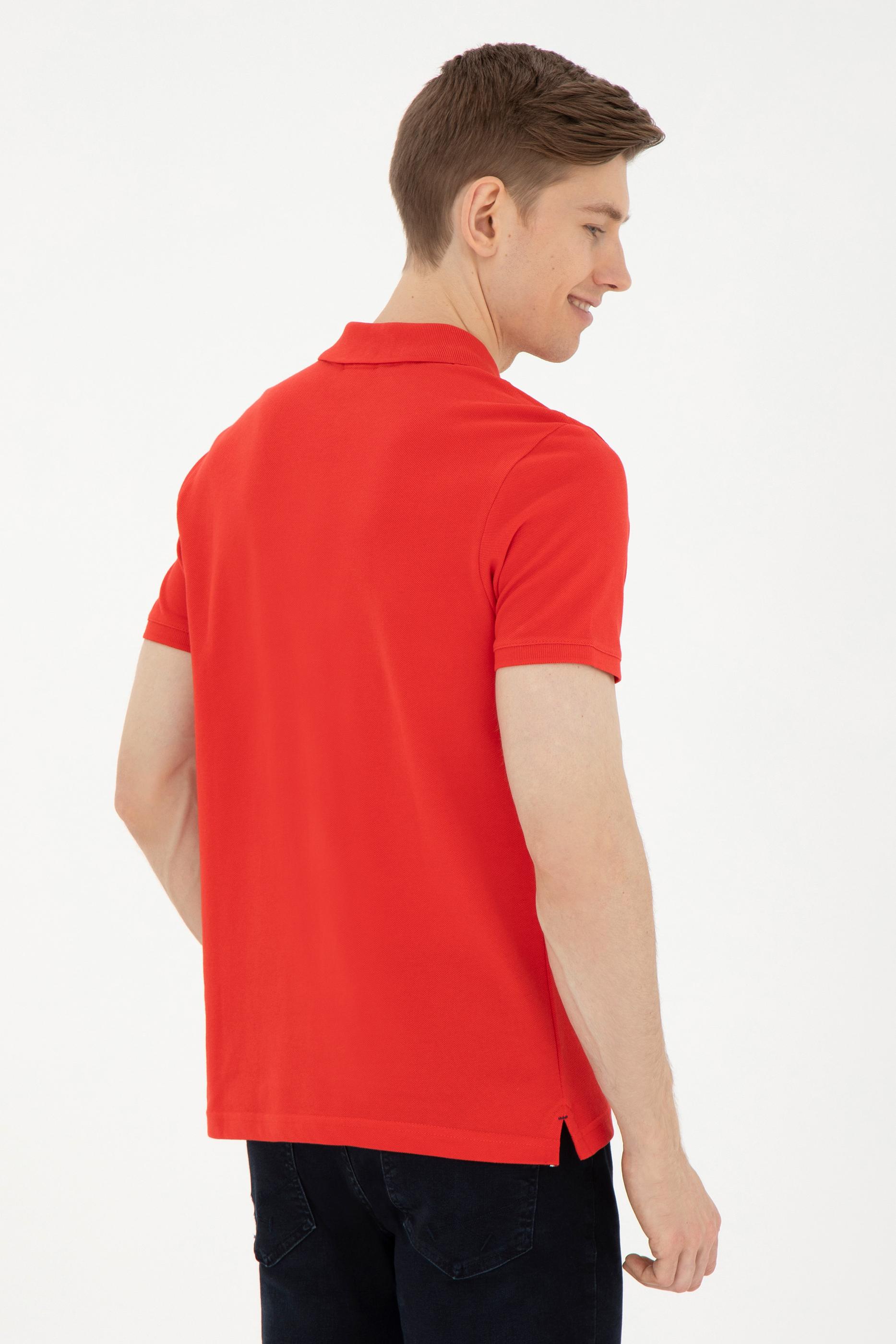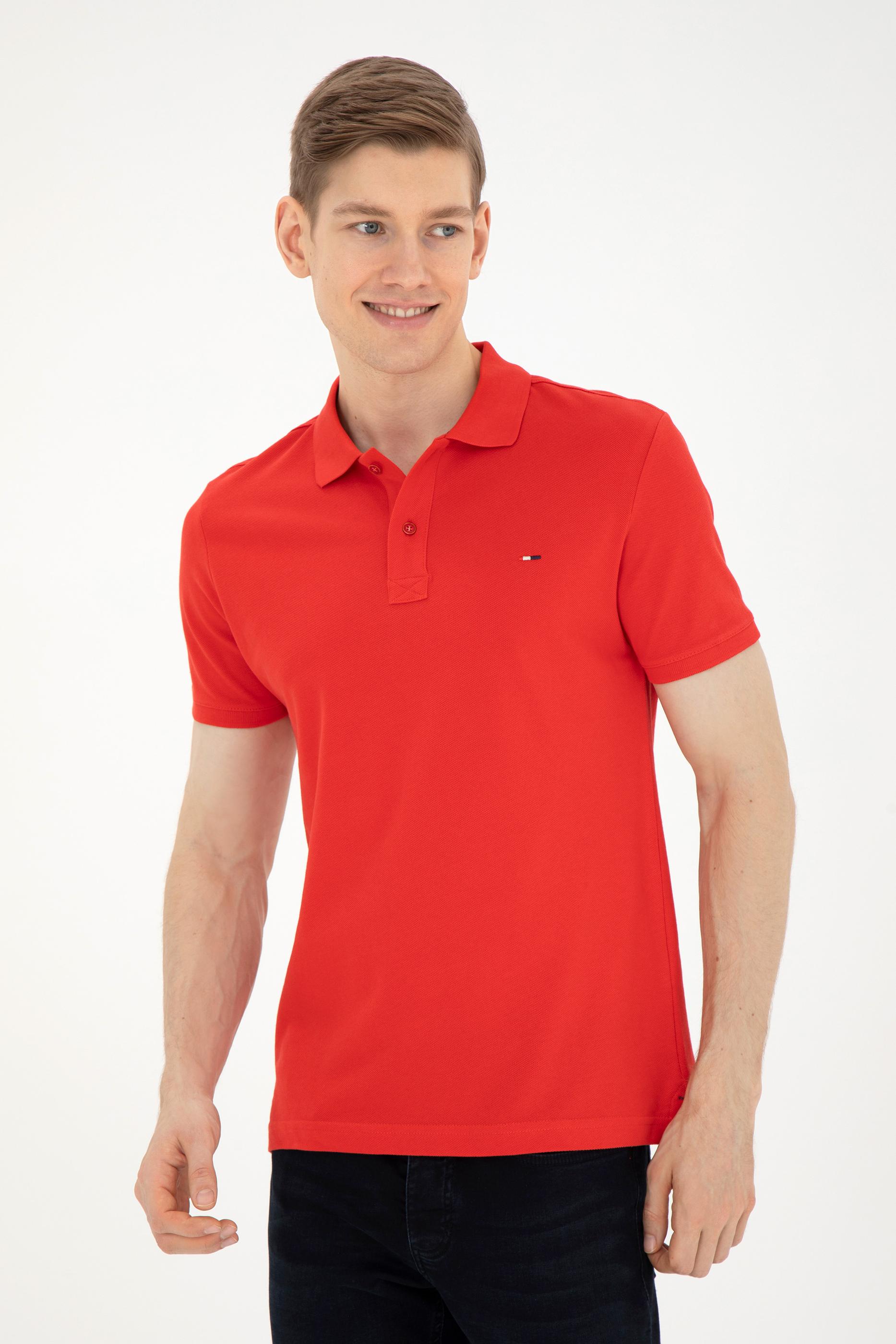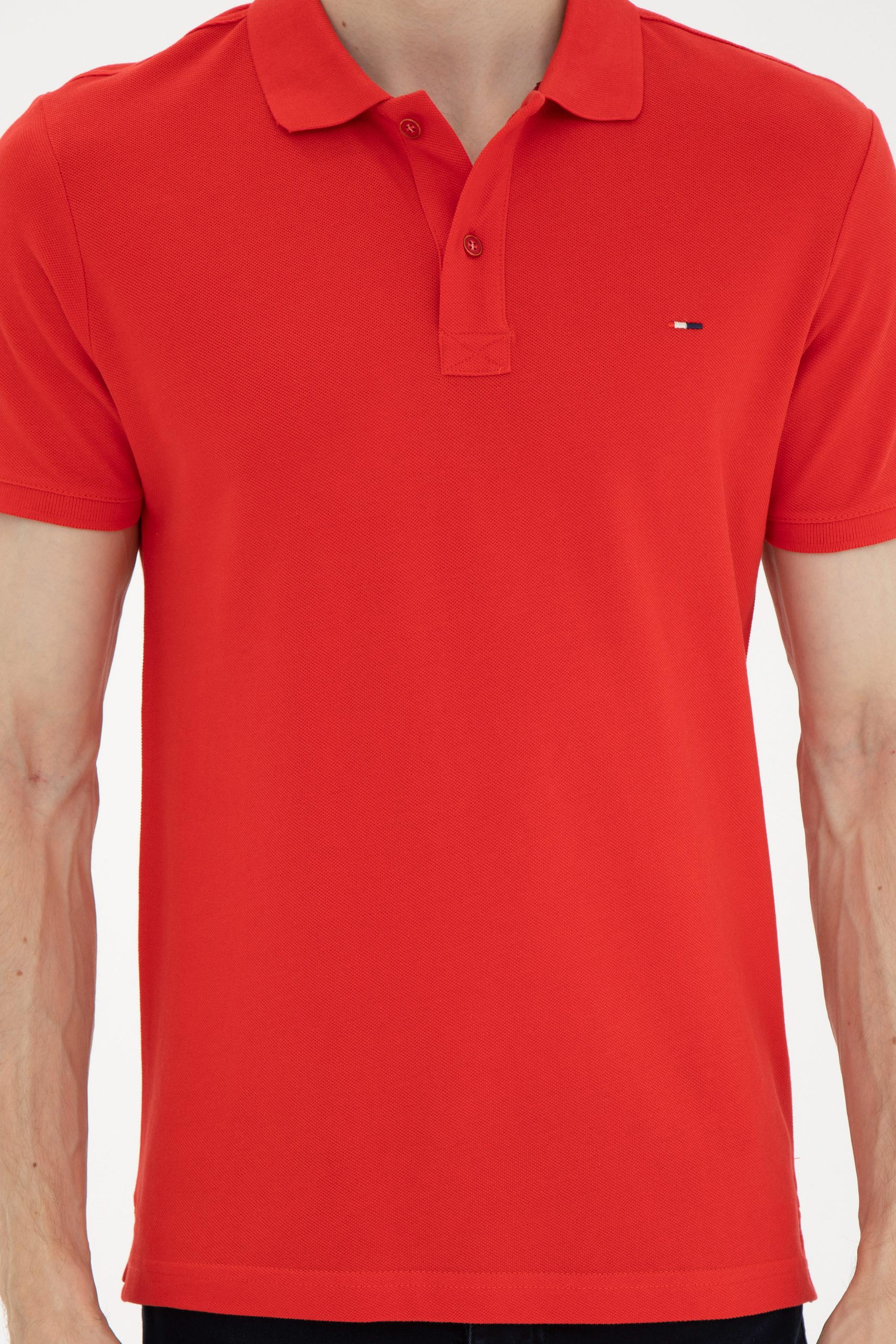 - Erkek Slim Fit Polo Yaka Kırmızı Basic Tişört