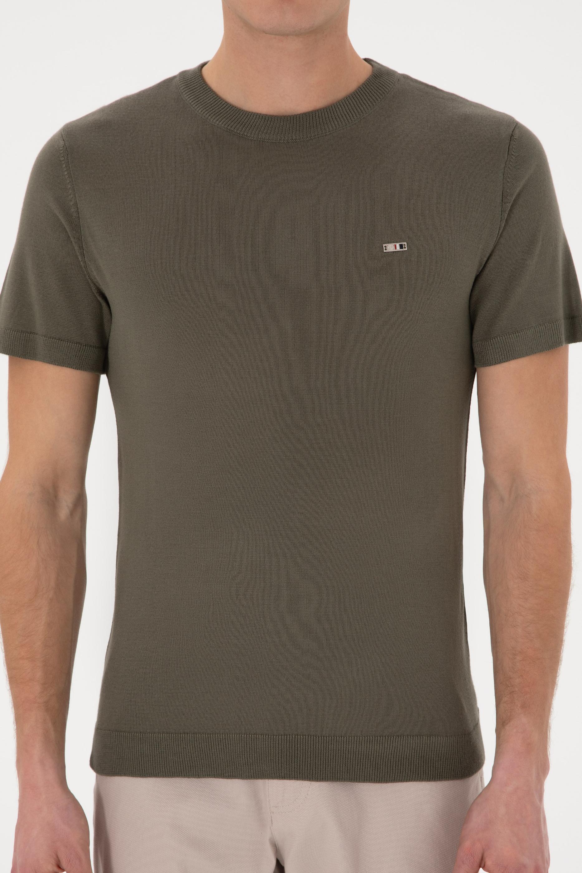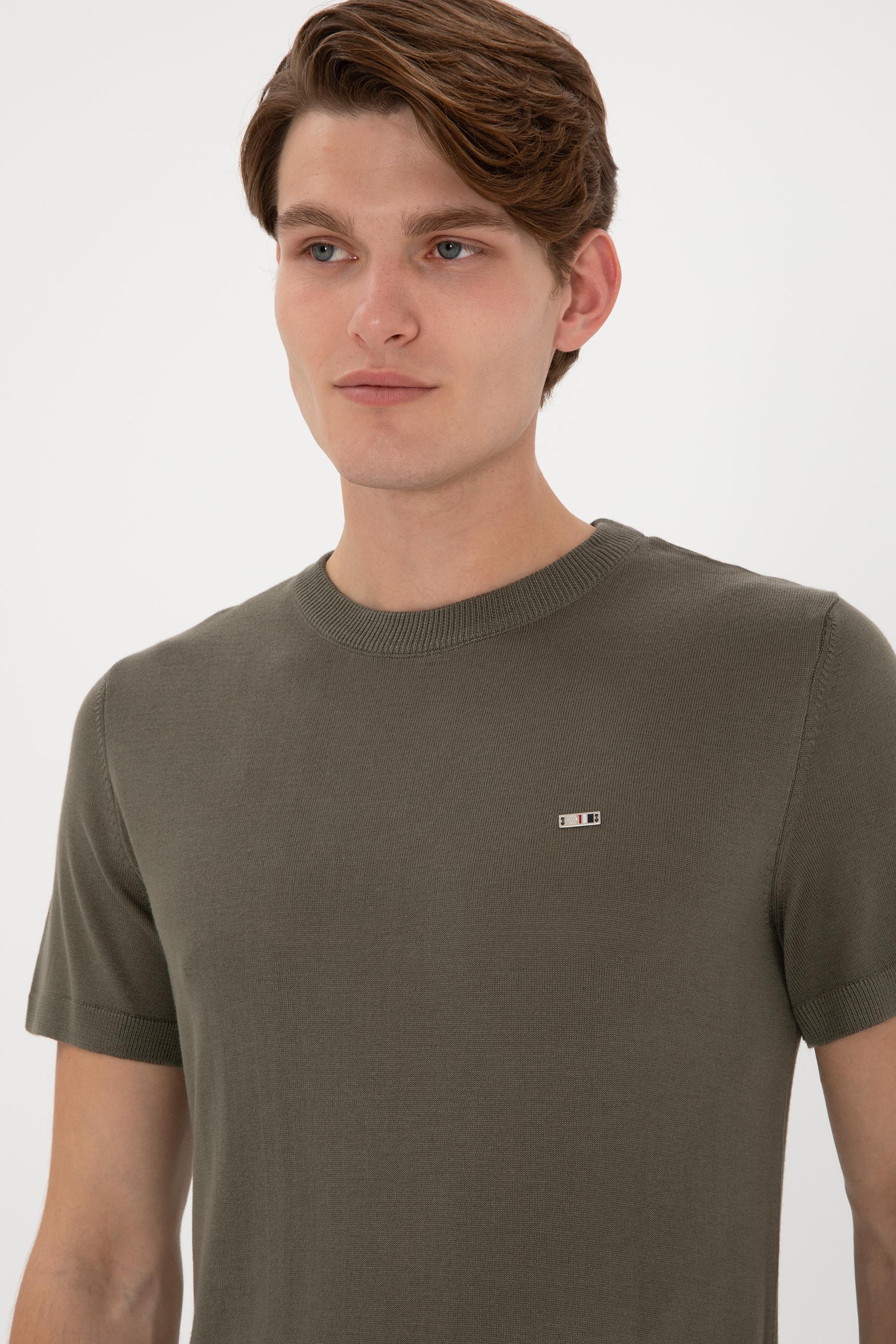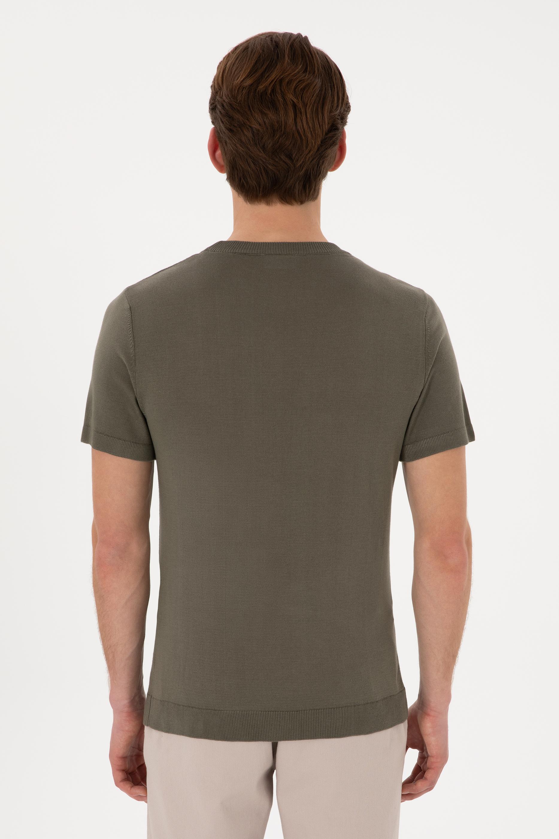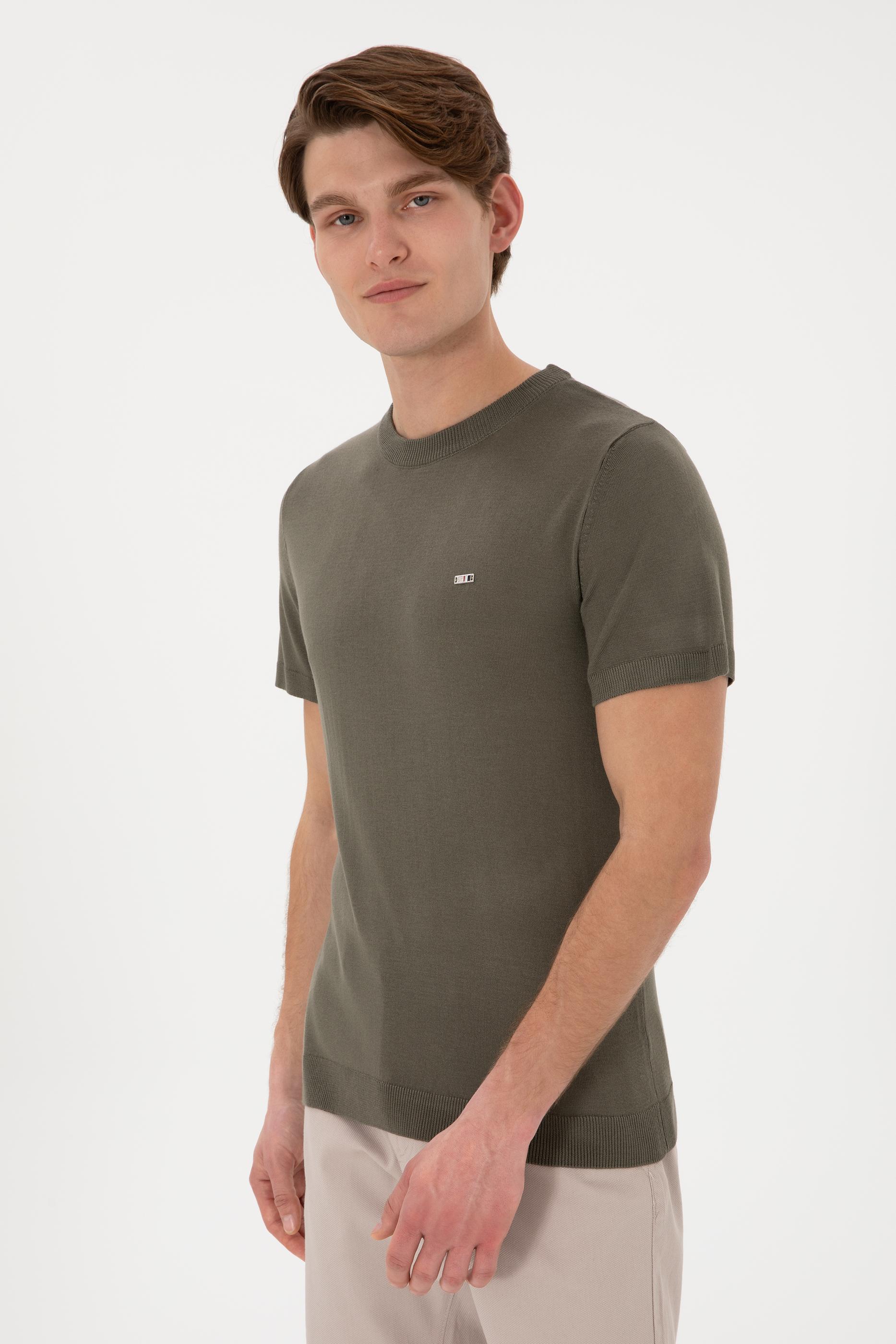 Erkek Slim Fit Bisiklet Yaka Koyu Haki Tişört