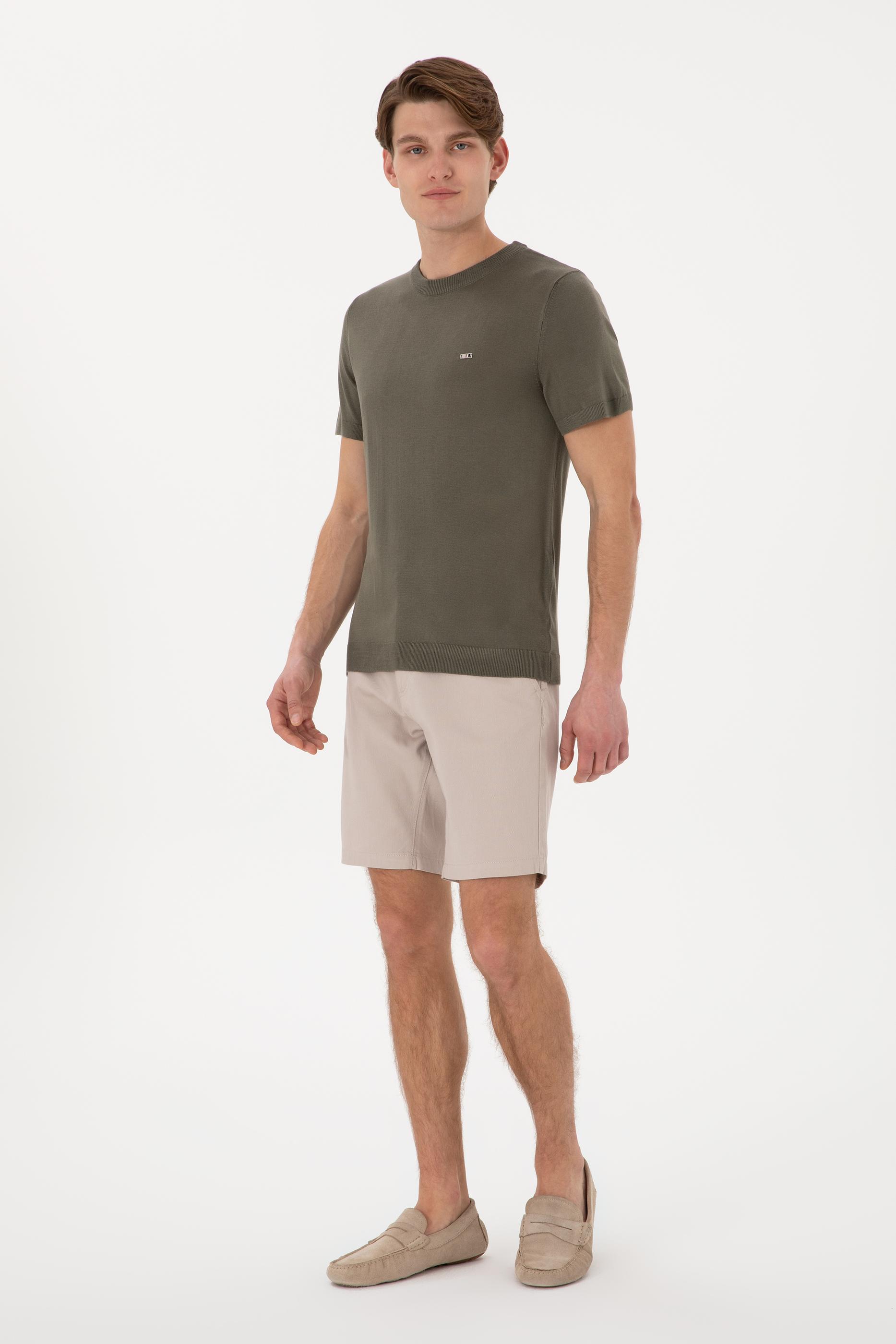 - Erkek Slim Fit Bisiklet Yaka Koyu Haki Tişört