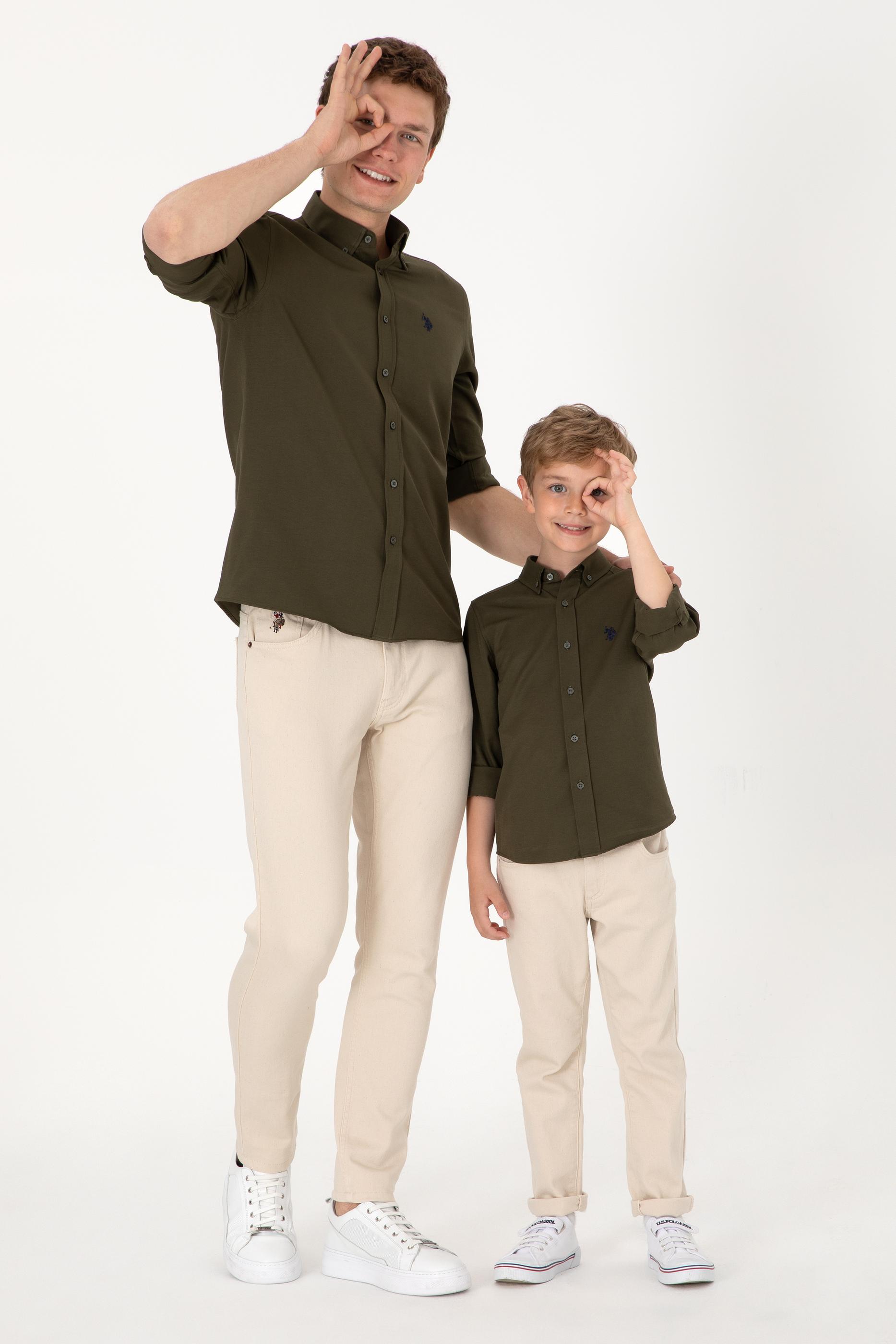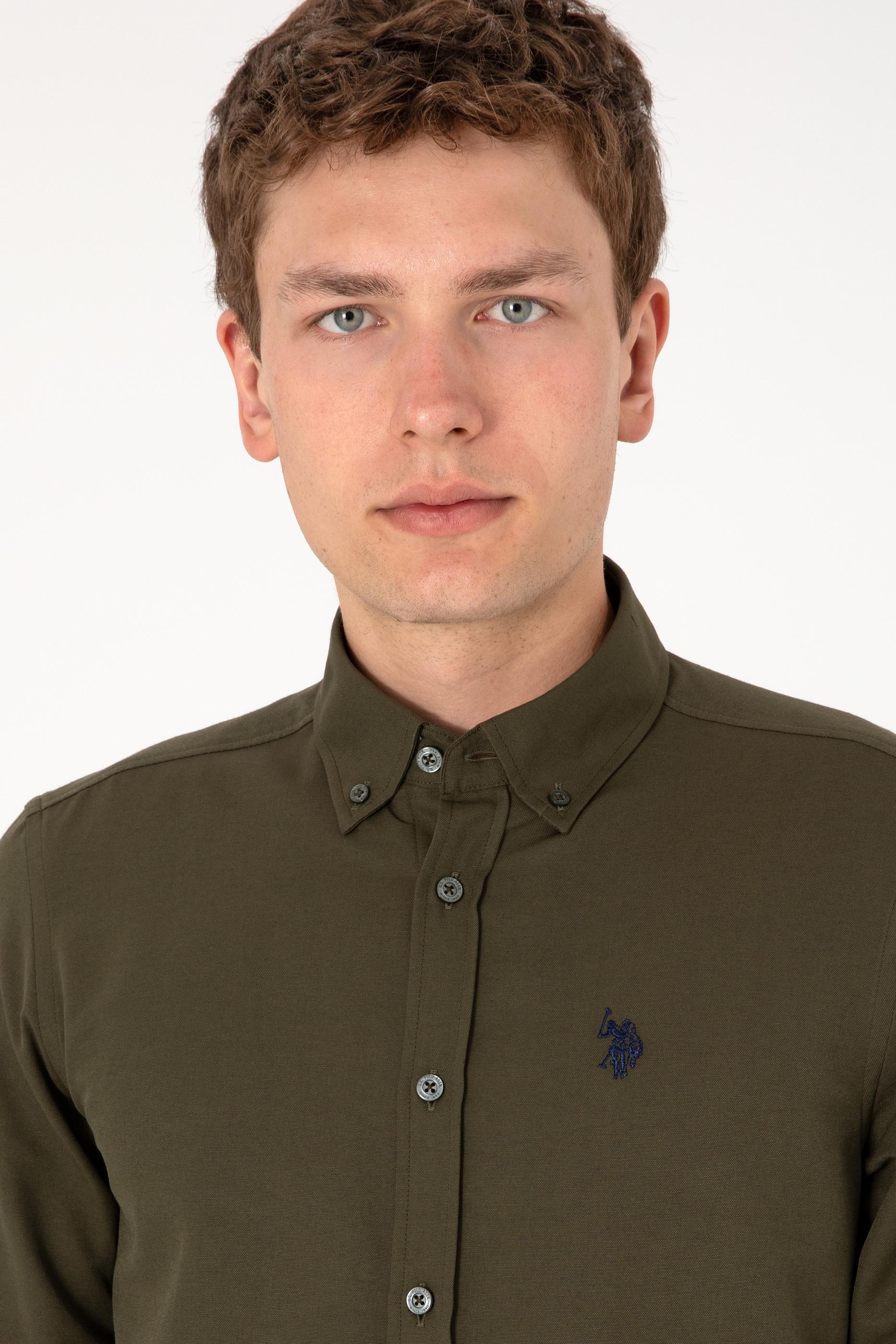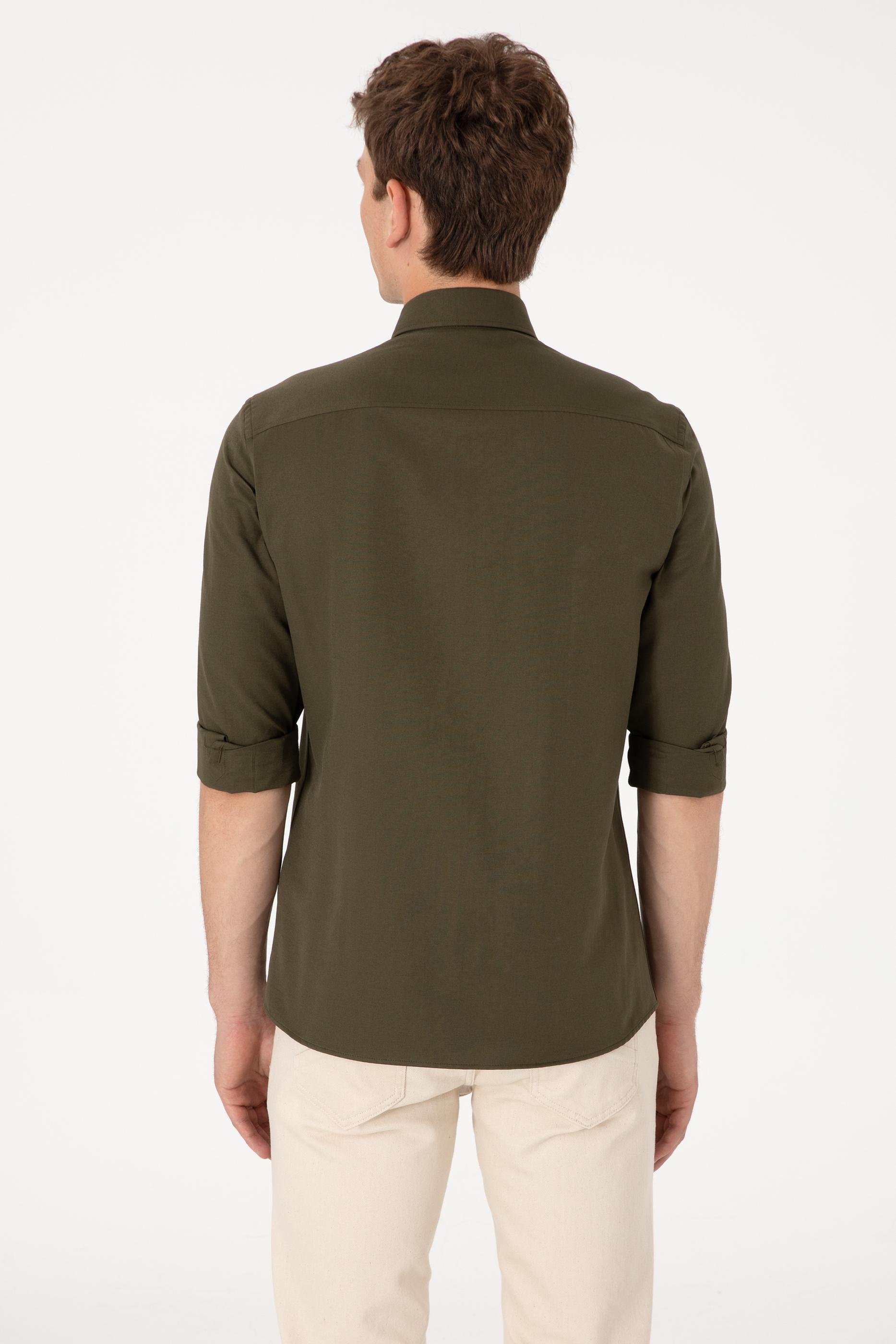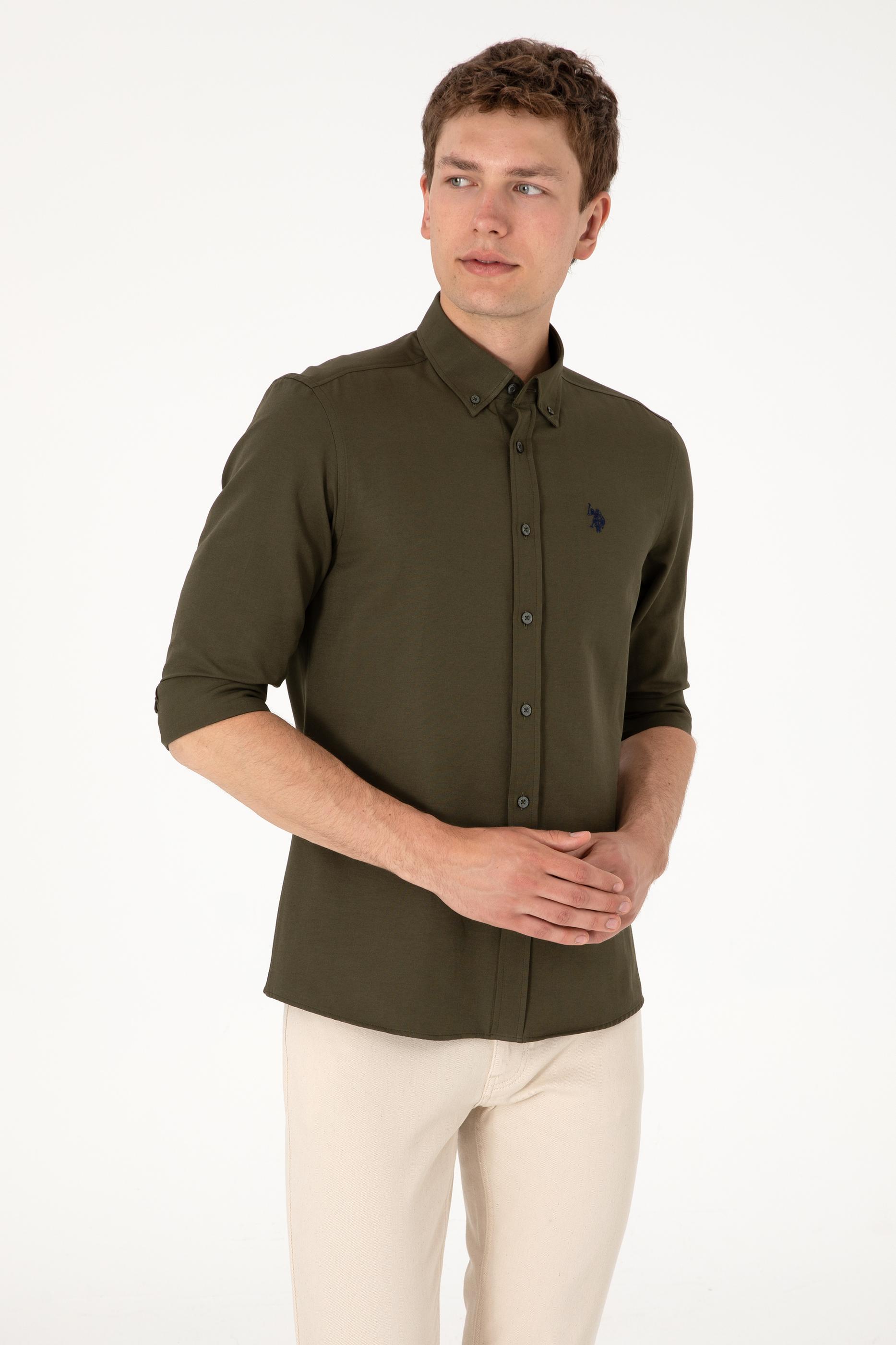 Erkek Koyu Haki Uzun Kollu Basic Gömlek