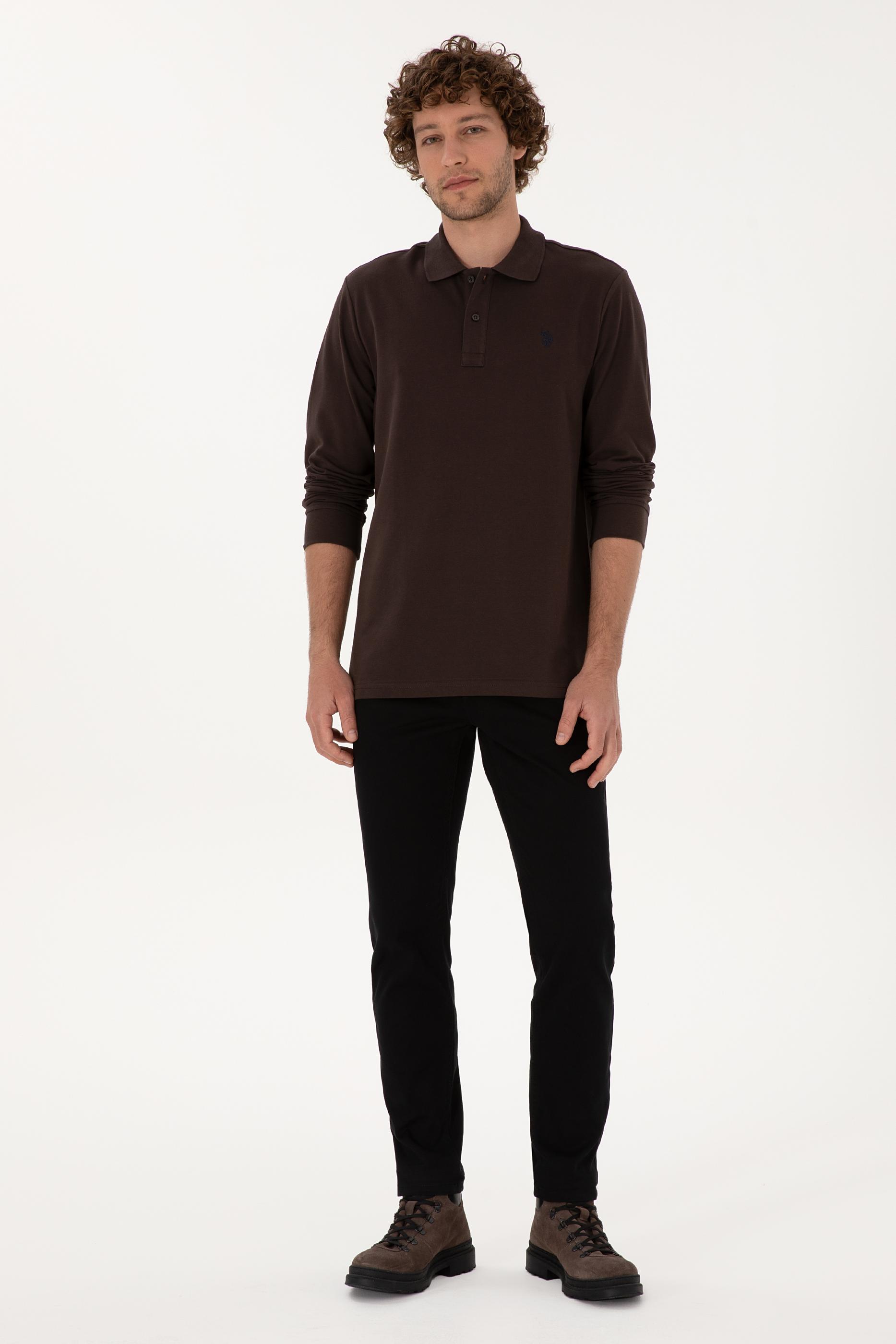 Erkek Koyu Kahverengi Basic Sweatshirt