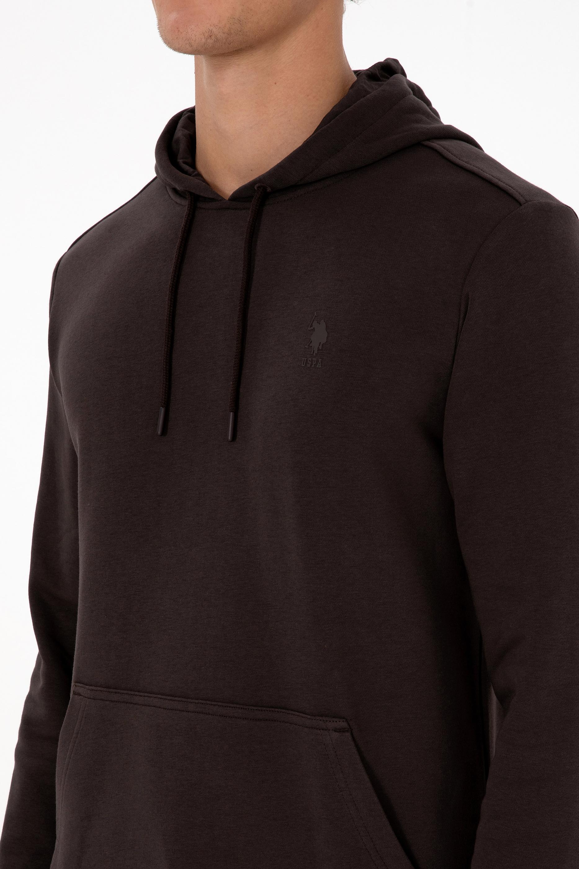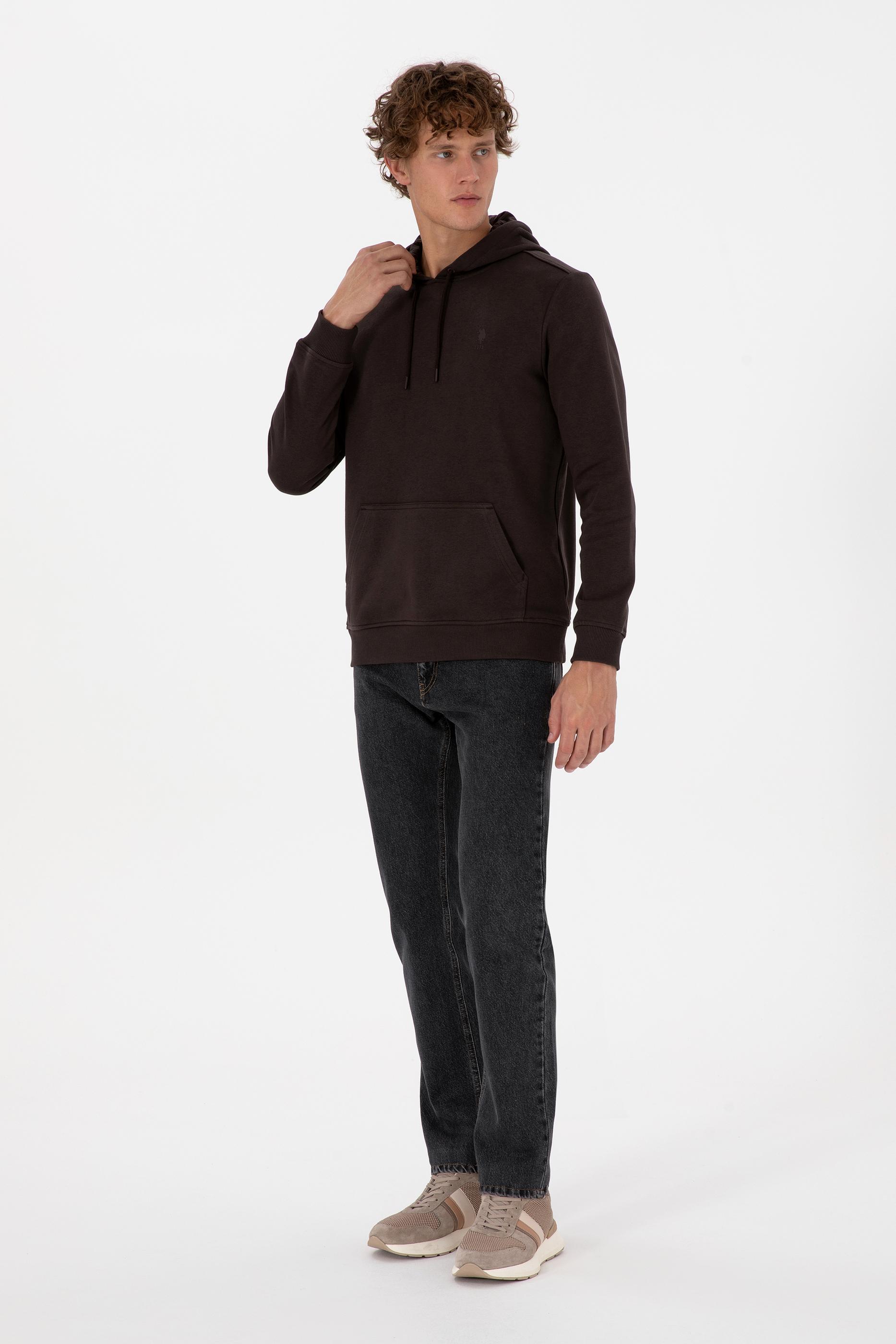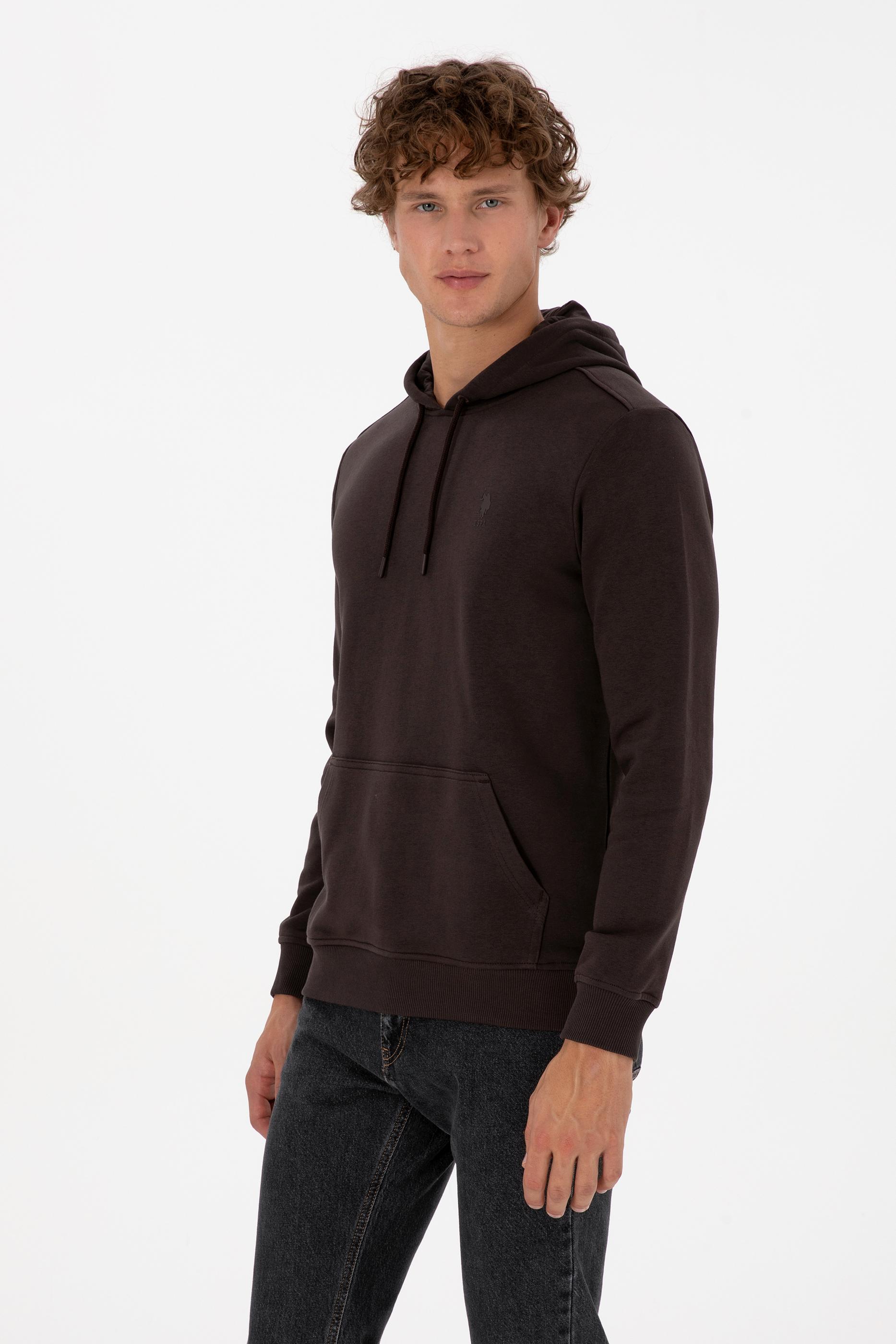 - Erkek Regular Fit Kapüşonlu Koyu Kahverengi Basic Sweatshirt