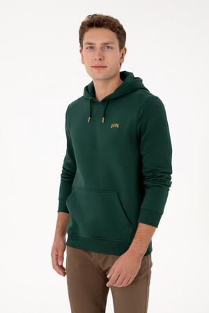 - Erkek Regular Fit Kapüşonlu Şardonlu Koyu Yeşil Basic Sweatshirt