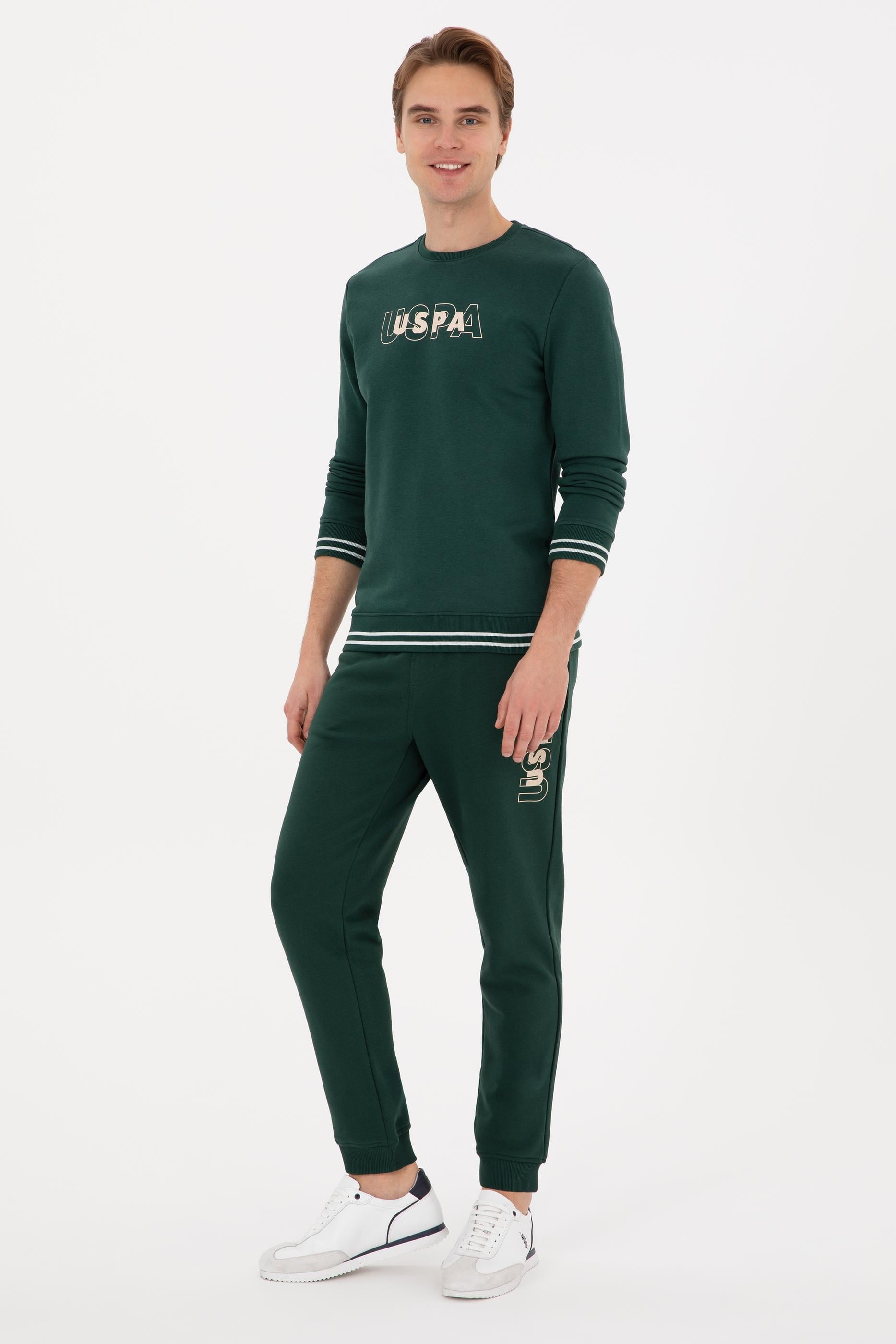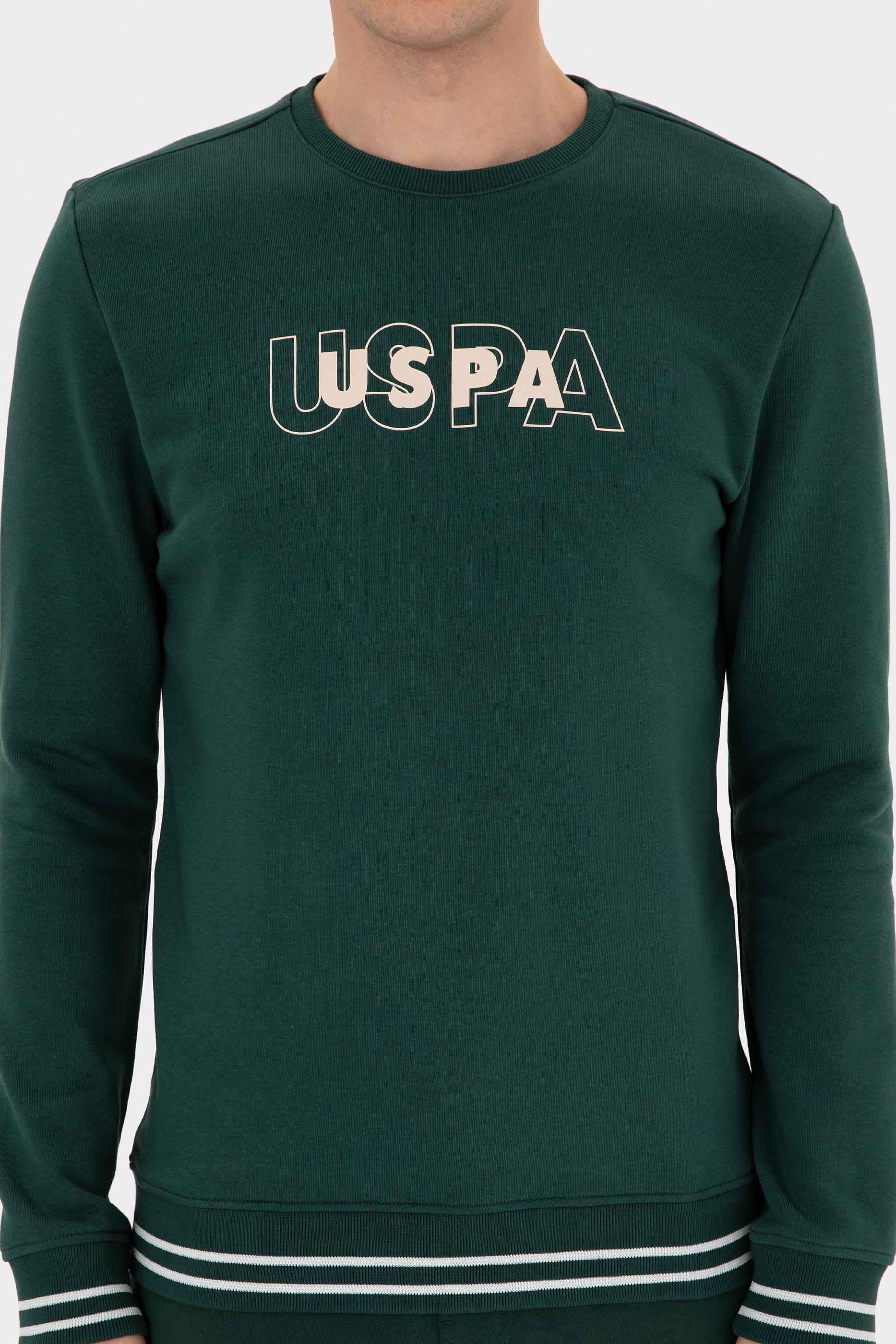 Erkek Regular Fit Bisiklet Yaka Koyu Yeşil Sweatshirt