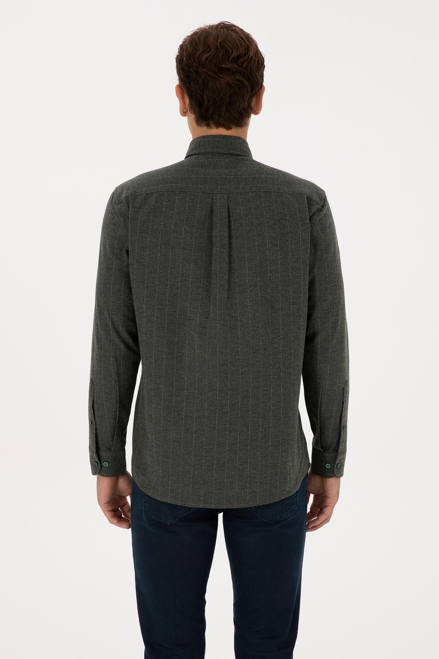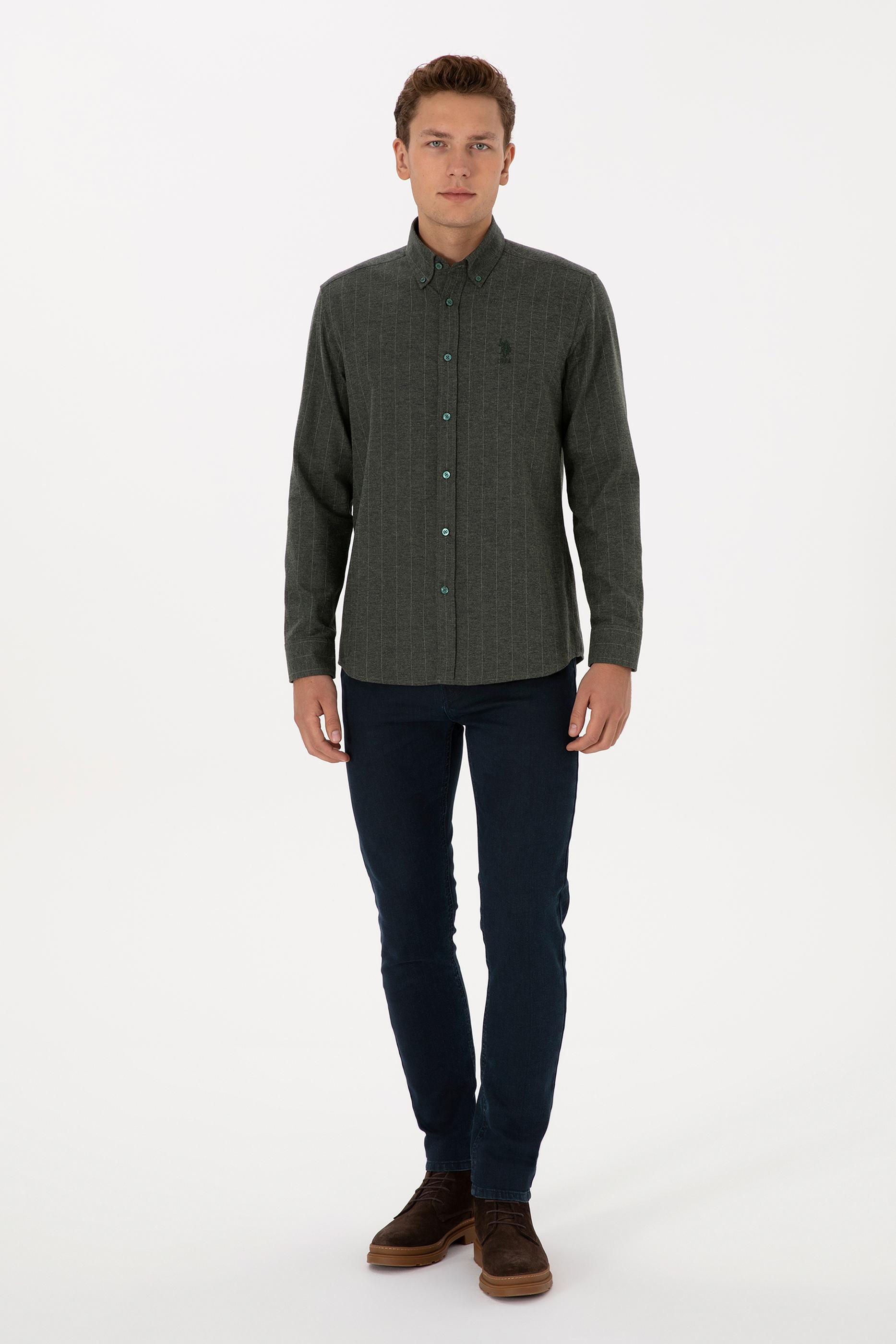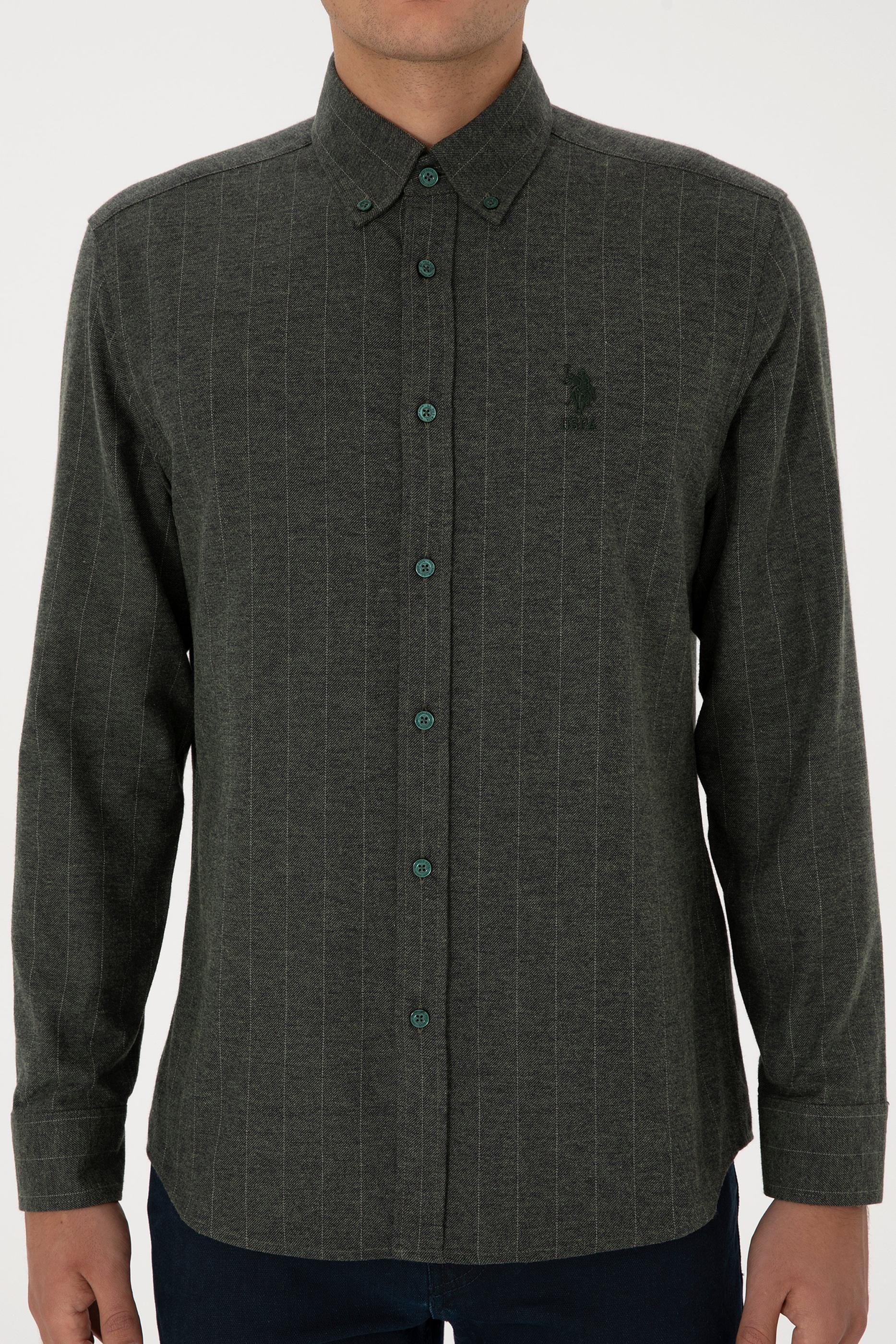 - Erkek Koyu Yeşil Uzun Kollu Çizgili Gömlek