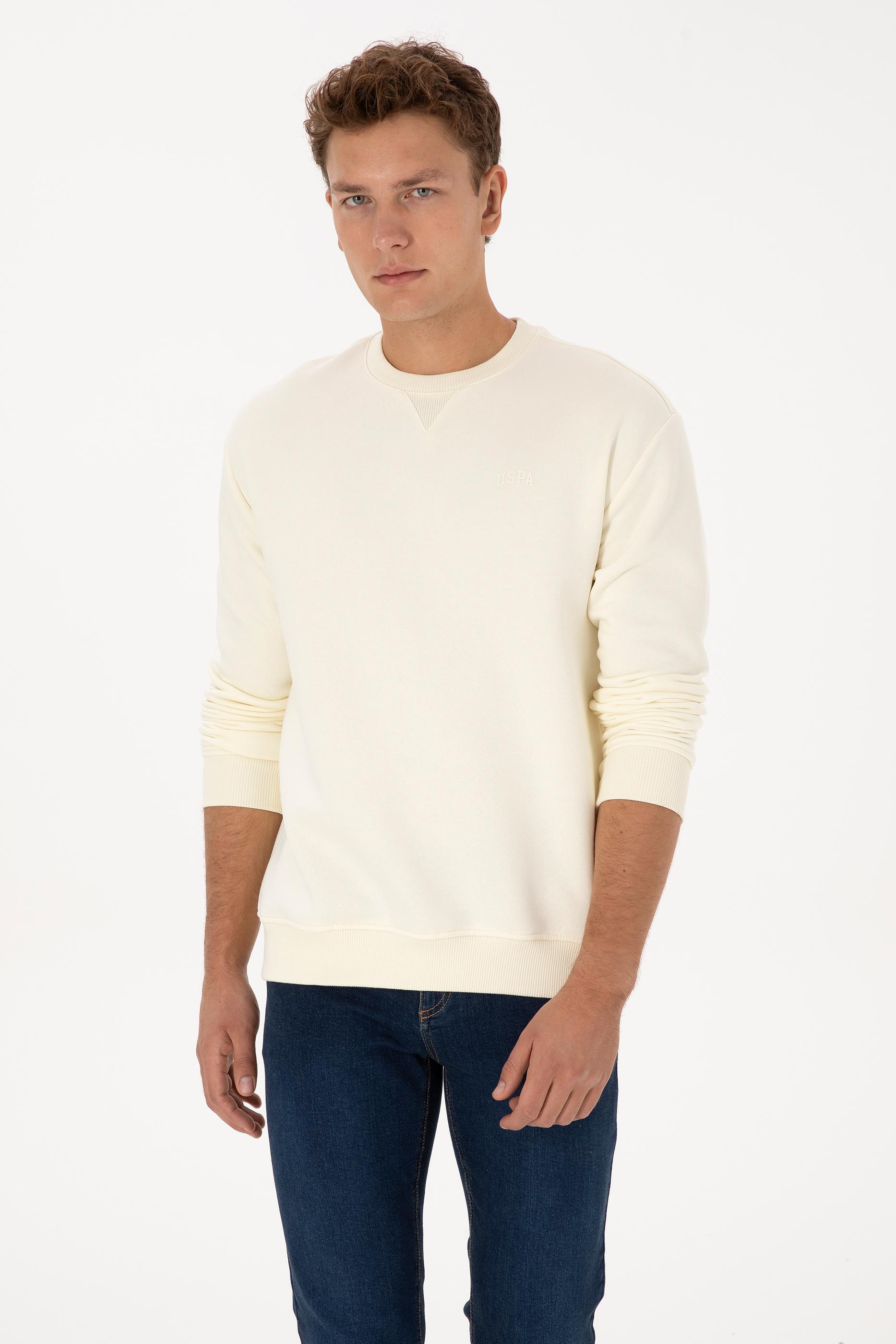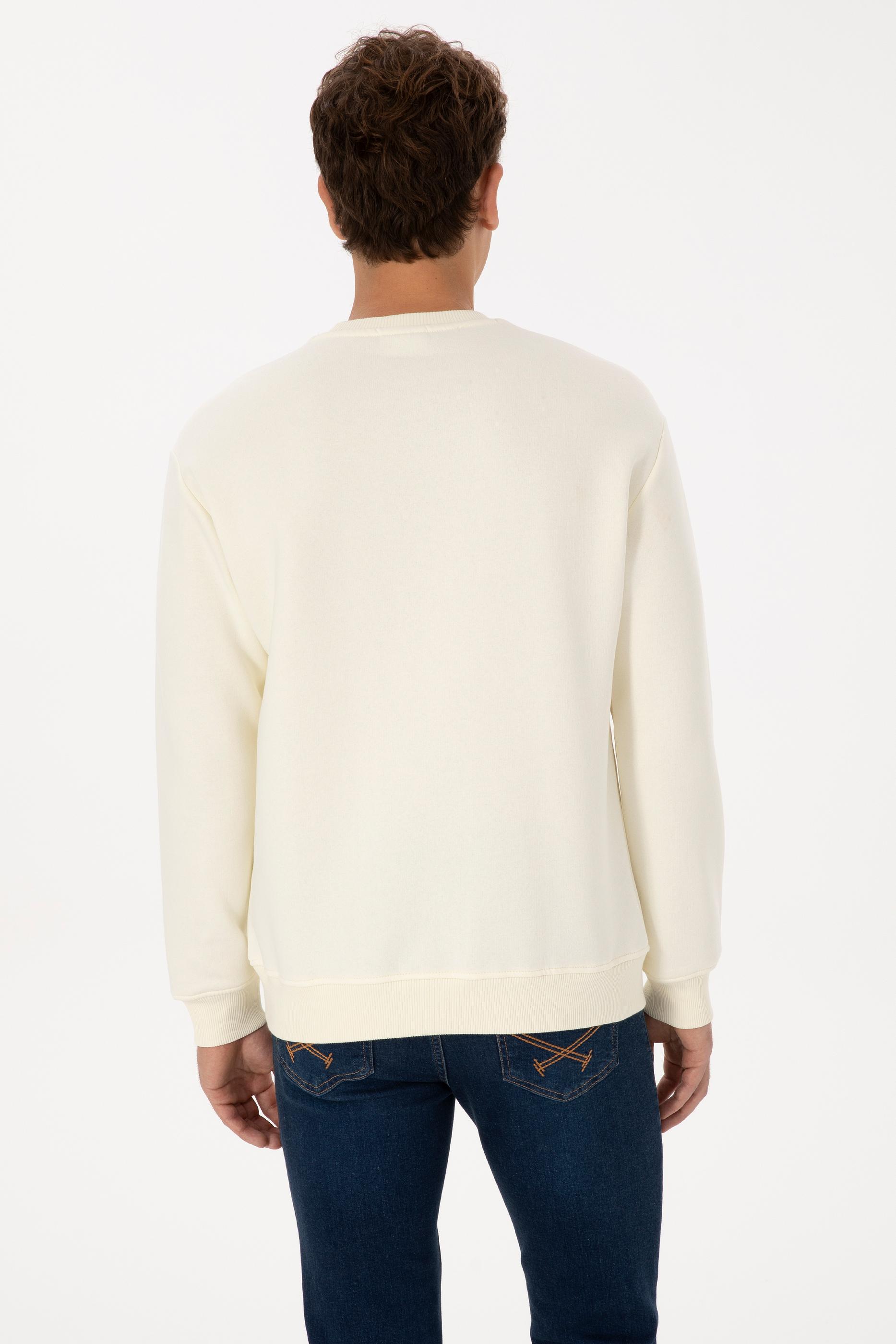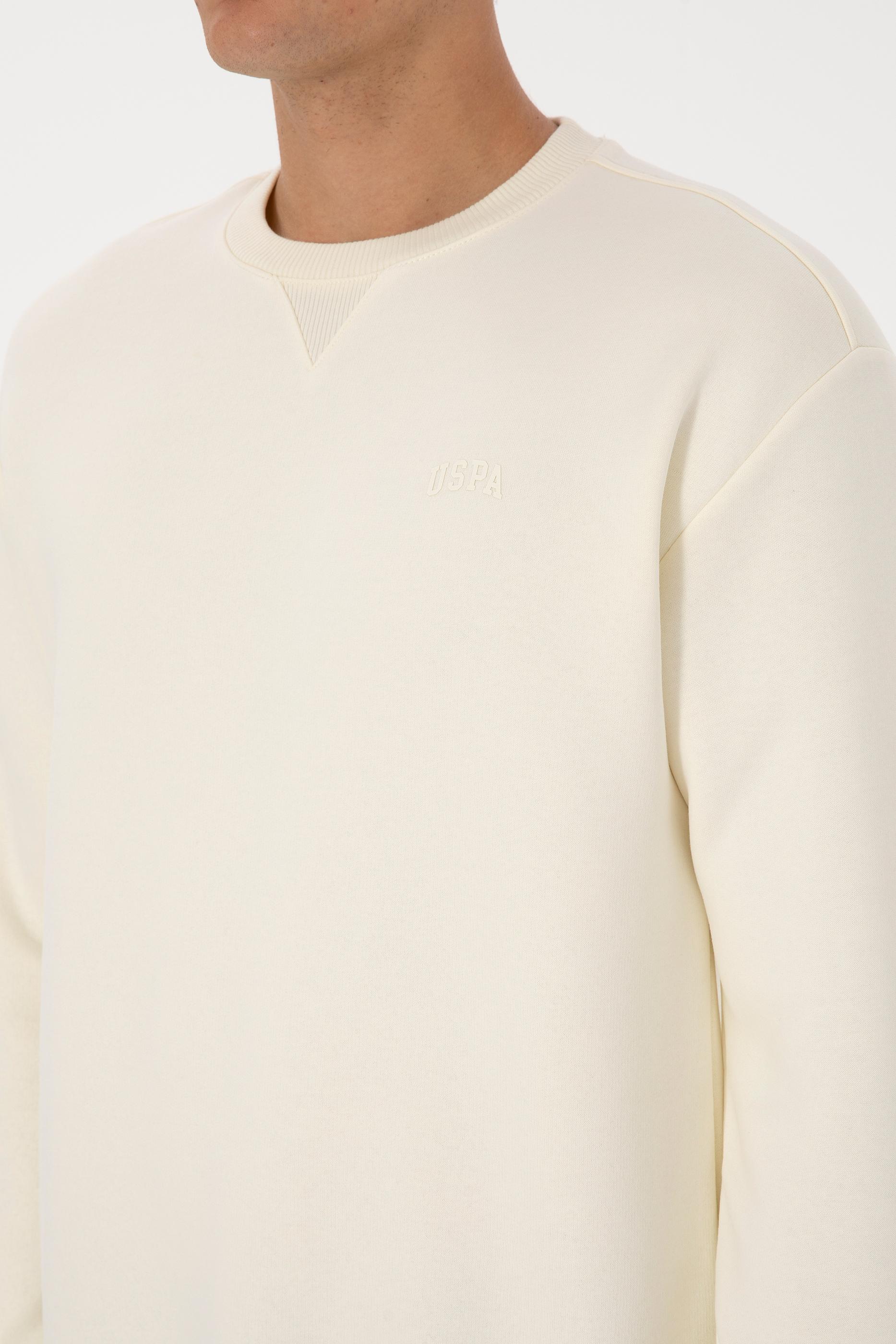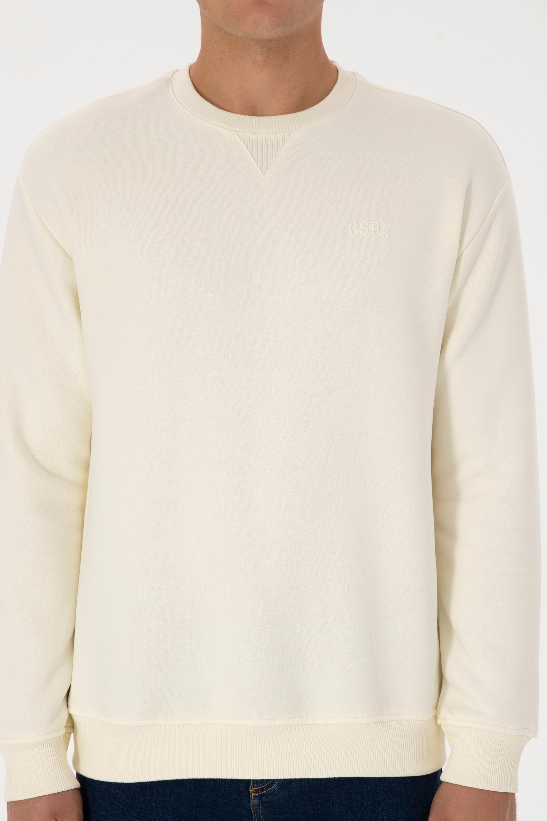 - Erkek Comfort Fit Bisiklet Yaka Şardonlu Krem Basic Sweatshirt