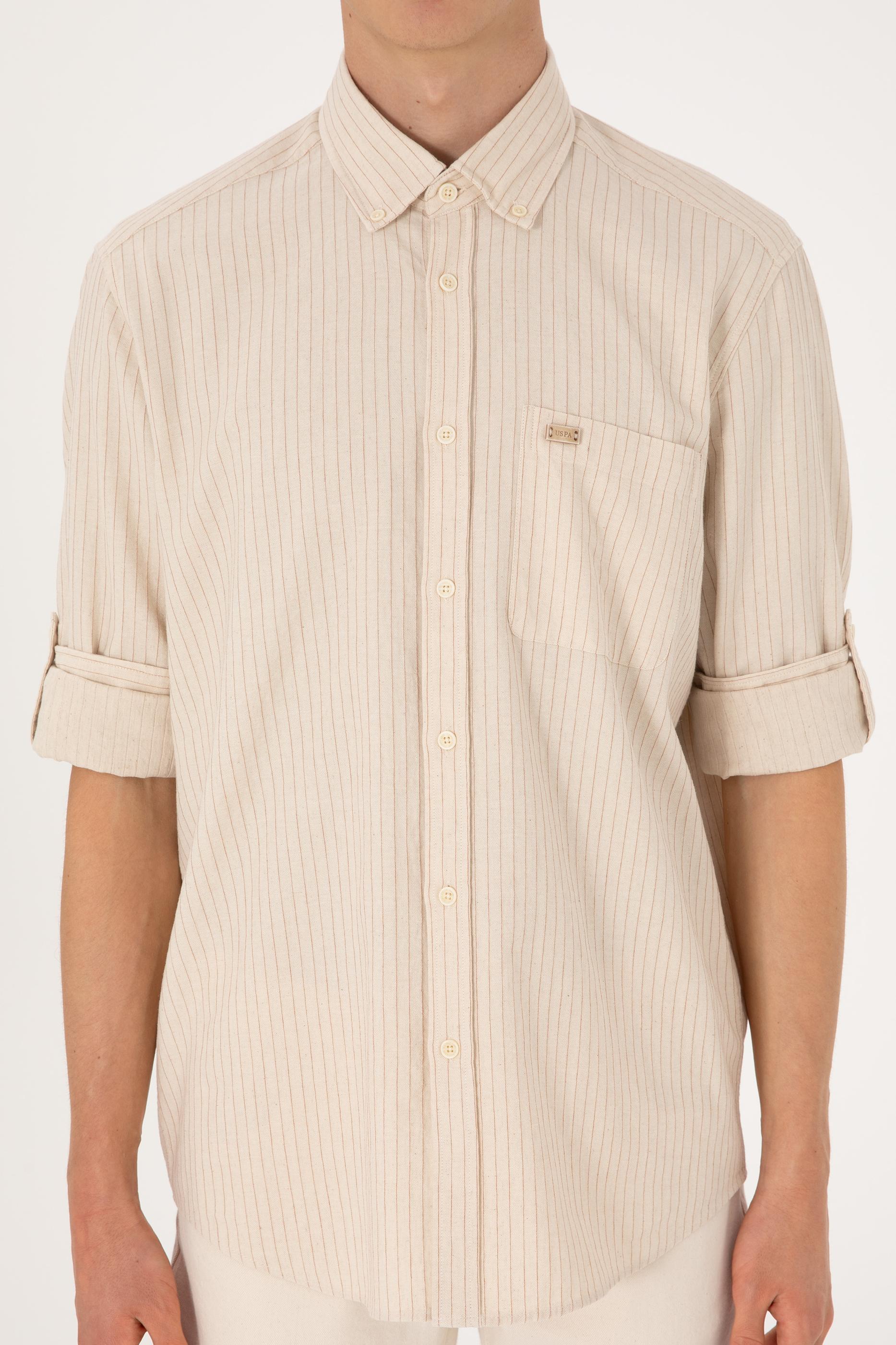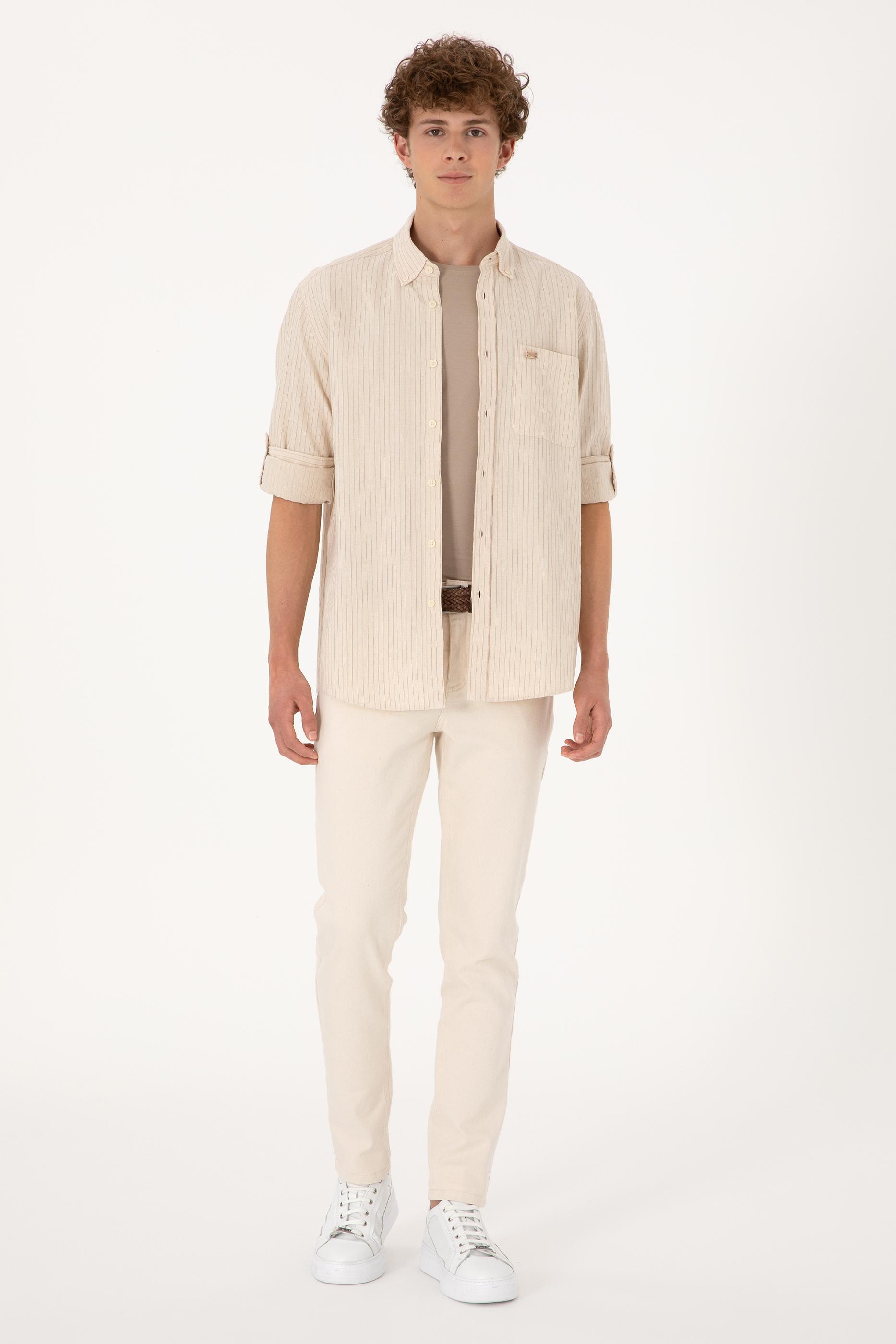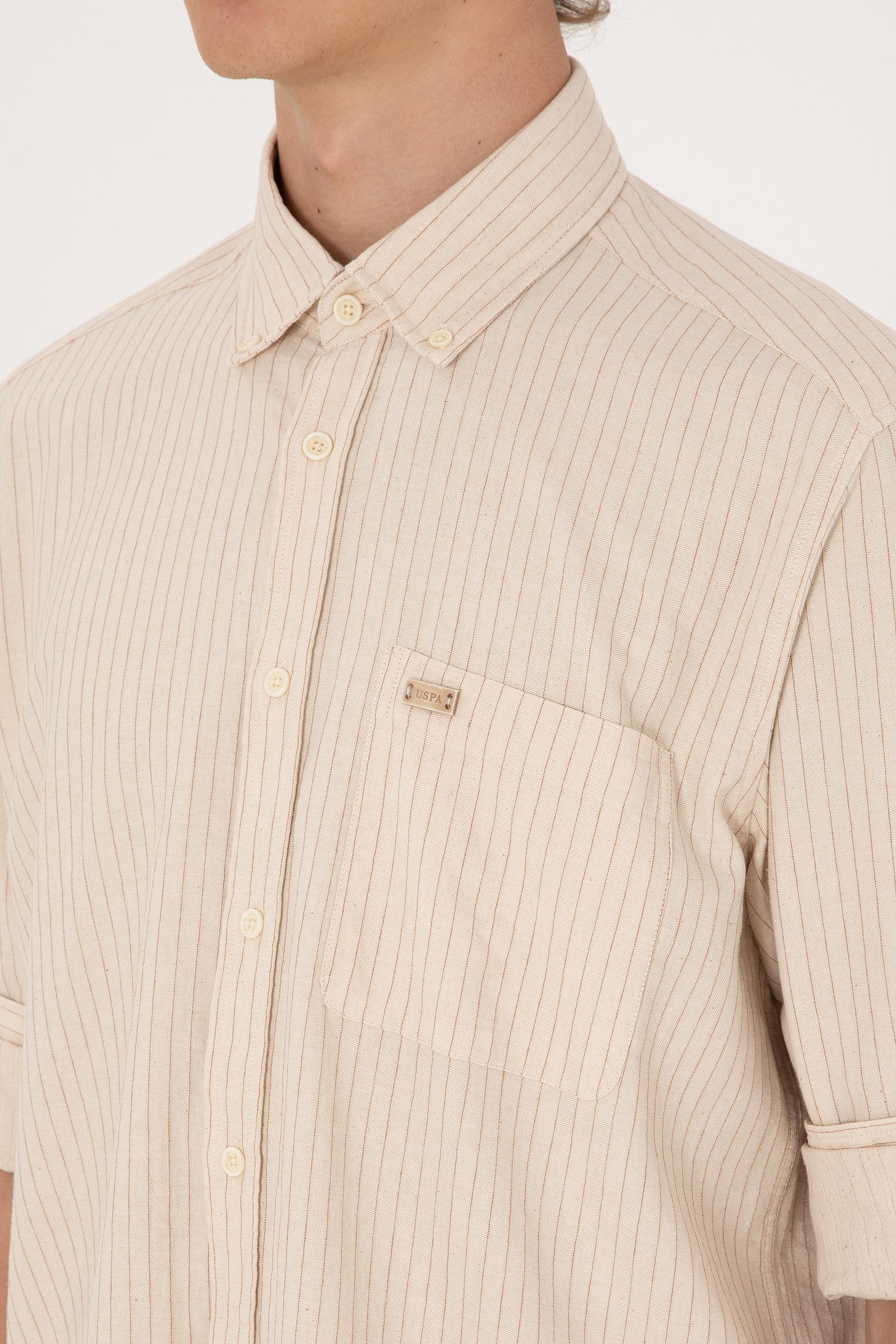 - Erkek Krem Comfort Fit Cepli Gömlek