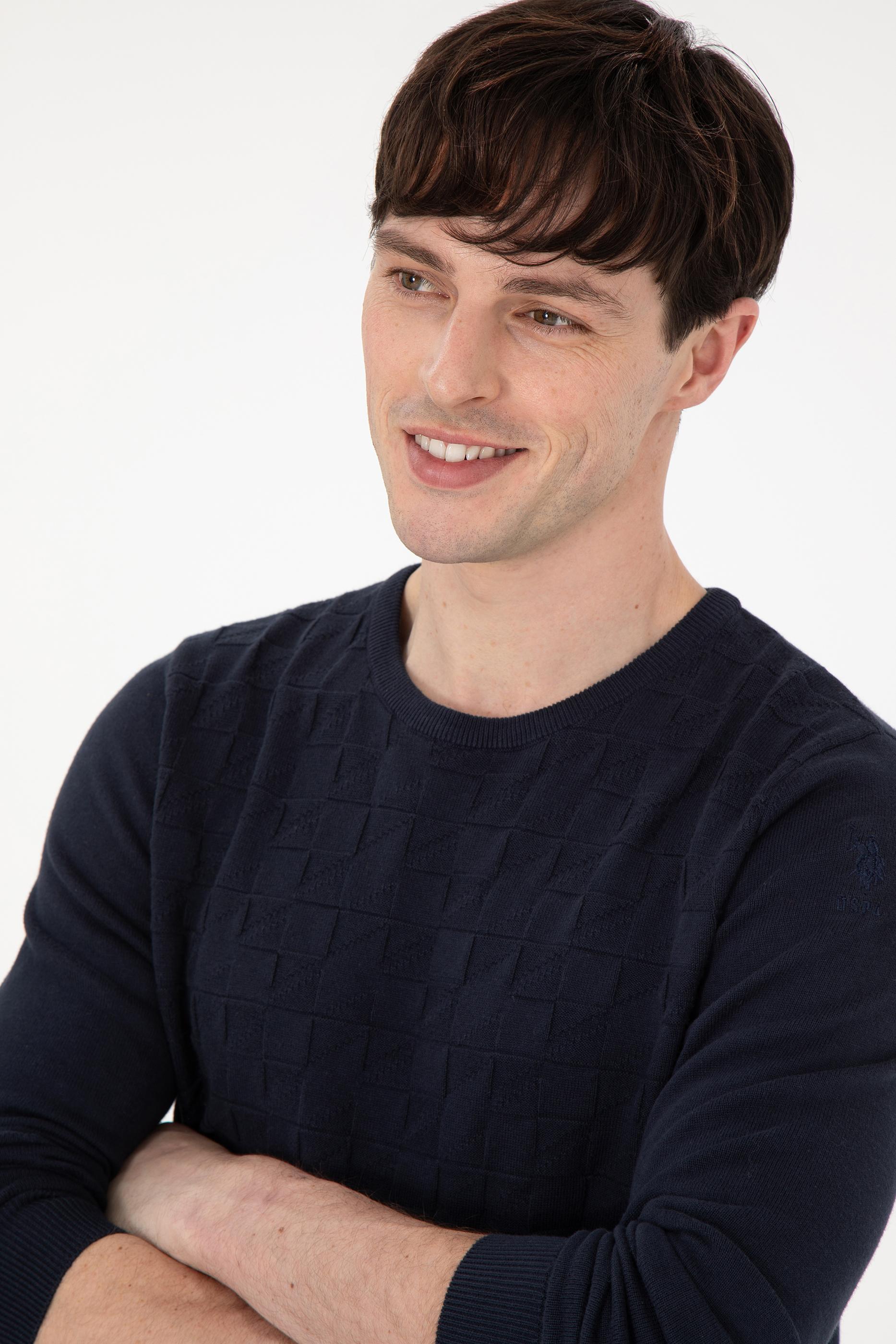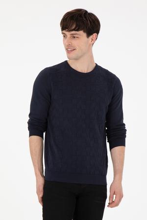 Erkek Slim Fit Bisiklet Yaka Lacivert Basic Kazak