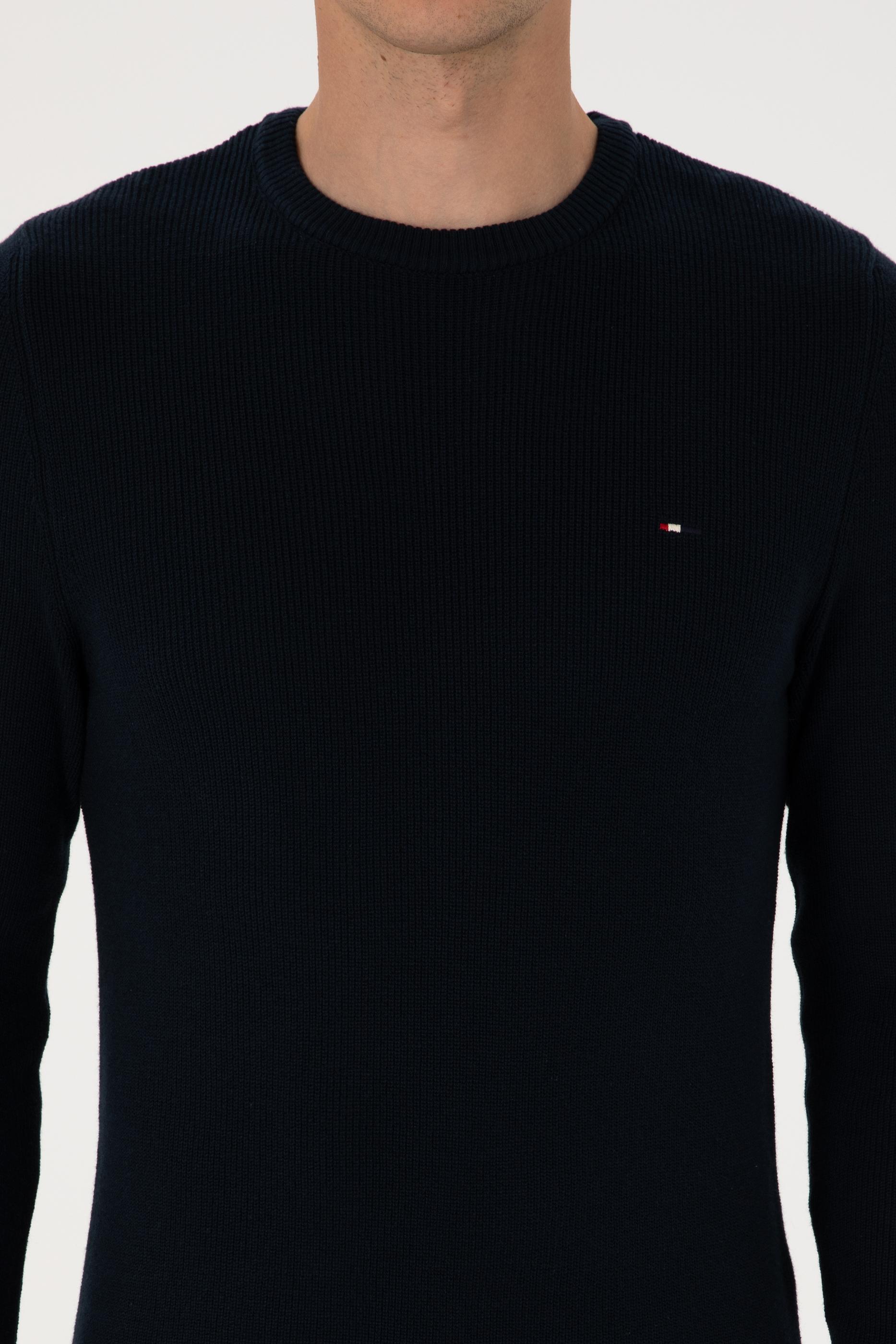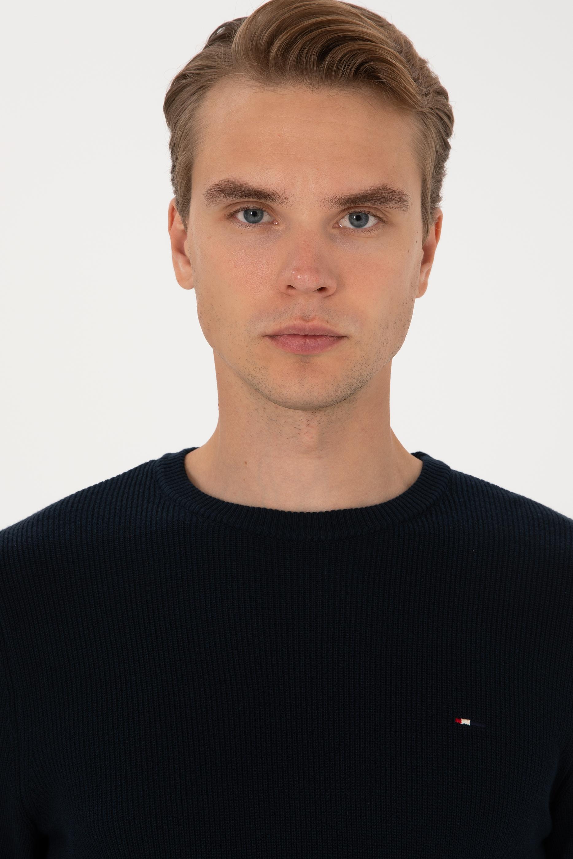 Erkek Slim Fit Bisiklet Yaka Lacivert Basic Kazak