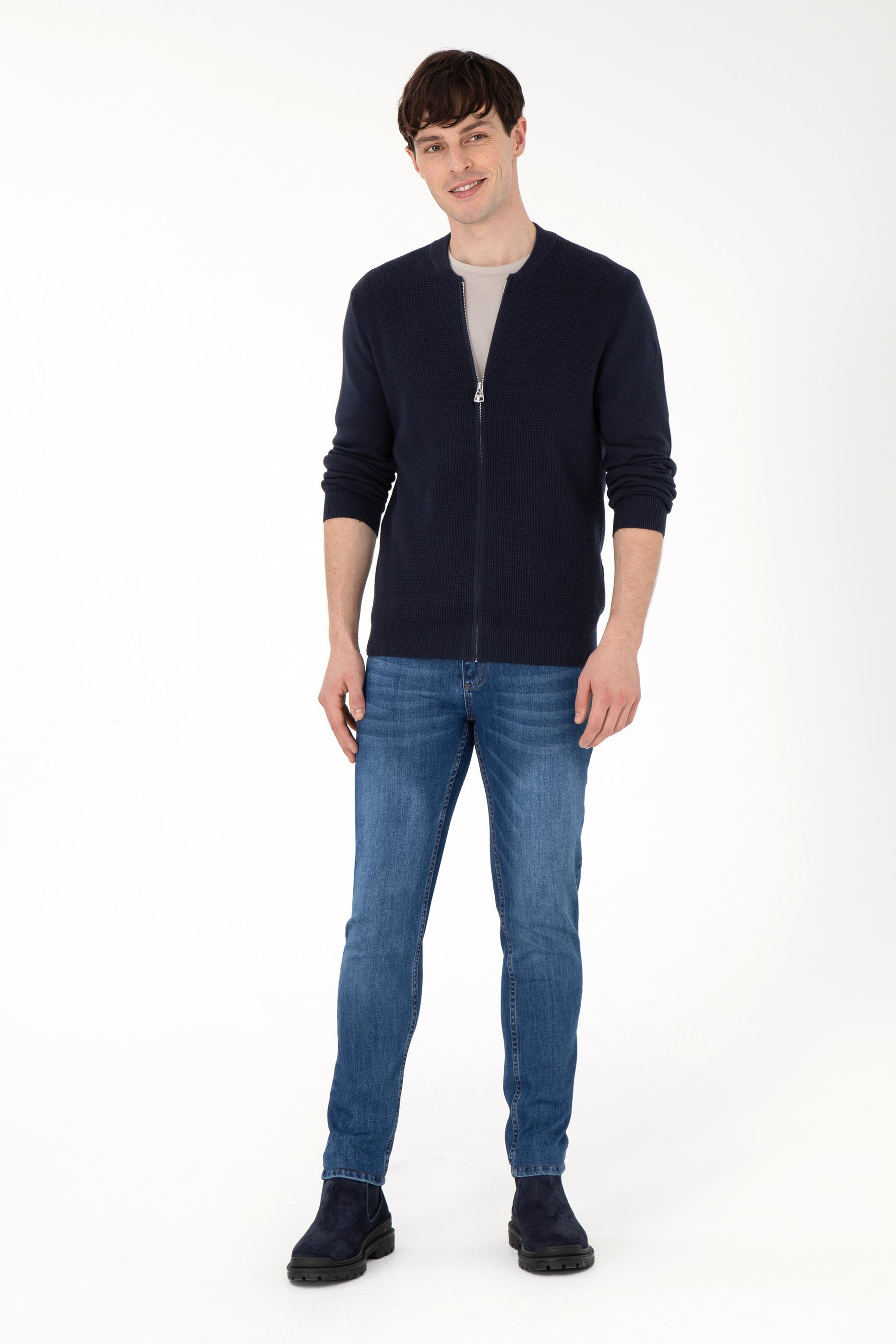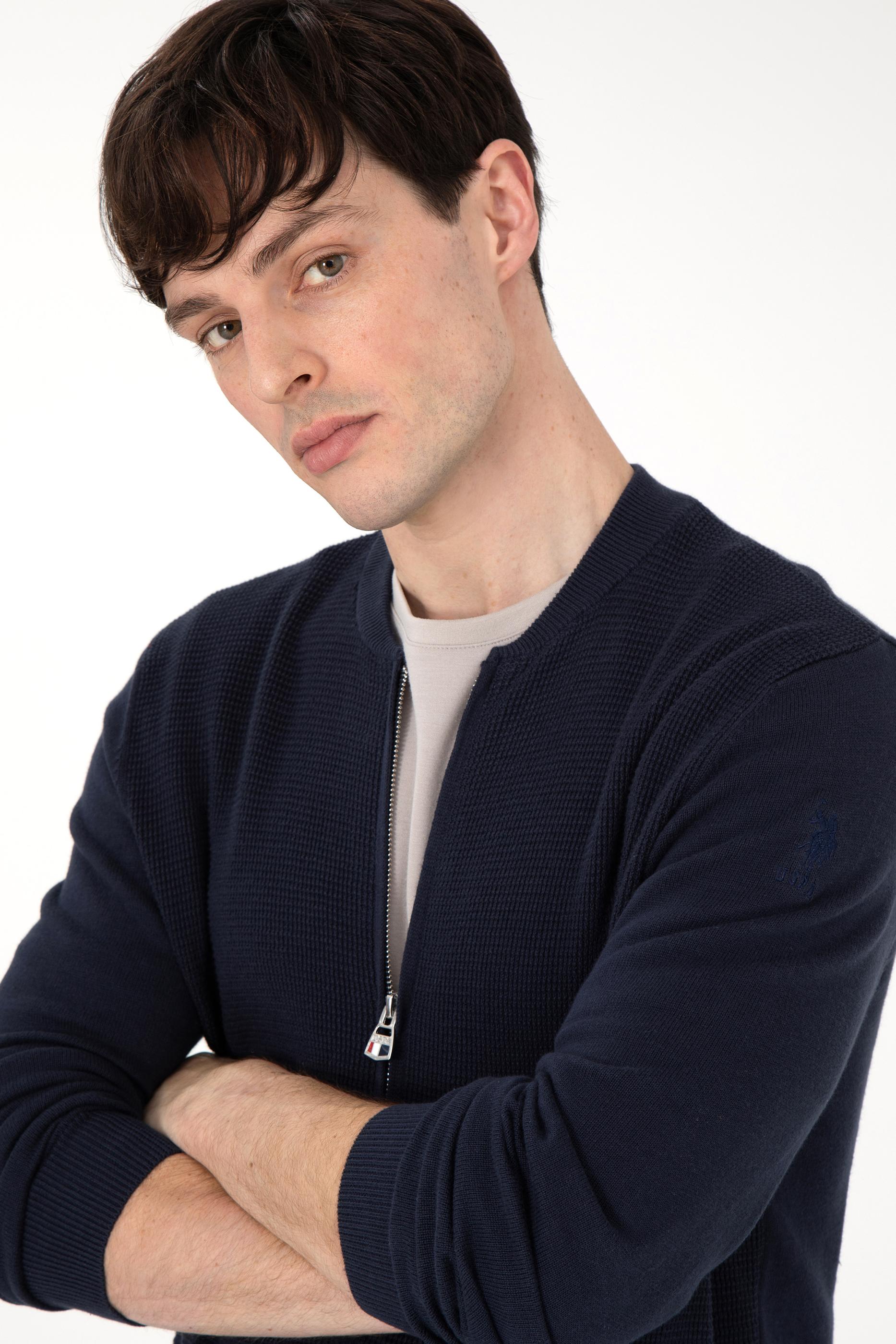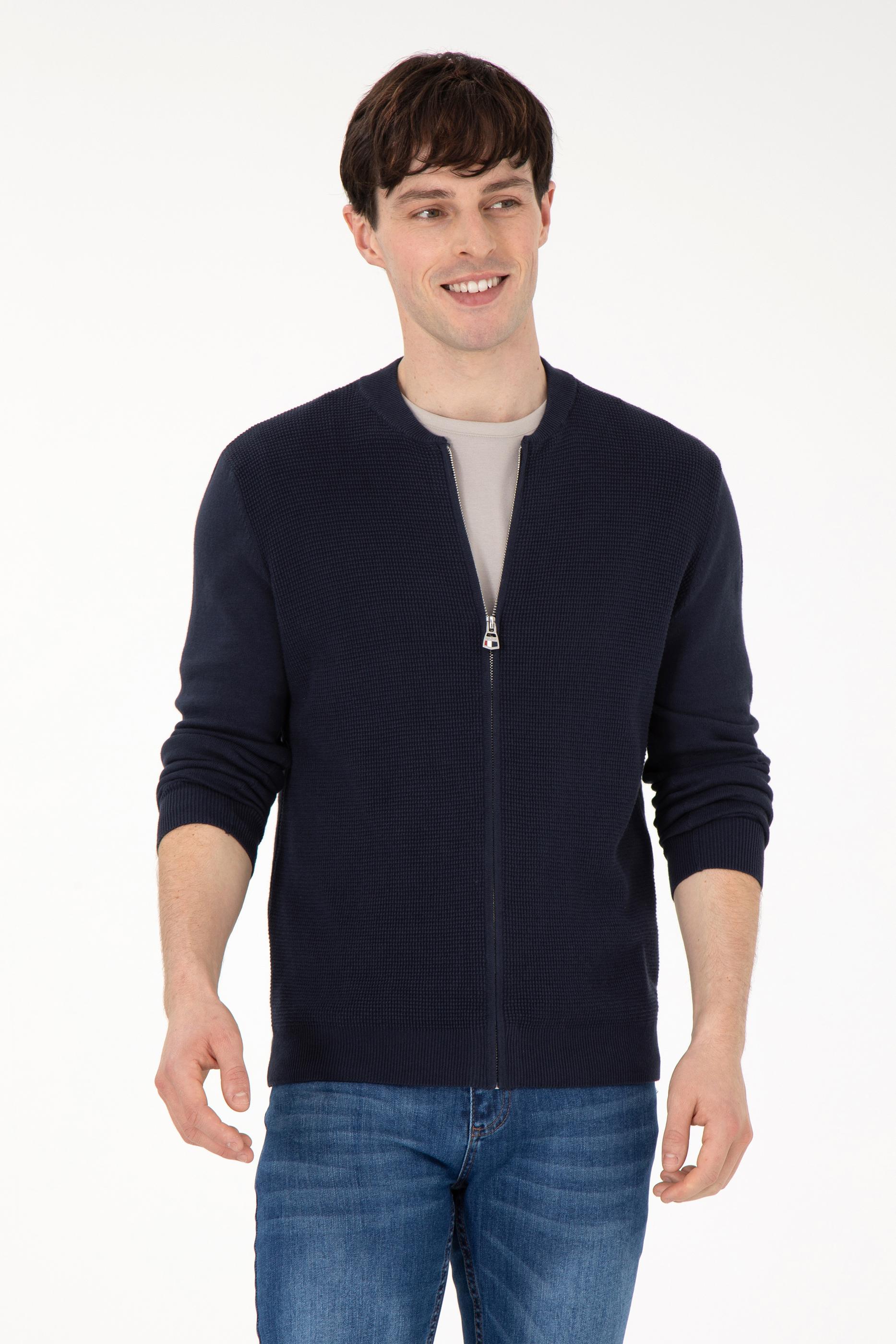 Erkek Lacivert Basic Triko Hırka
