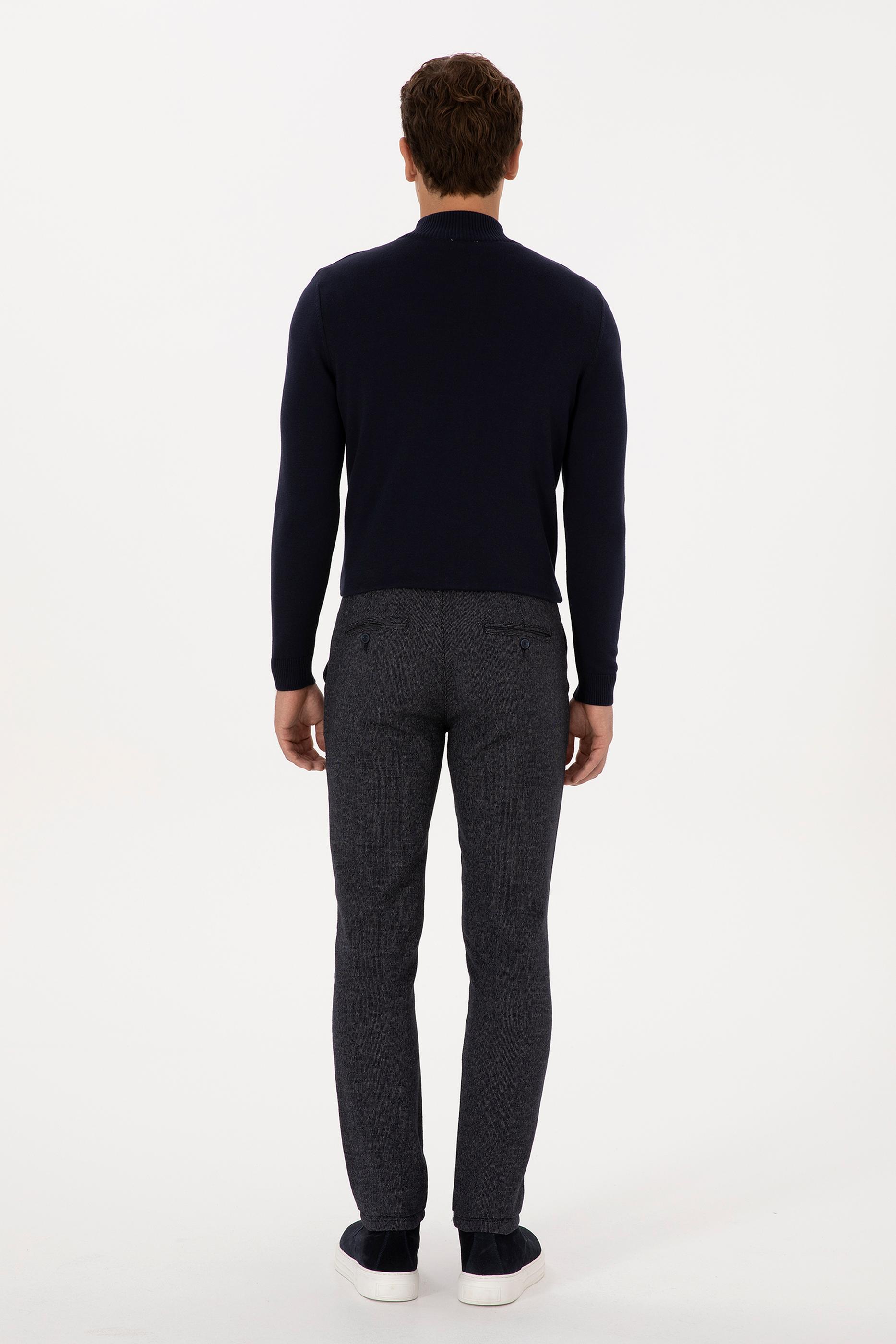 Erkek Lacivert Slim Fit Kanvas / Chino Pantolon