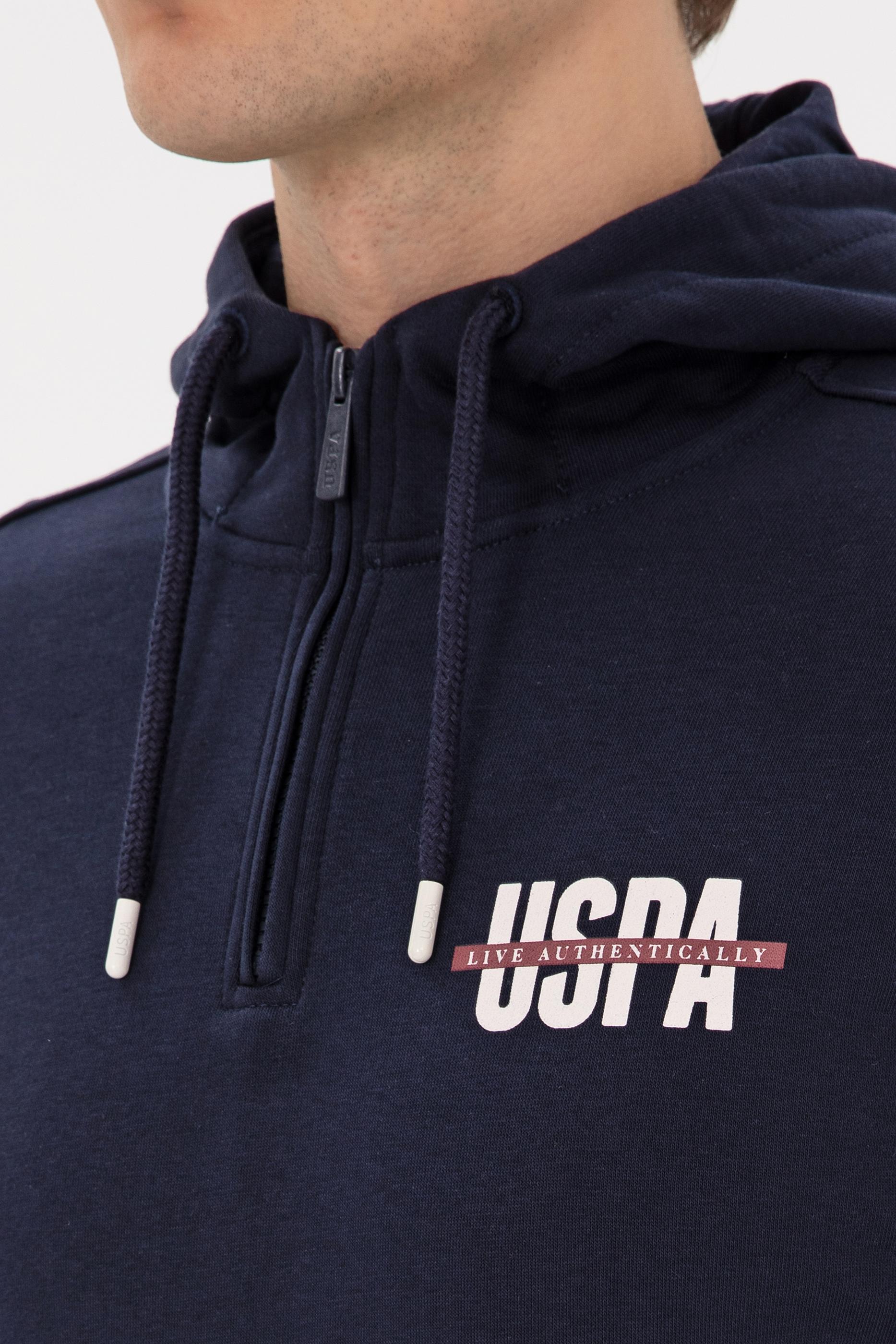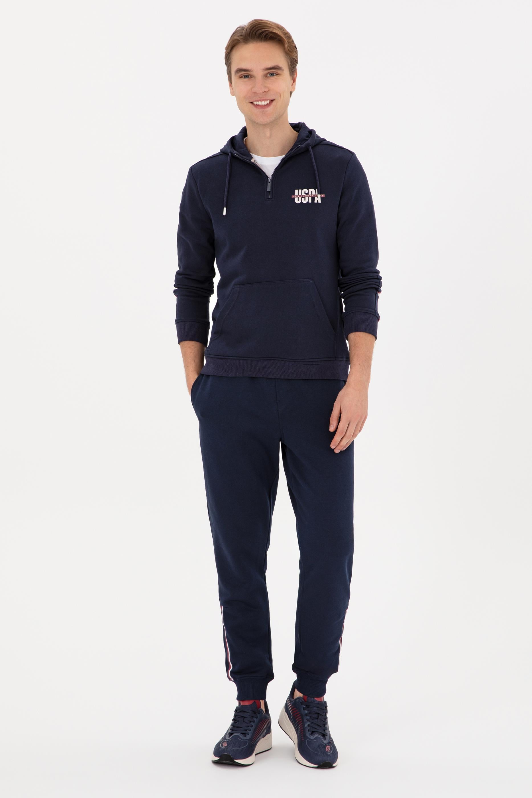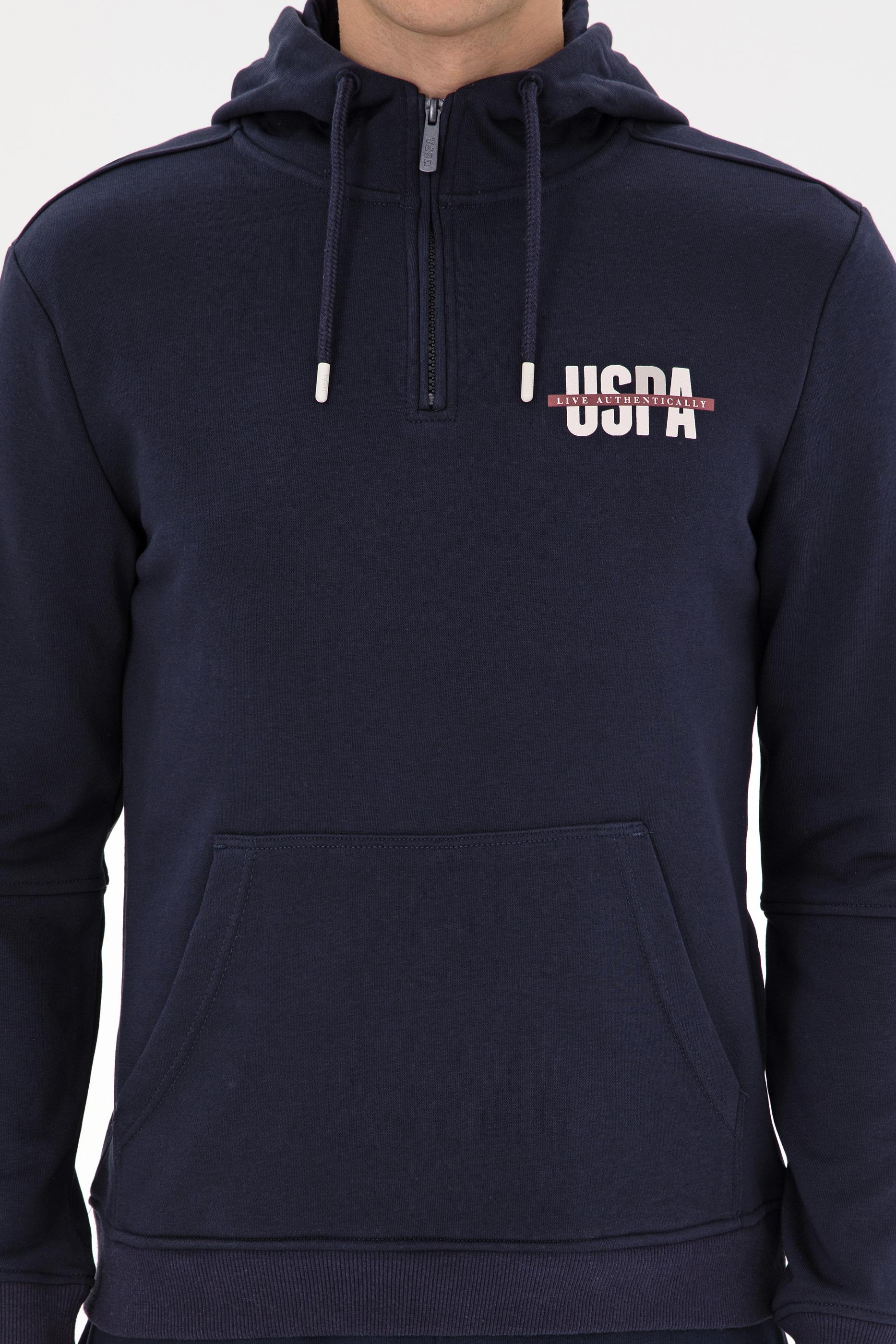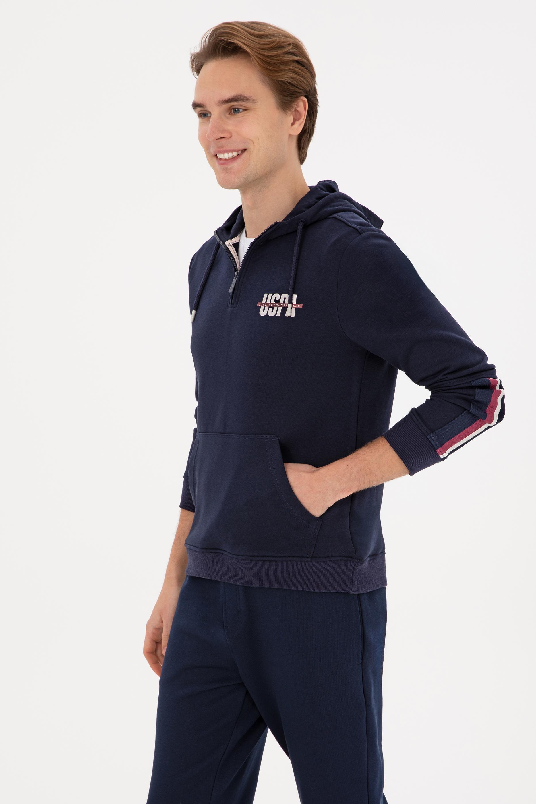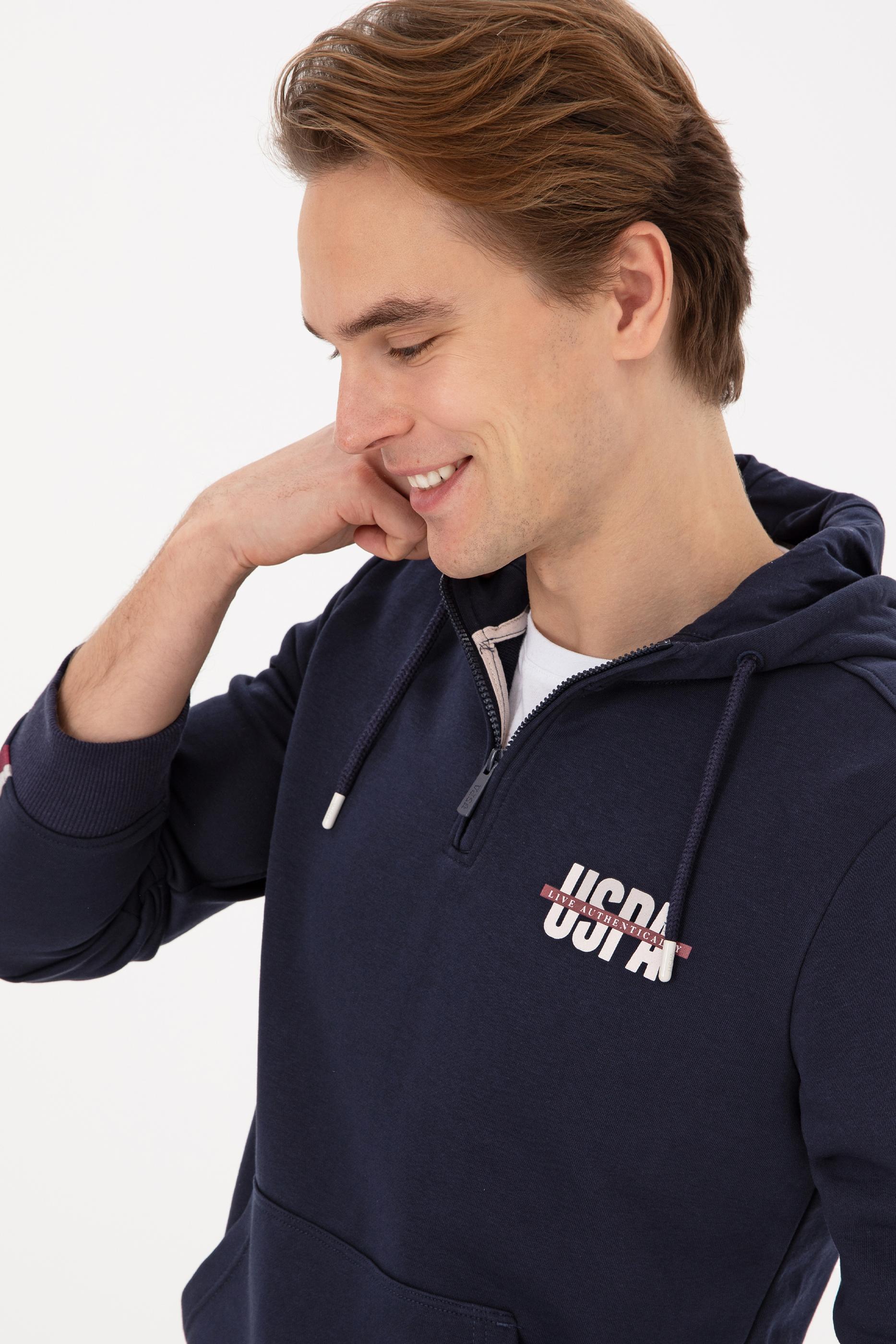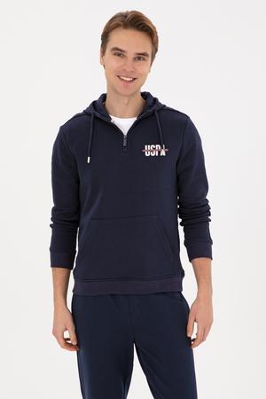 - Erkek Regular Fit Yarım Fermuarlı Kapüşonlu Lacivert Sweatshirt