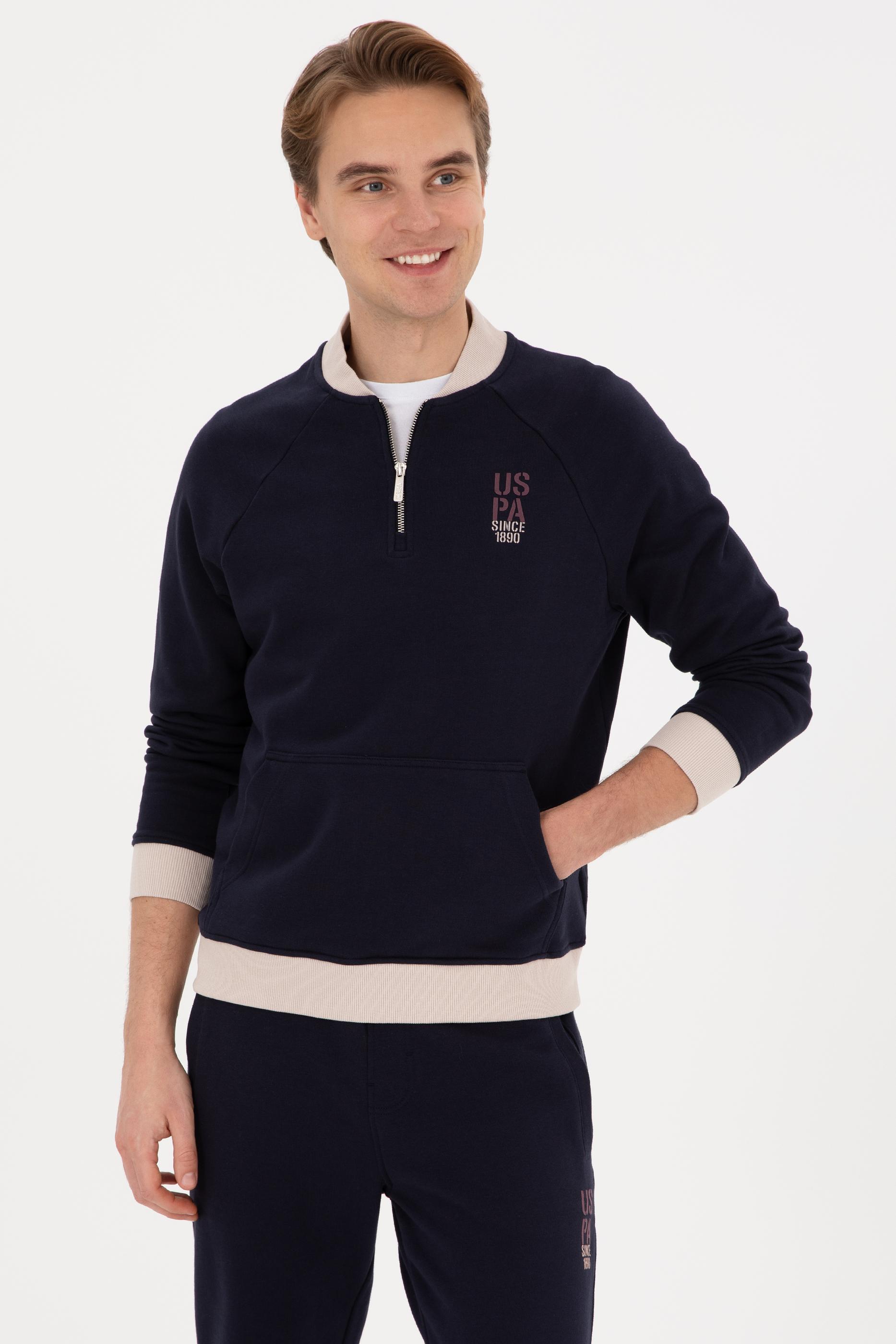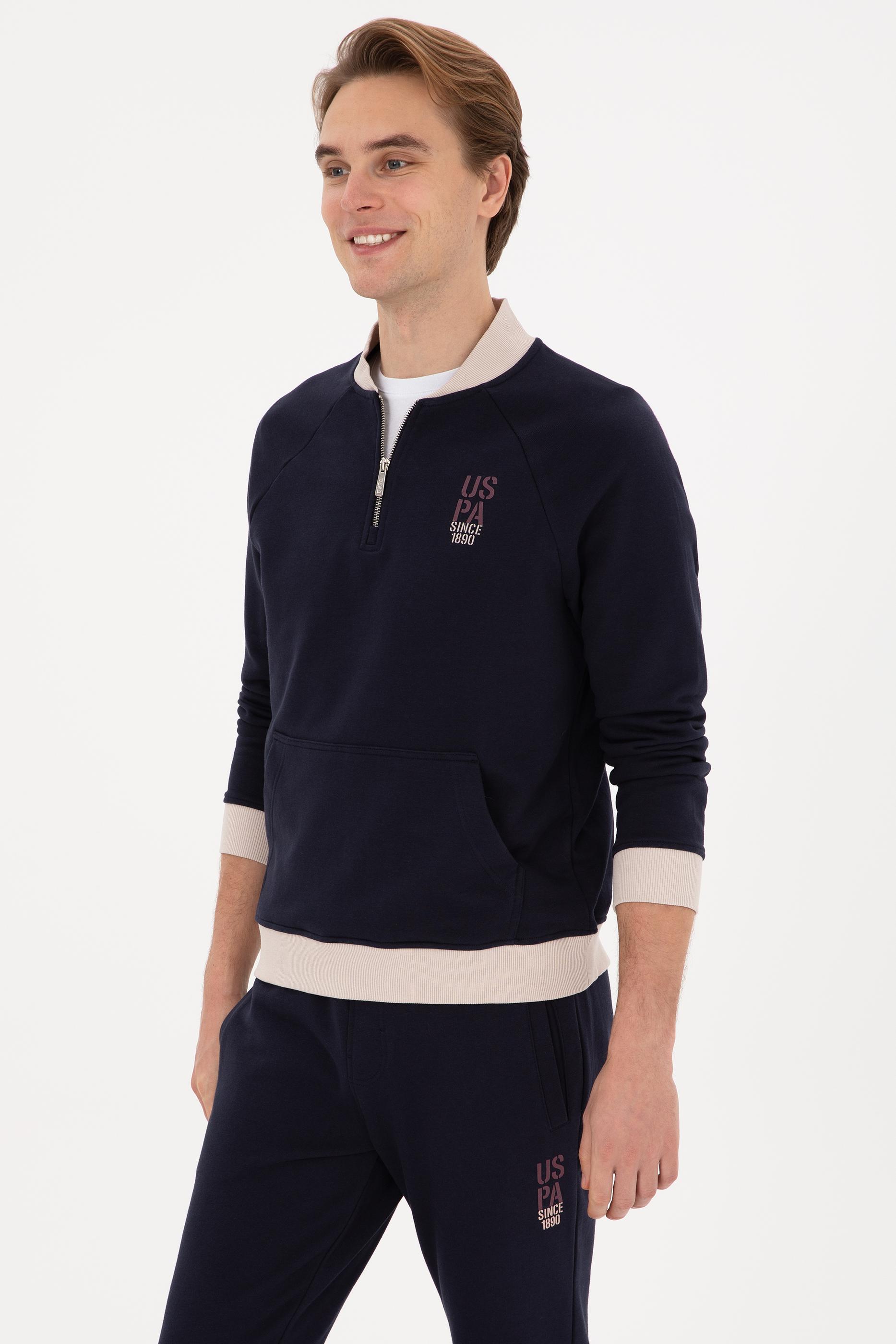 - Erkek Yarım Fermuarlı Comfort Fit Lacivert Basic Sweatshirt