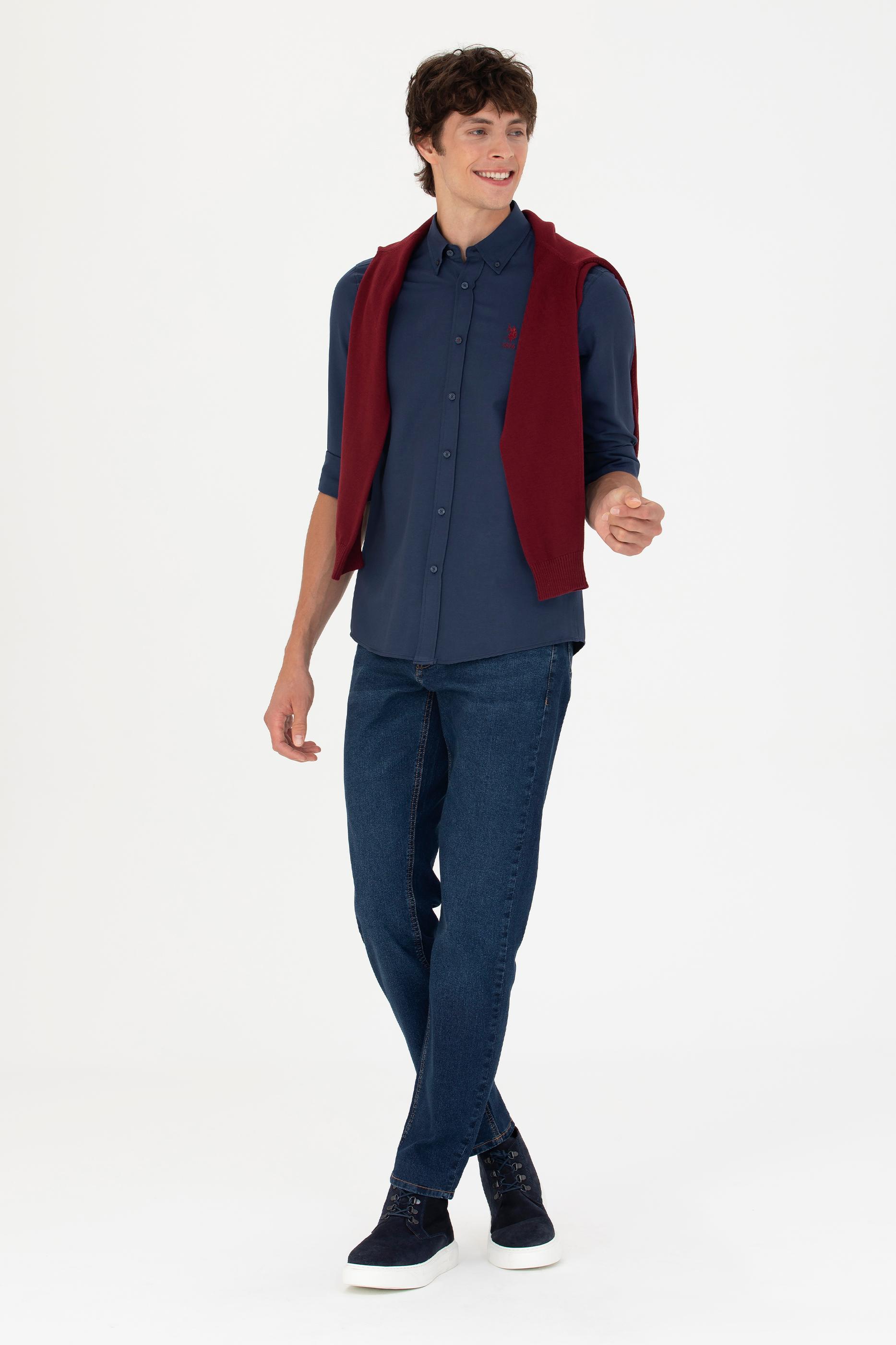 Erkek Lacivert Uzun Kollu Basic Gömlek