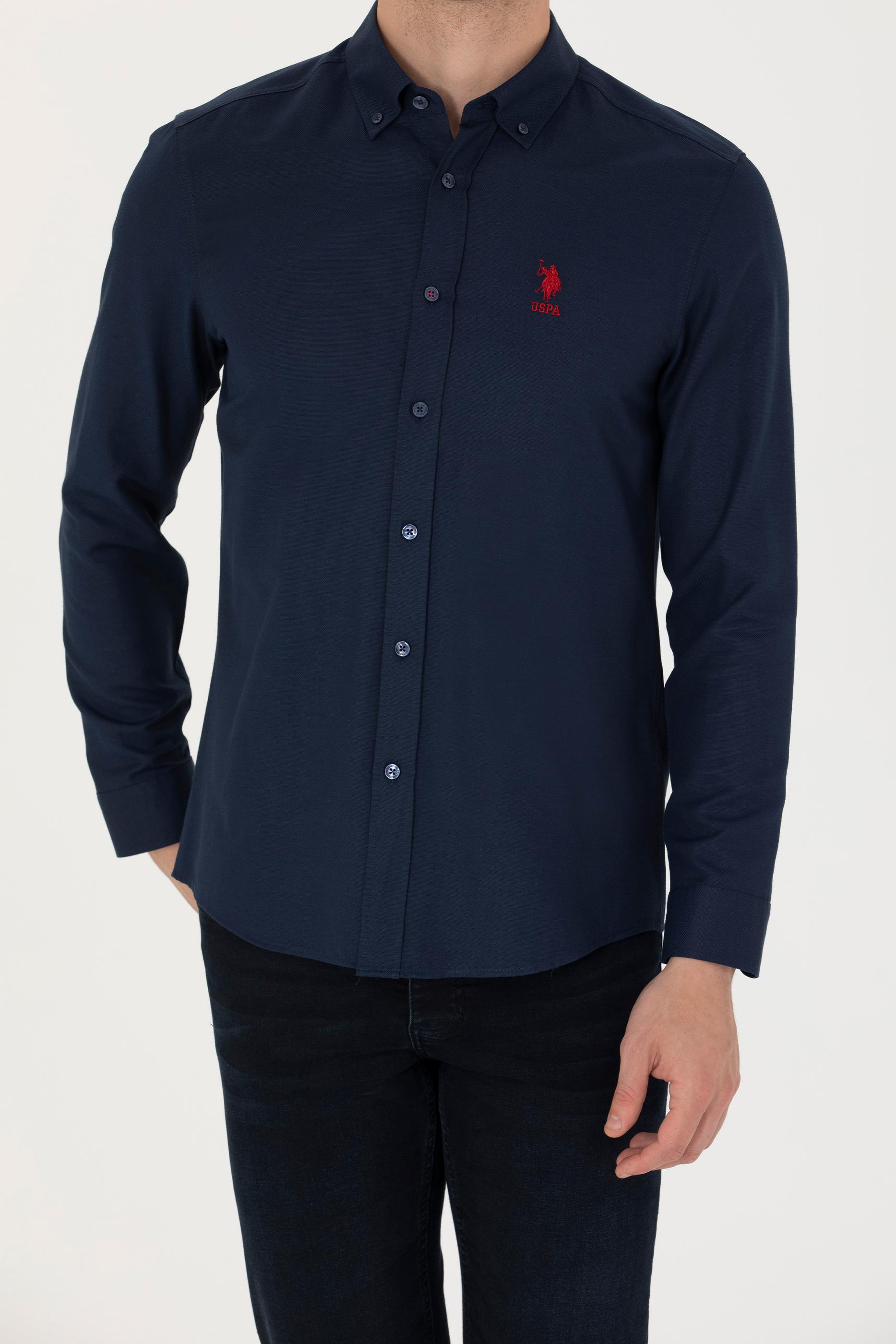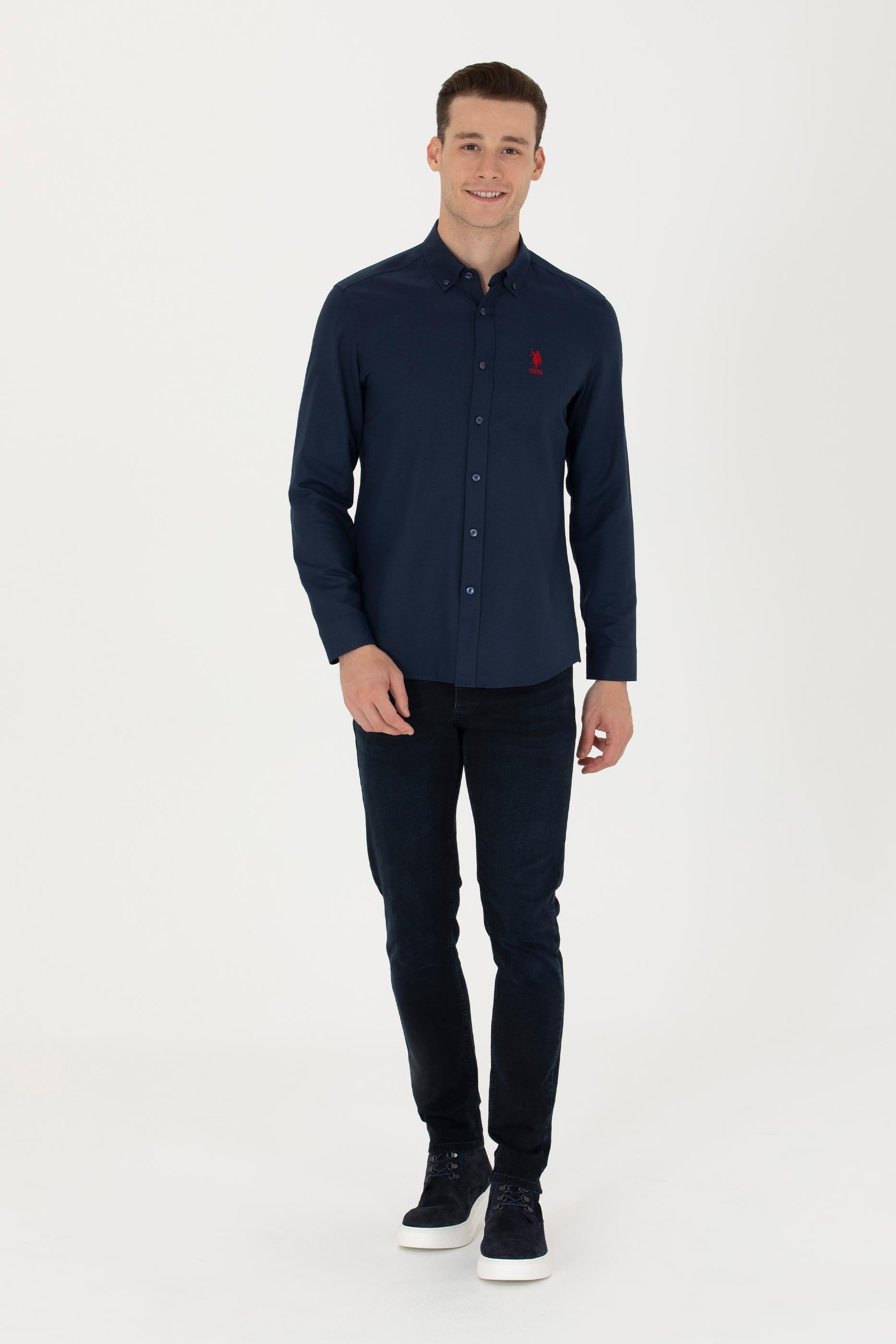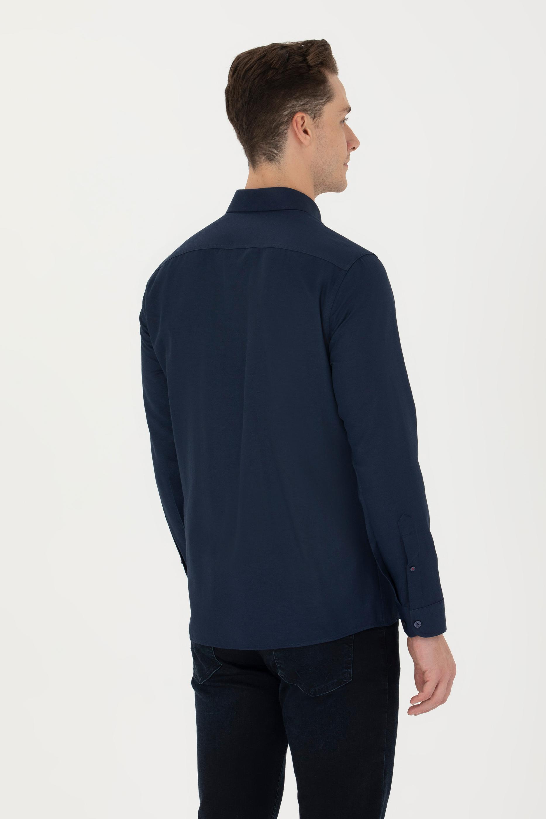 Erkek Lacivert Uzun Kollu Basic Gömlek