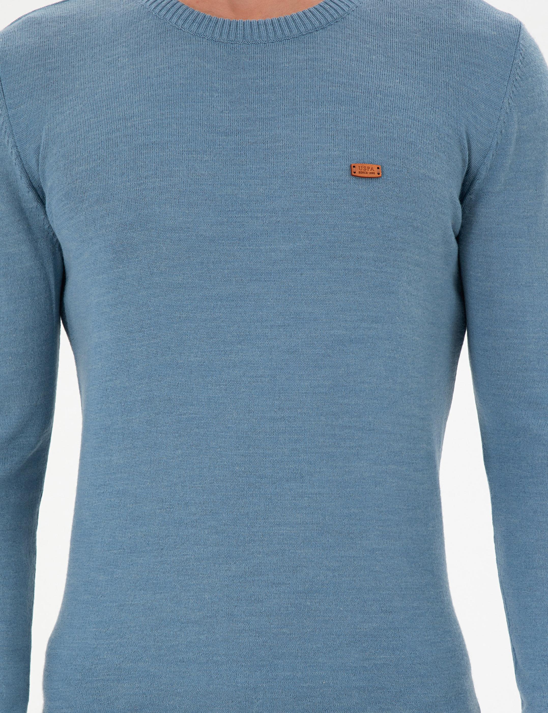 - Erkek Slim Fit Bisiklet Yaka Mavi Kazak