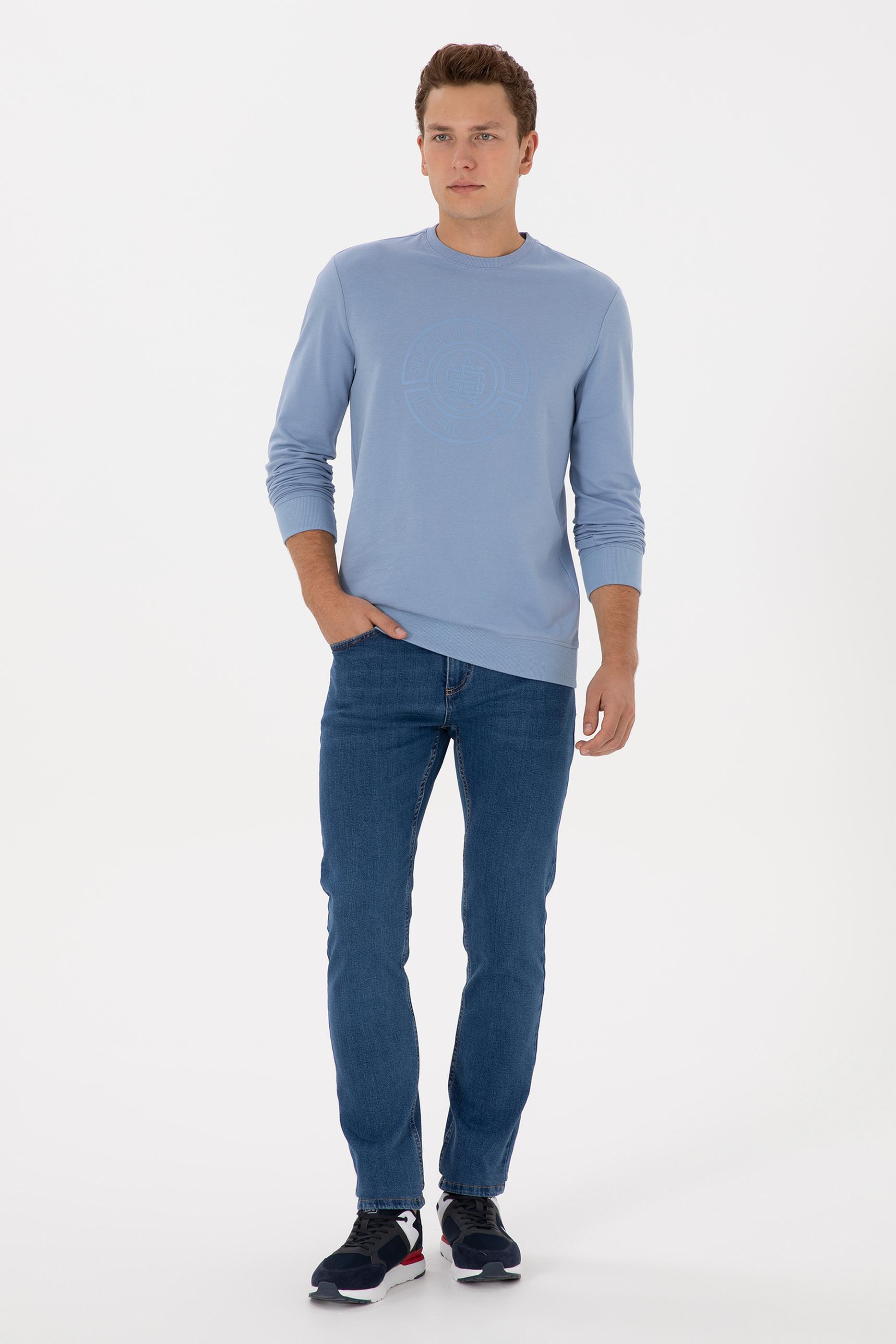 Erkek Regular Fit Bisiklet Yaka Mavi İnce Sweatshirt