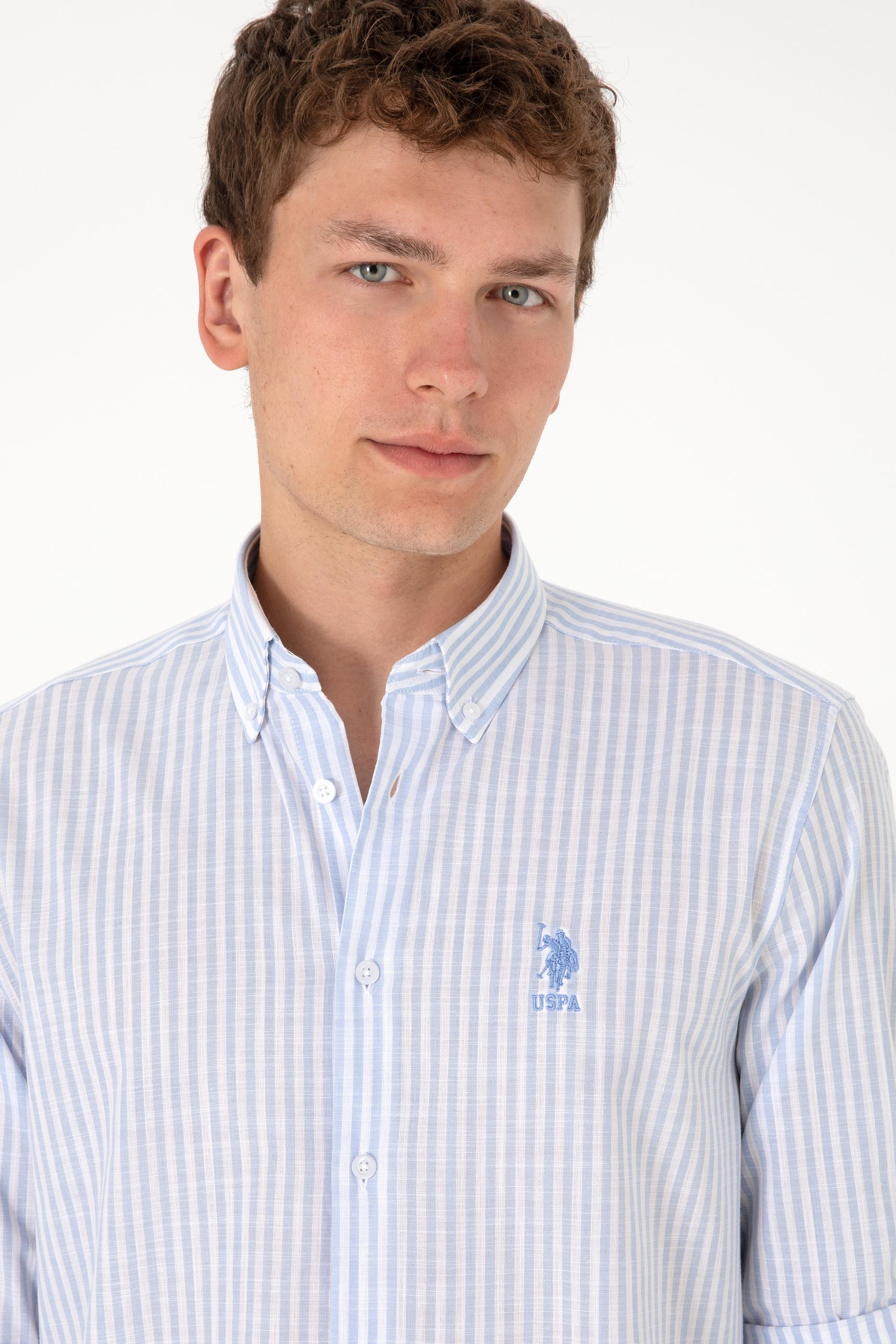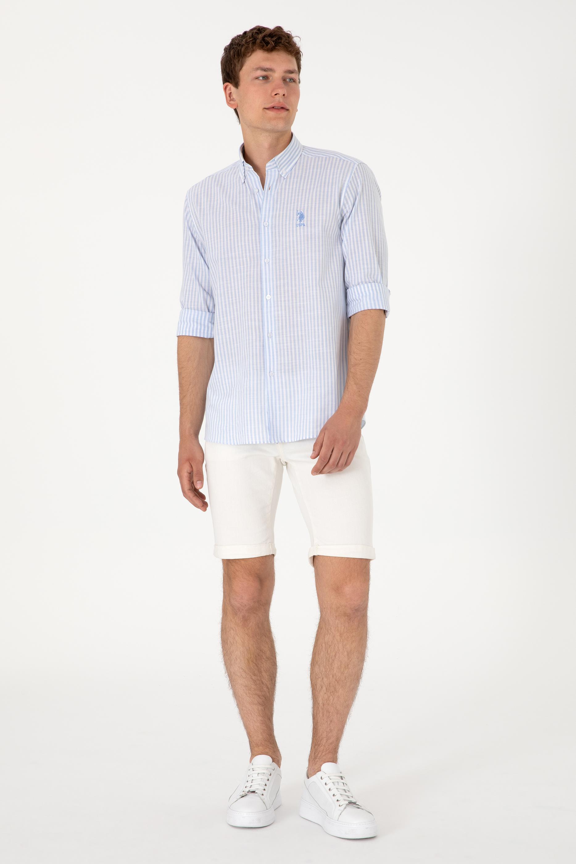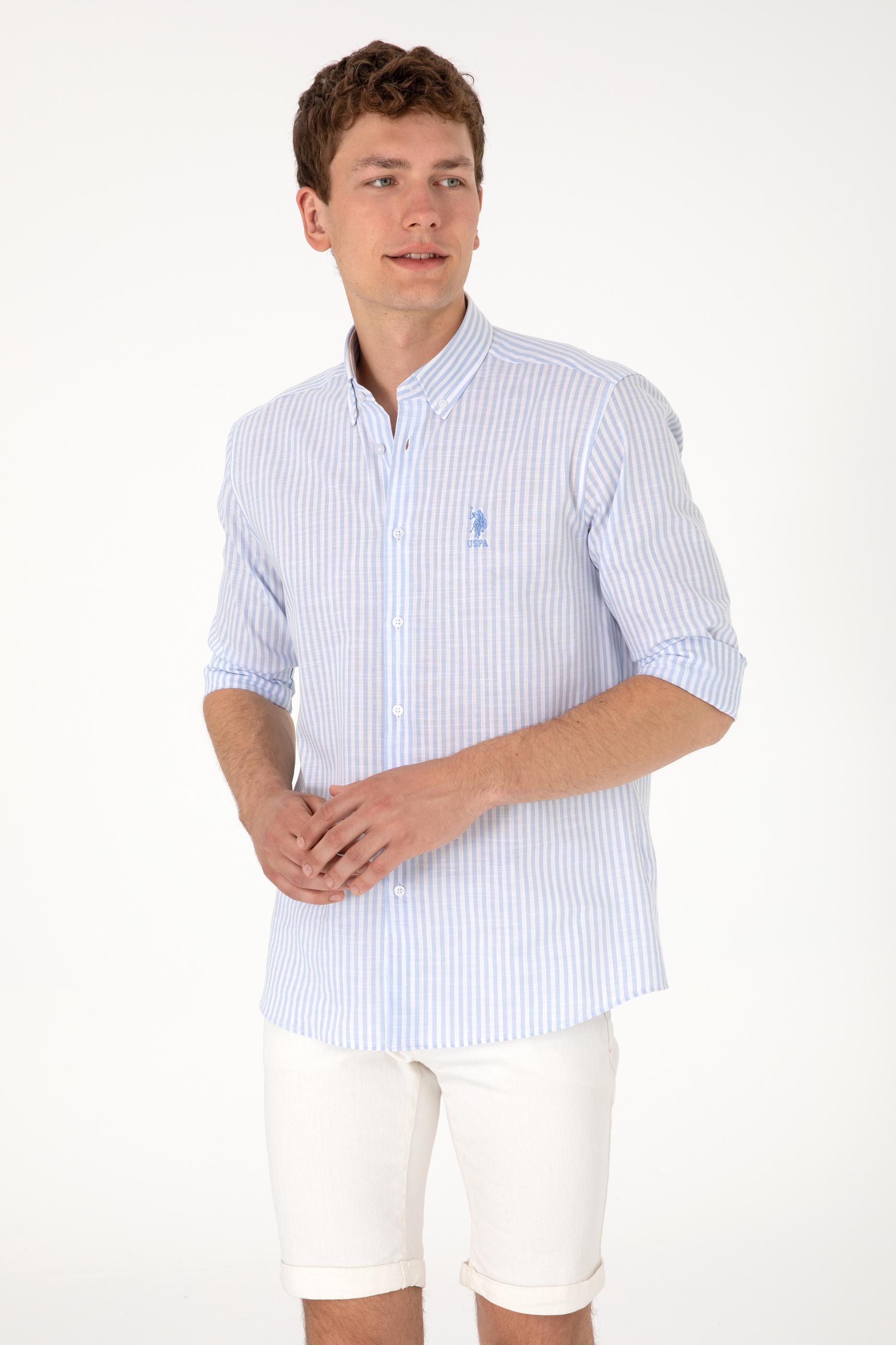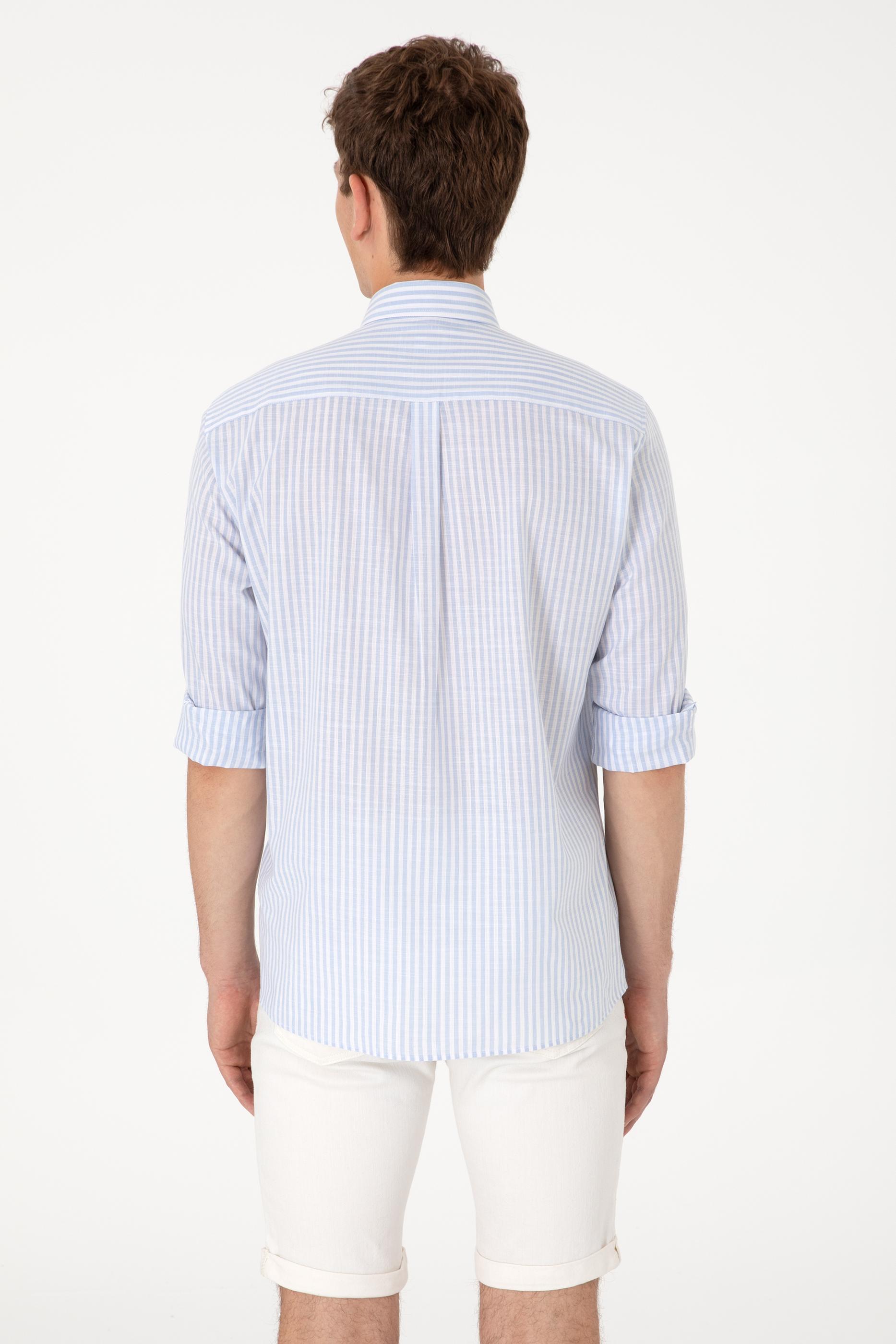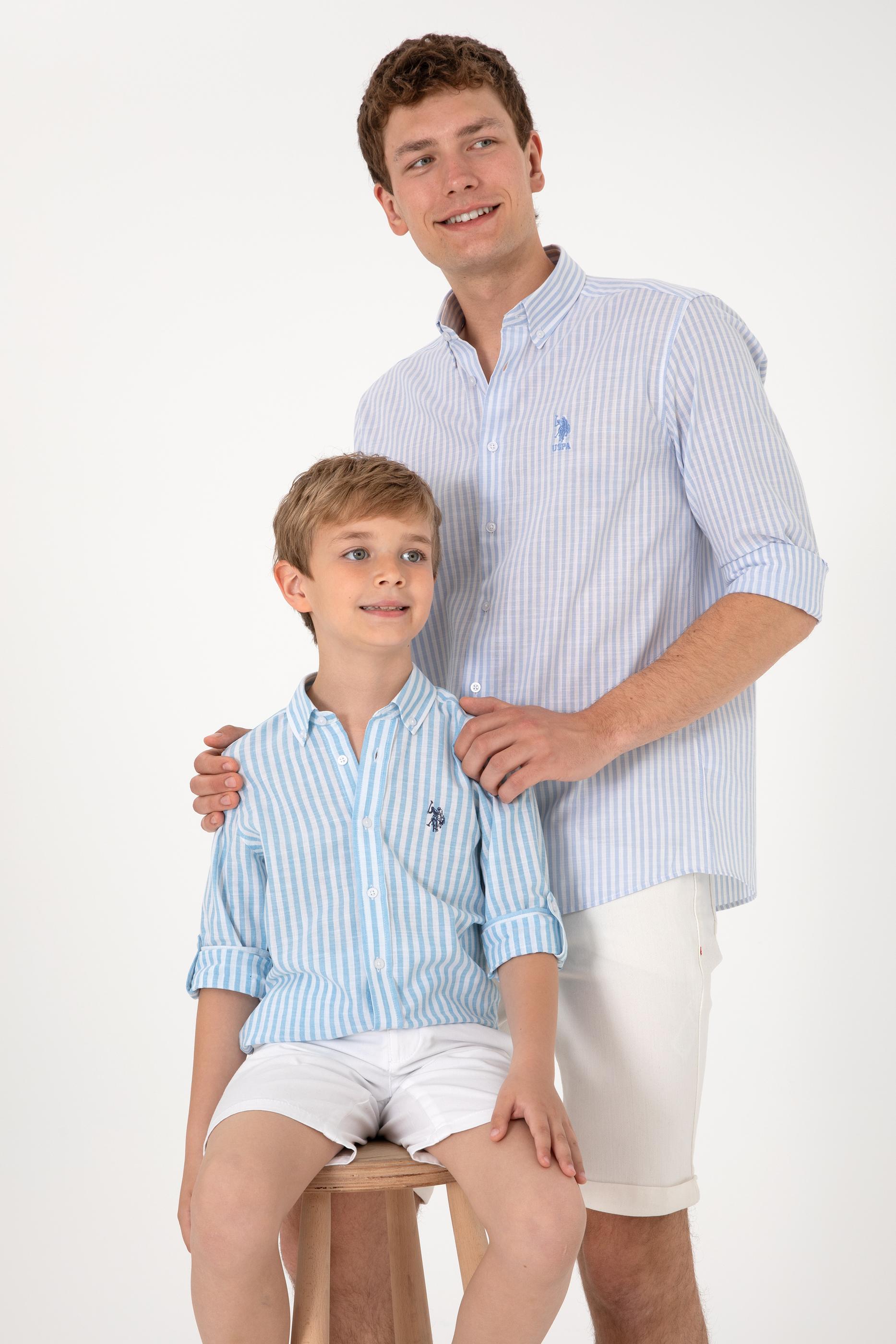Erkek Çizgili Mavi Gömlek