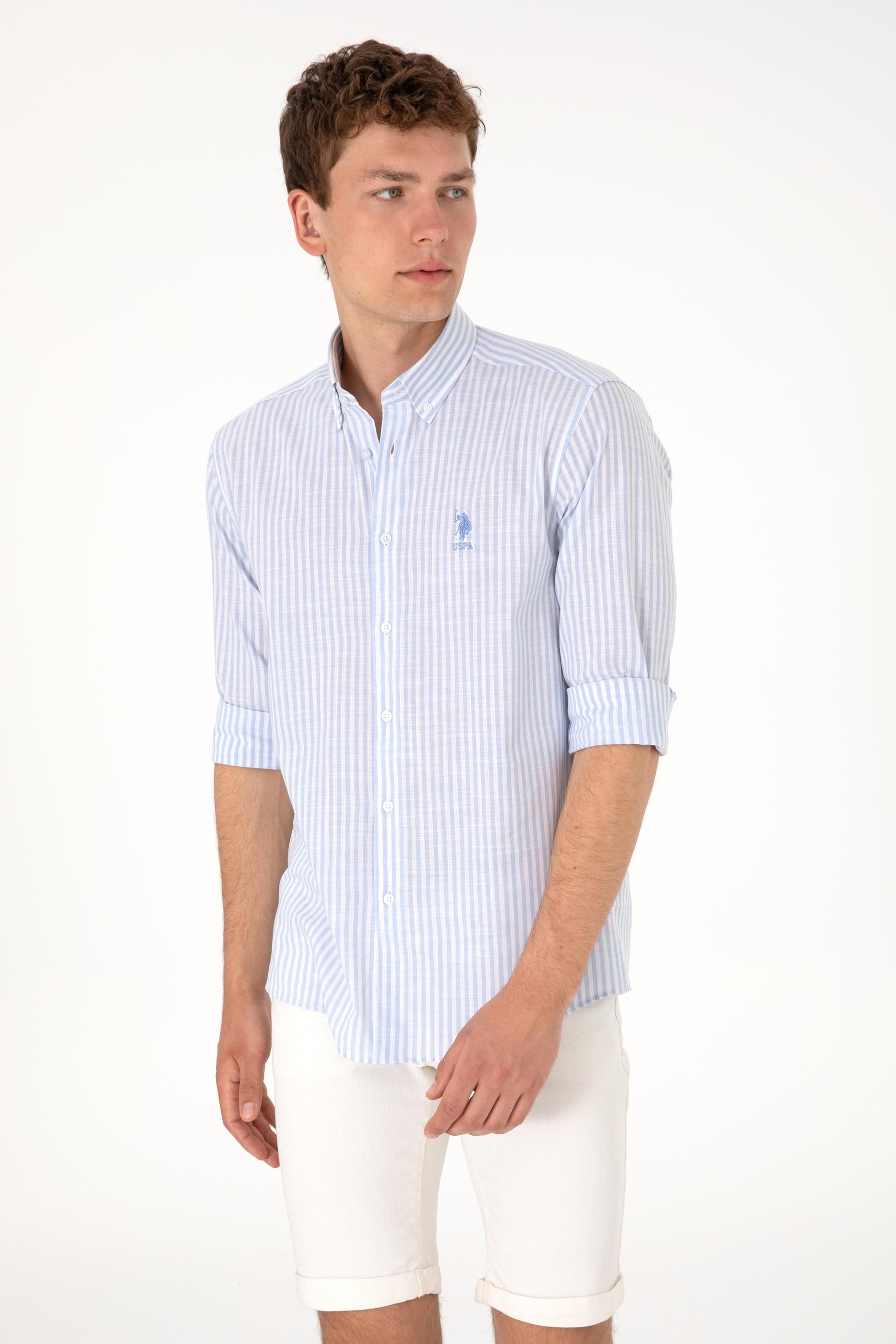 - Erkek Çizgili Mavi Gömlek
