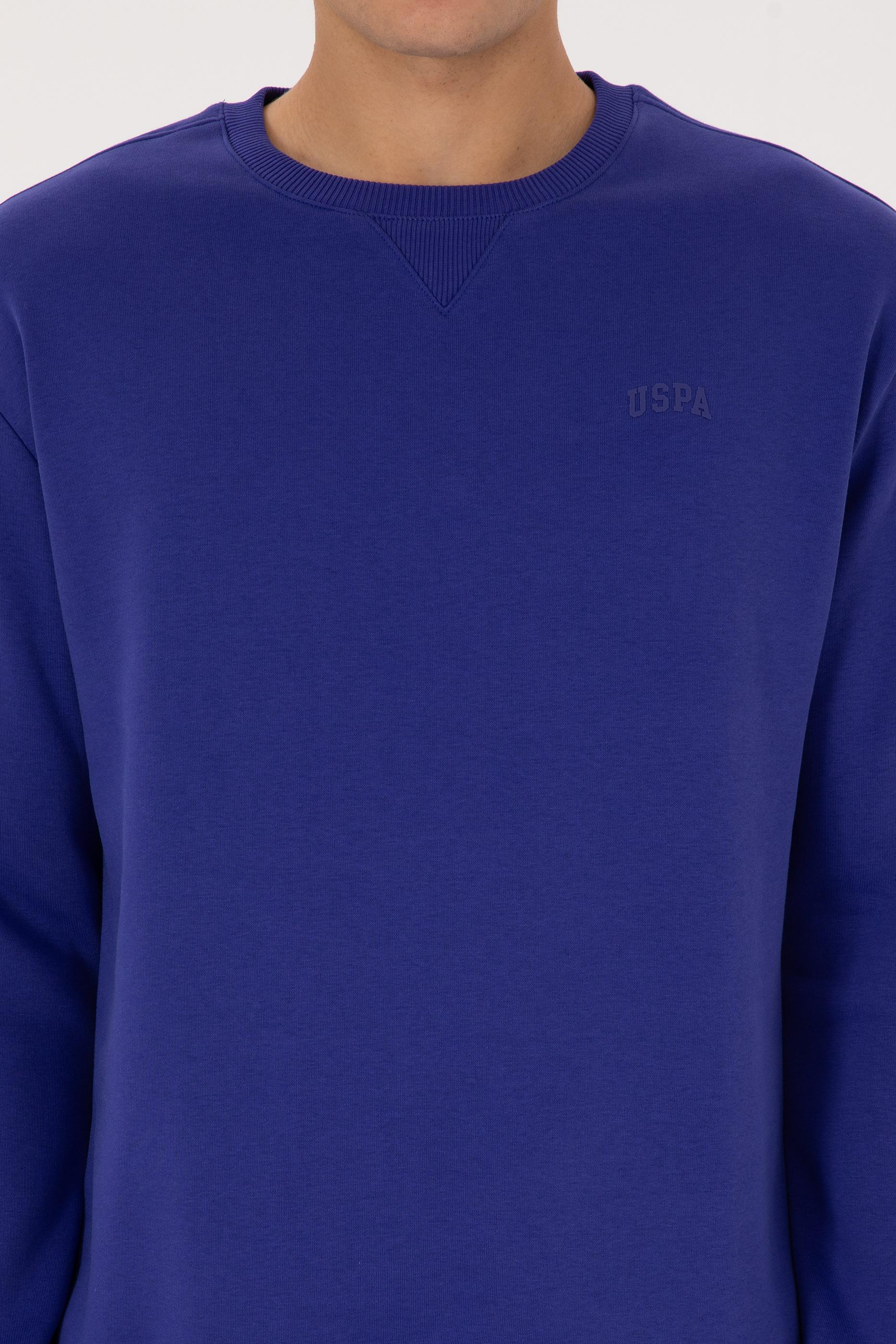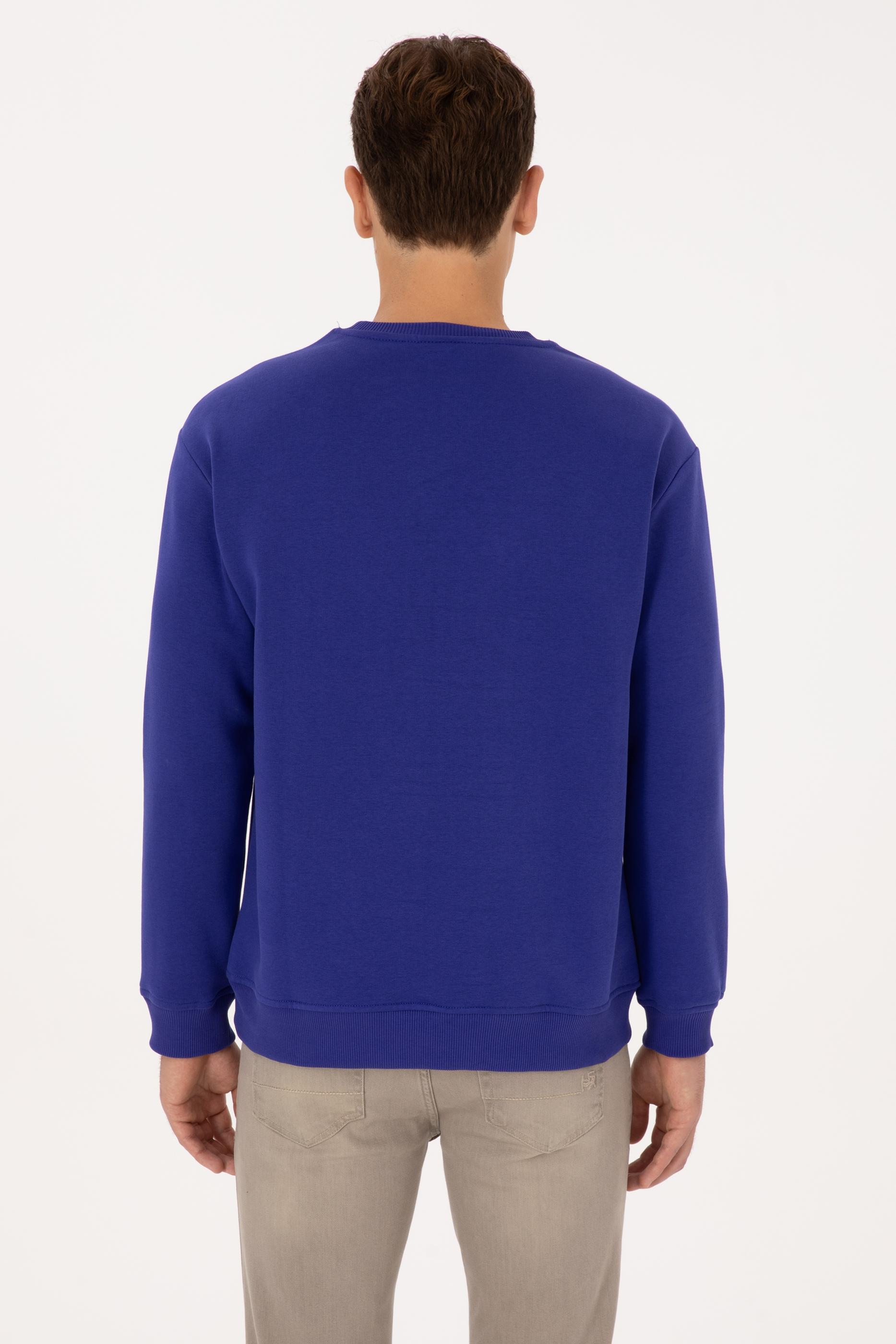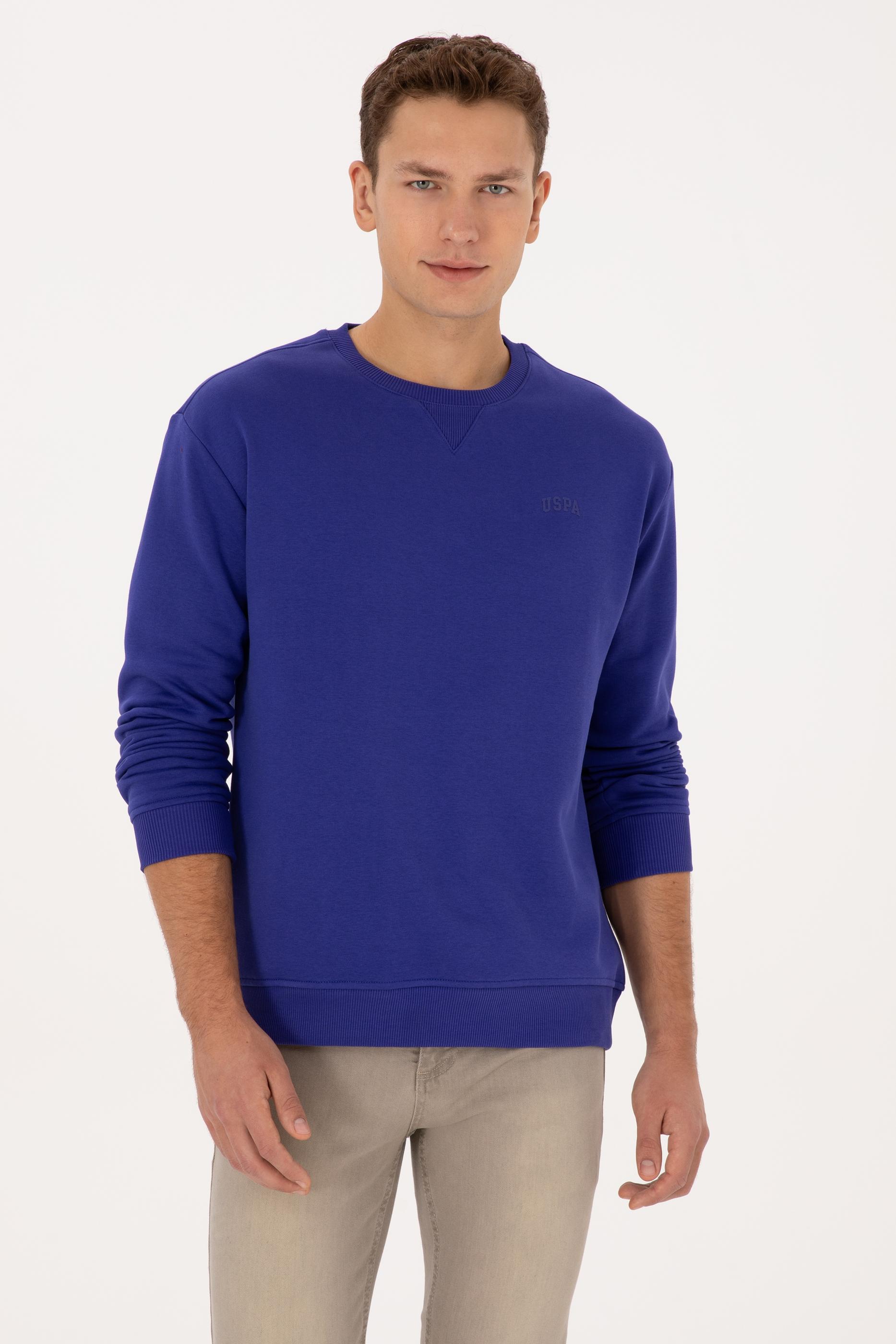 Erkek Comfort Fit Bisiklet Yaka Şardonlu Mor Basic Sweatshirt