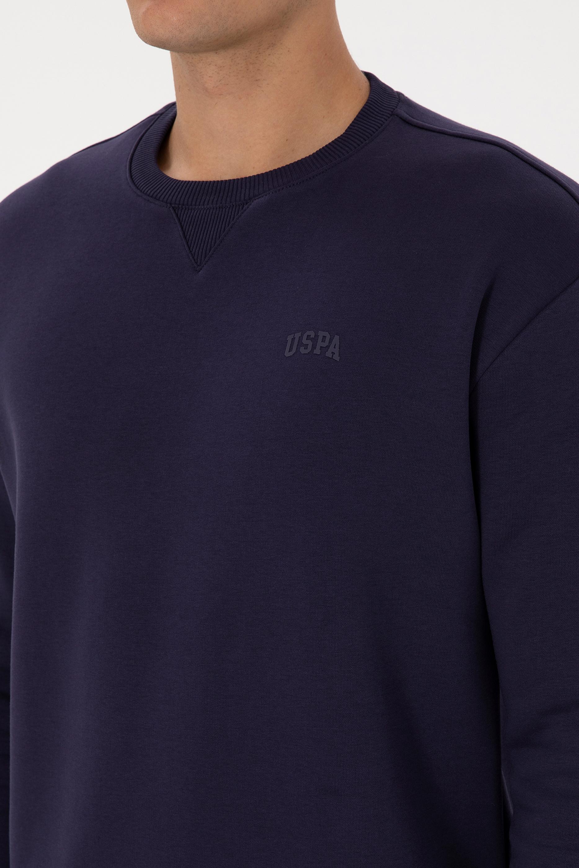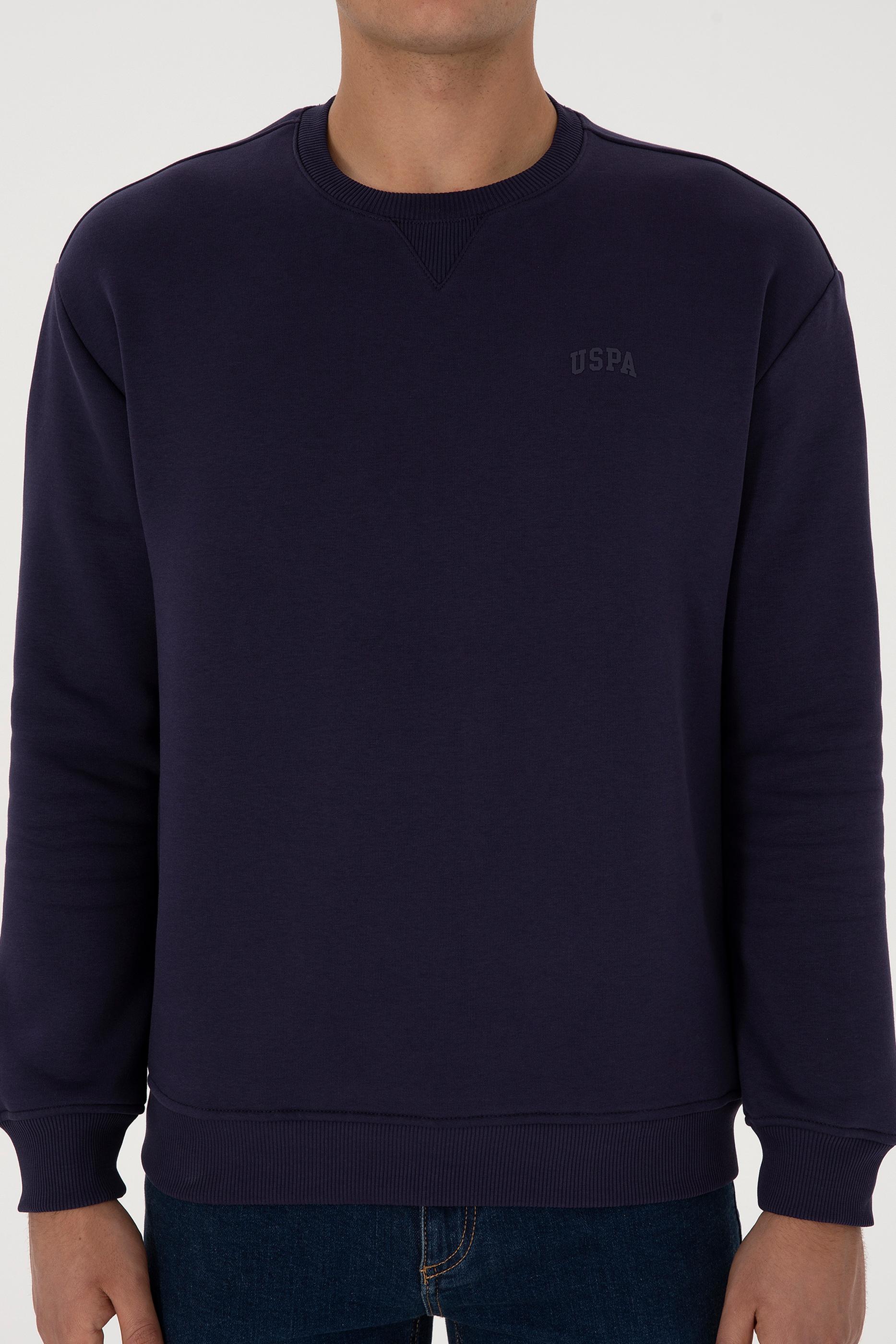Erkek Comfort Fit Bisiklet Yaka Şardonlu Mürdüm Basic Sweatshirt