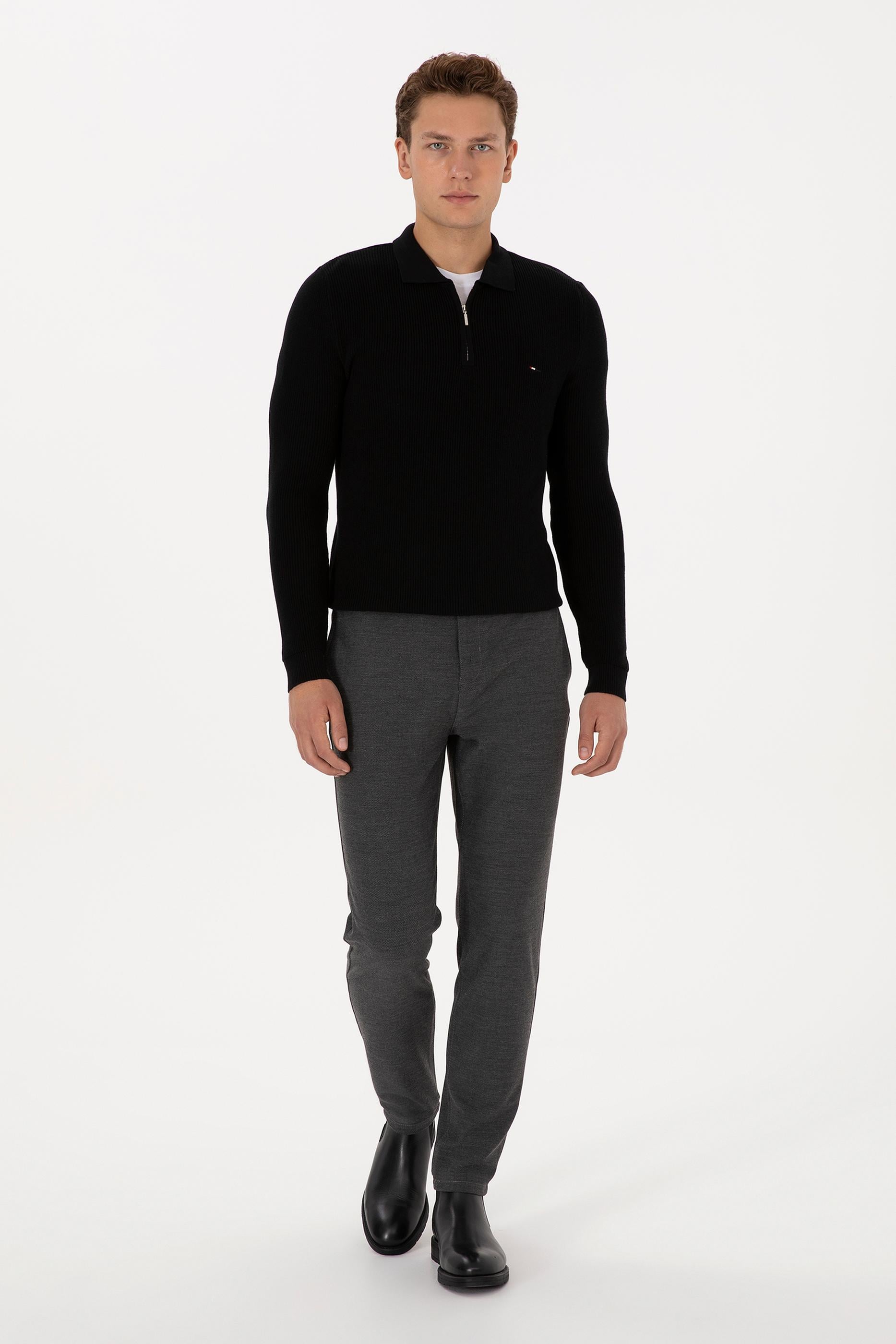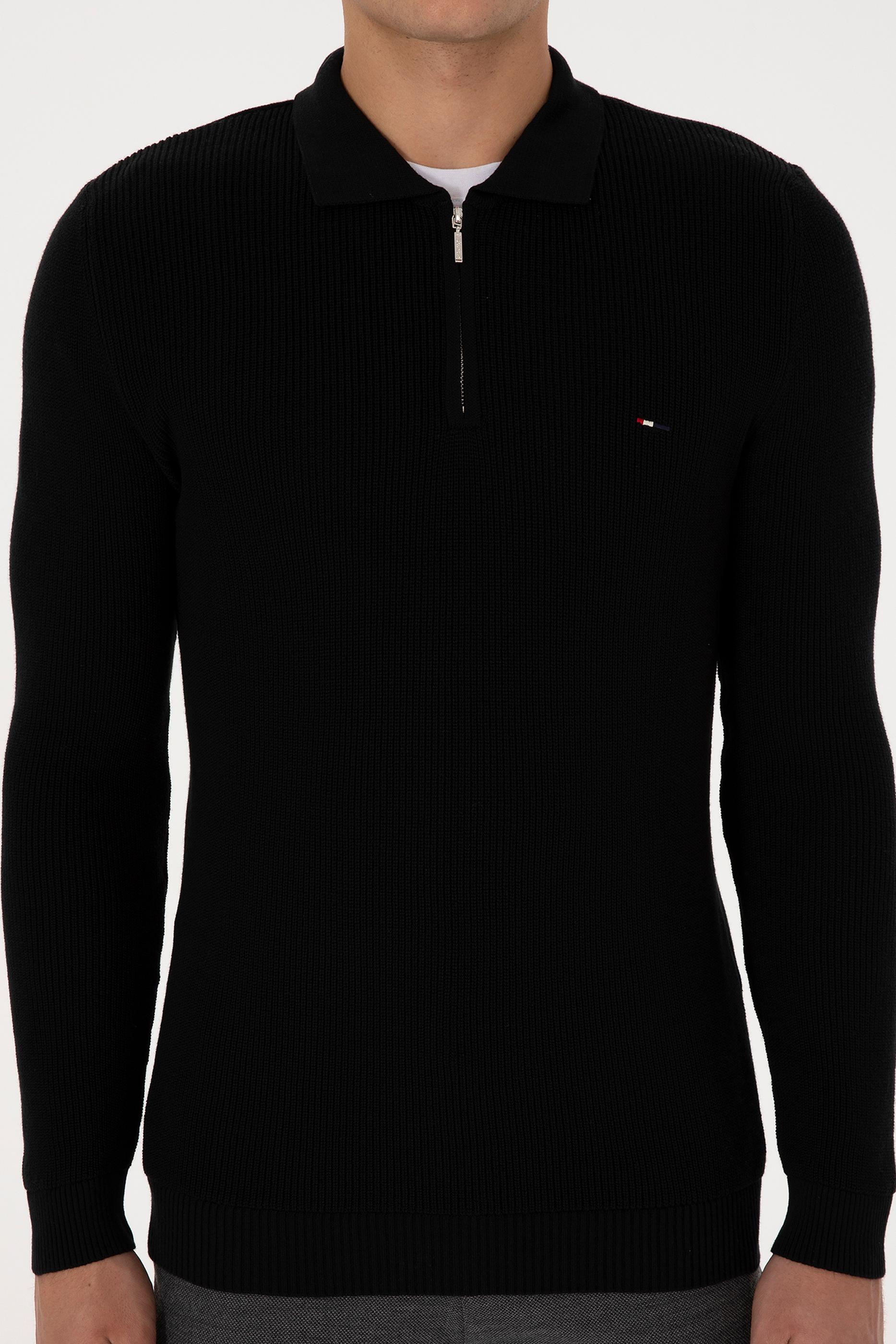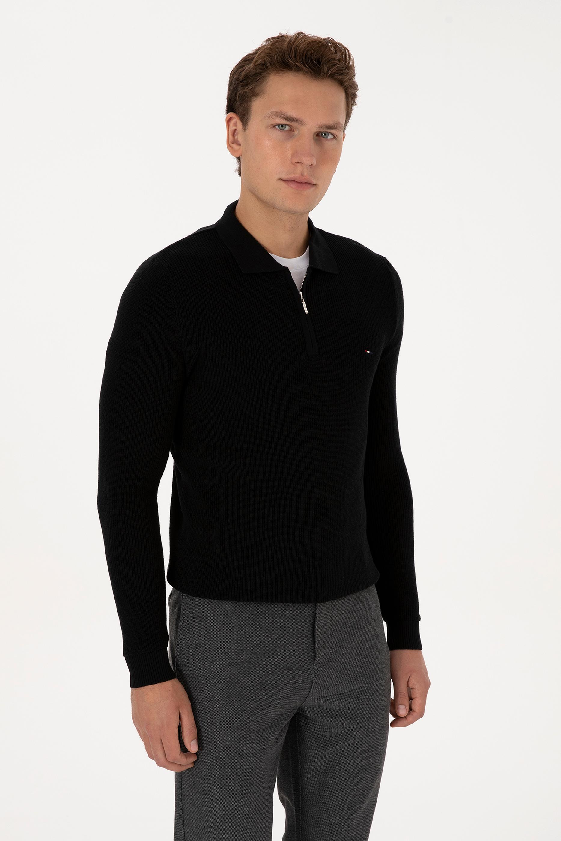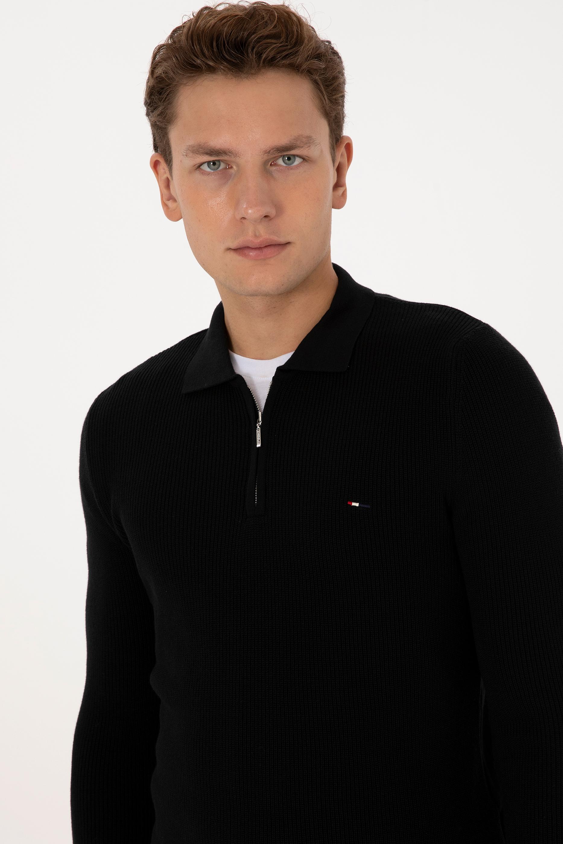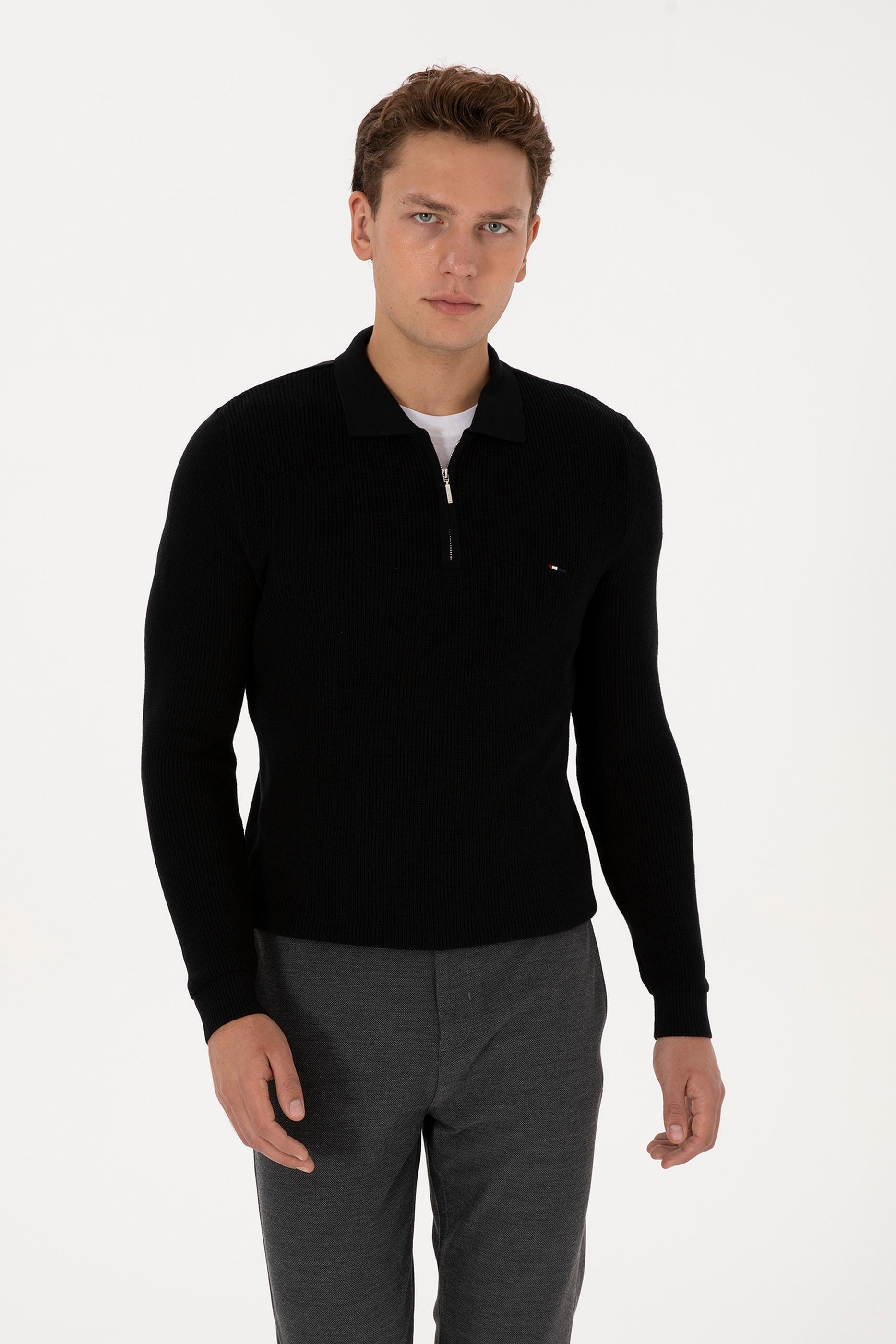 Modern tasarımı ve işlevsel detaylarıyla öne çıkan erkek siyah basic kazak, fermuarlı yapısıyla pratik kullanım imkânı sunar. Regular fit kalıbı sayesinde gün boyu rahatlık sağlarken, zamansız siyah rengi şık bir görünüm kazandırır. Dayanıklı triko dokusu uzun ömürlü kullanım imkânı verirken sade tasarımı her kombine uyum sağlar. Online’a özel satış avantajıyla gardırobunuza hem konfor hem de stil katan bir parça ekleyin.