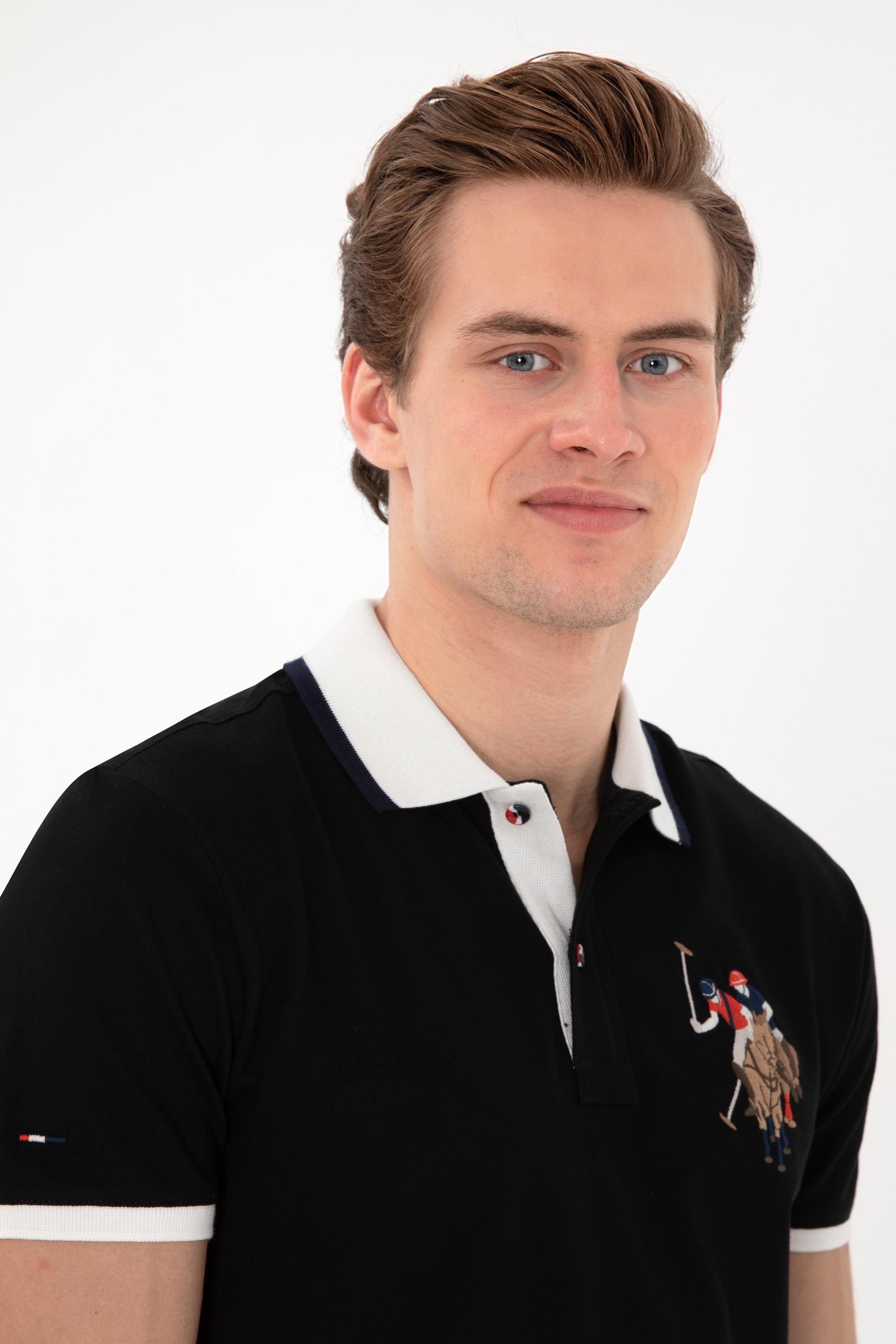 - Erkek Slim Fit Polo Yaka Siyah Basic Tişört