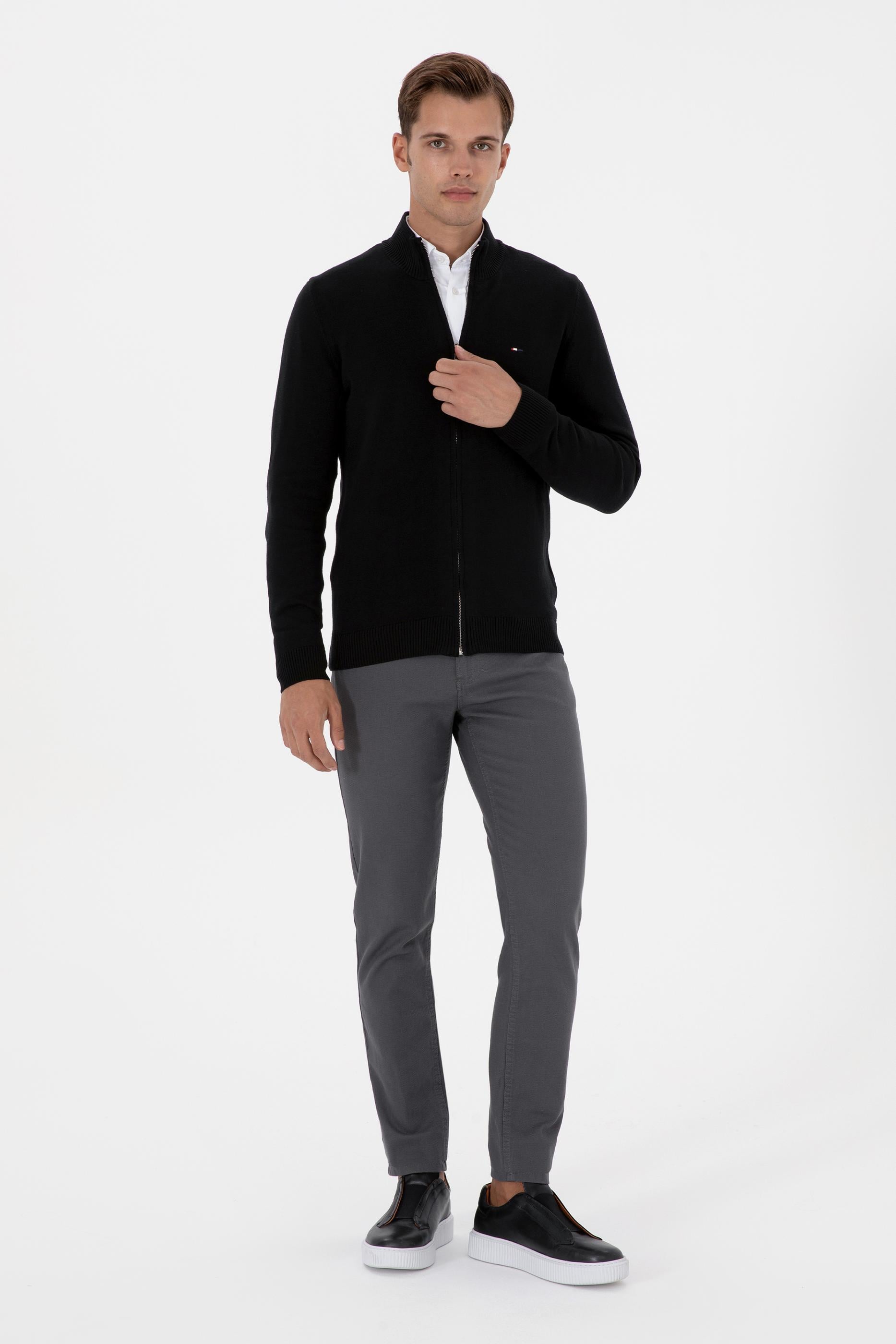 Erkek Slim Fit Siyah Basic Triko Hırka