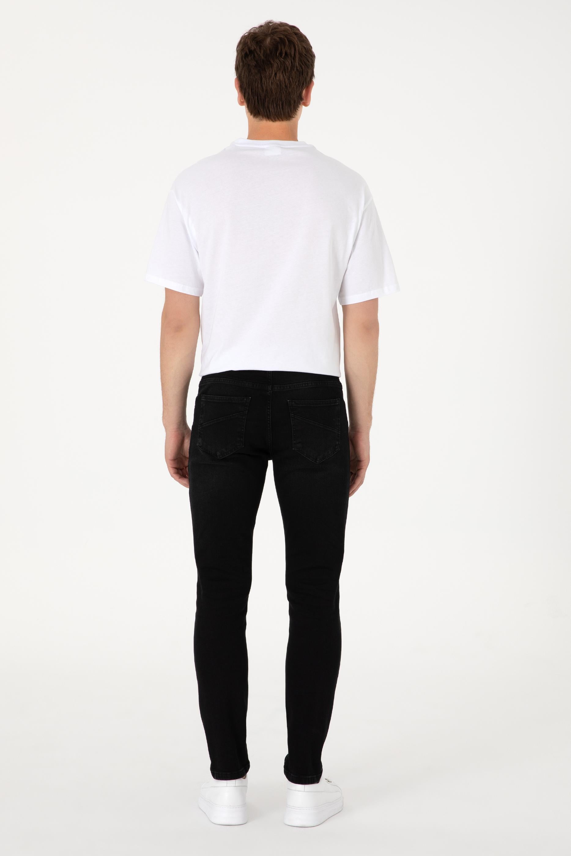 Modern ve güçlü duruşuyla öne çıkan siyah erkek denim pantolon, pamuk ve elastan karışımıyla hem doğal konfor hem de esneklik sunar. Slim fit kalıbı sayesinde vücuda oturarak şık ve dinamik bir siluet oluşturur. Hafif elastik yapısı sayesinde hareket kabiliyetini artırır ve gün boyu rahat bir kullanım sağlar. 5 cepli klasik tasarımı, hem fonksiyonellik hem de zamansız bir stil sunar. Siyah rengi, günlük kombinlerden akşam şıklığına kadar geniş bir kullanım alanı sağlar; gömlek, tişört veya ceketlerle zahmetsizce tamamlanabilir. Denim kumaşın sağlam yapısı sayesinde uzun ömürlü kullanım sunar. Şehir hayatının hızlı temposuna uyum sağlarken stilinden ödün vermek istemeyen erkekler için ideal bir seçenektir. Şıklık ve fonksiyonelliği bir arada arayanlar için gardırobun vazgeçilmez parçalarından biri olmaya adaydır.