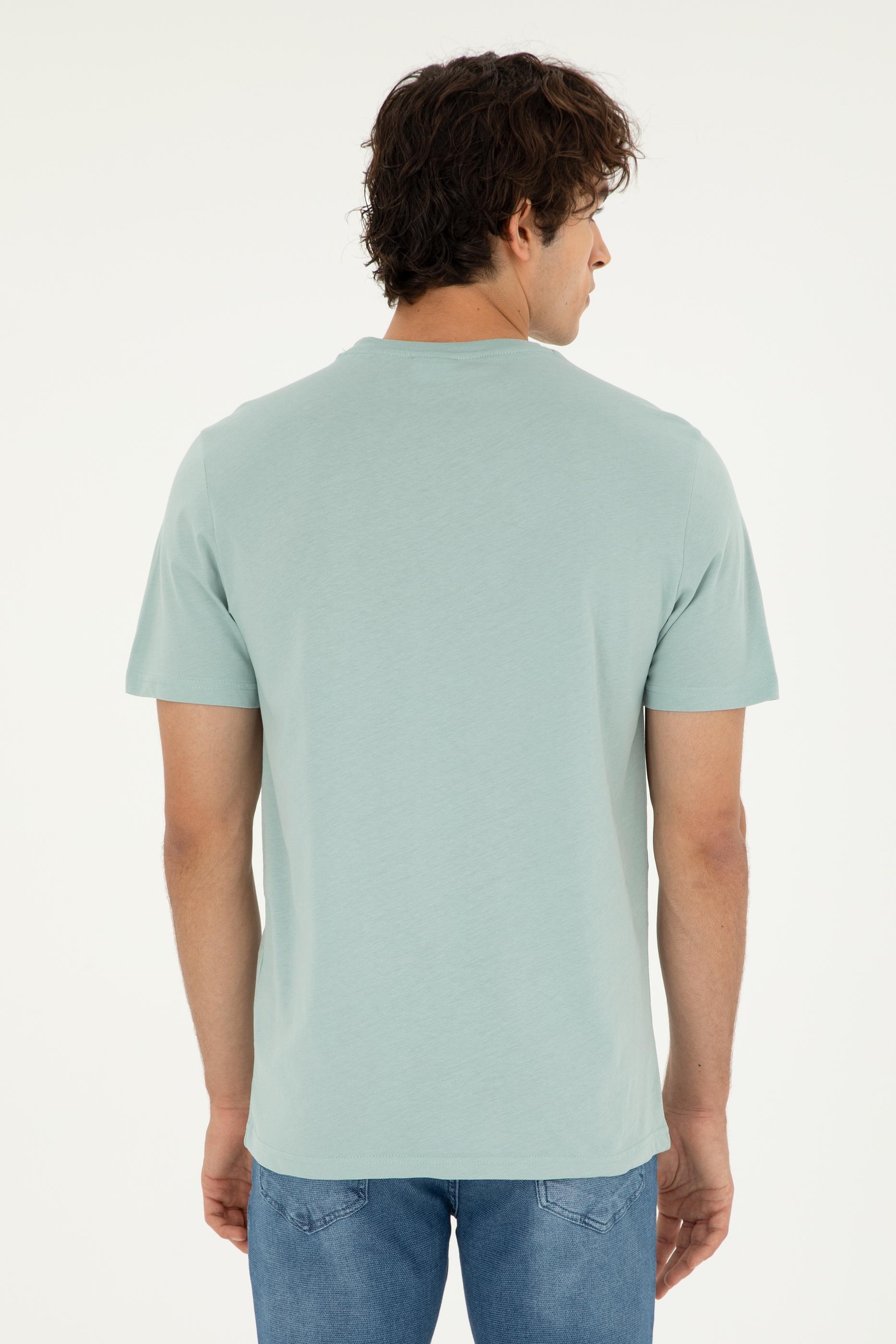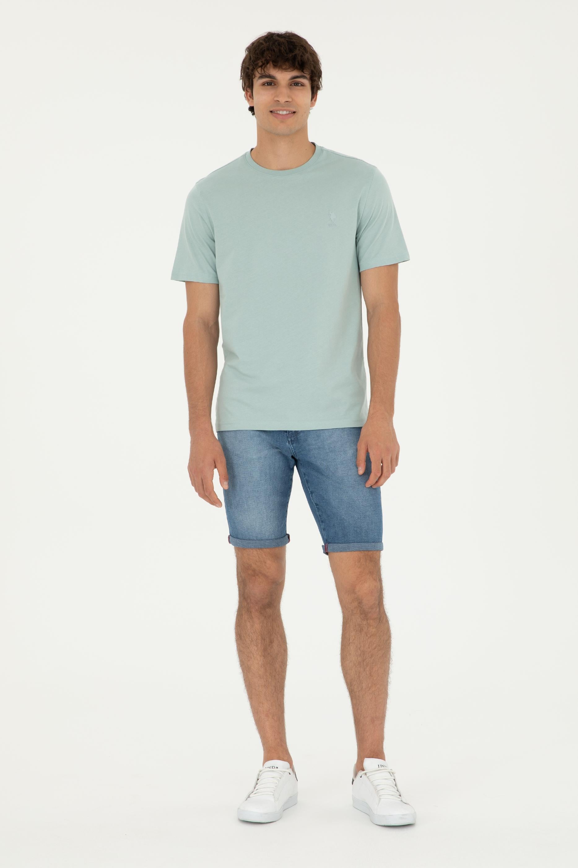 - Erkek Regular Fit Bisiklet Yaka Su Yeşili Basic Tişört