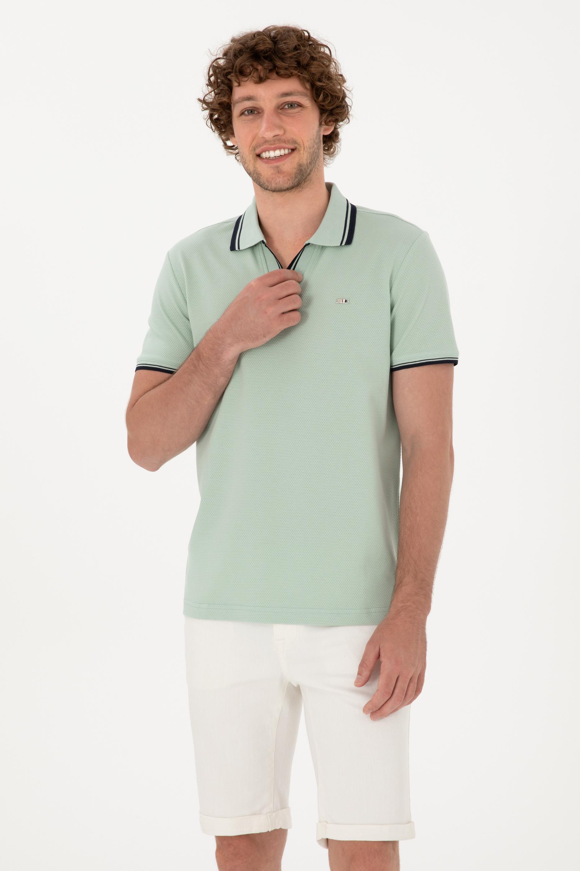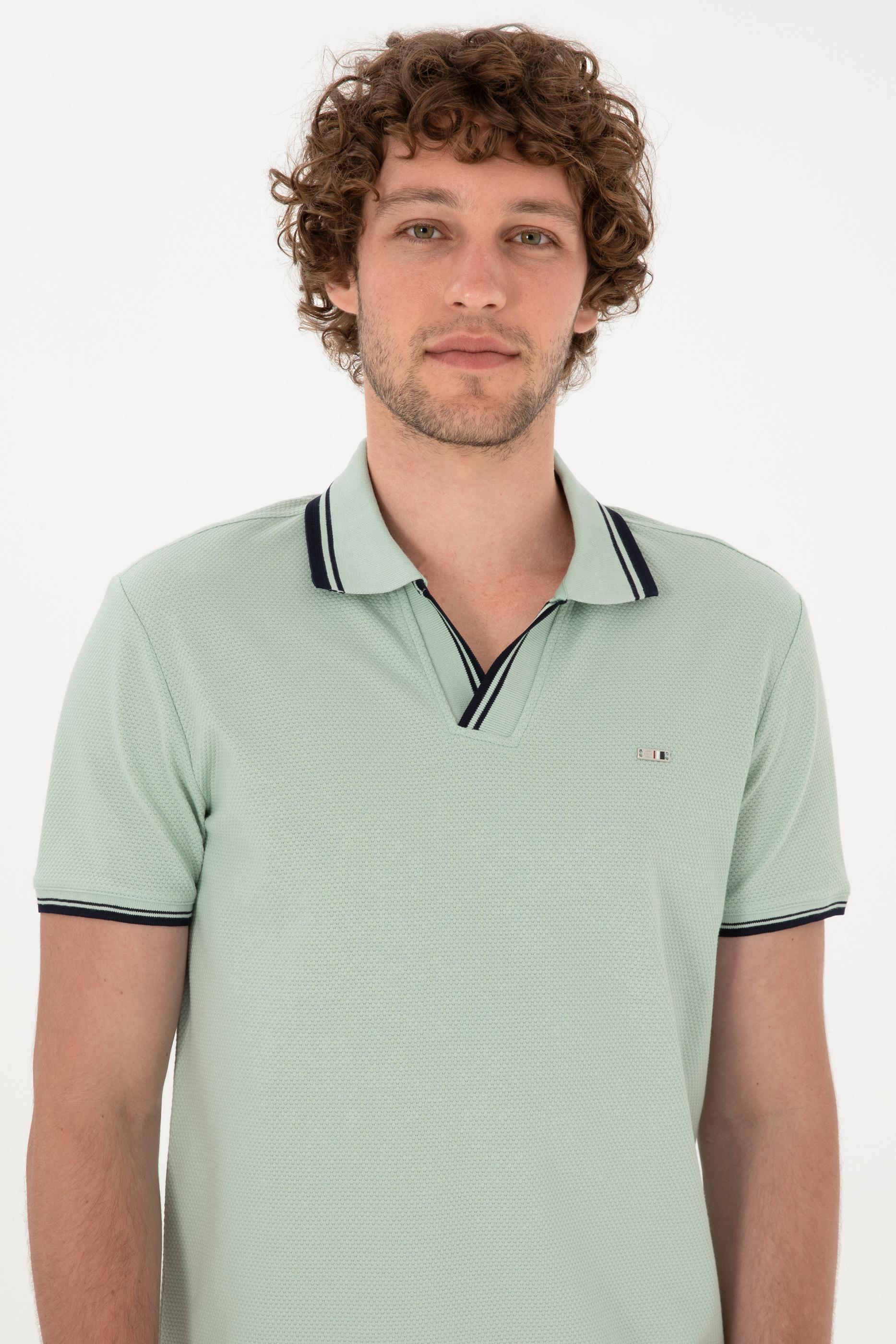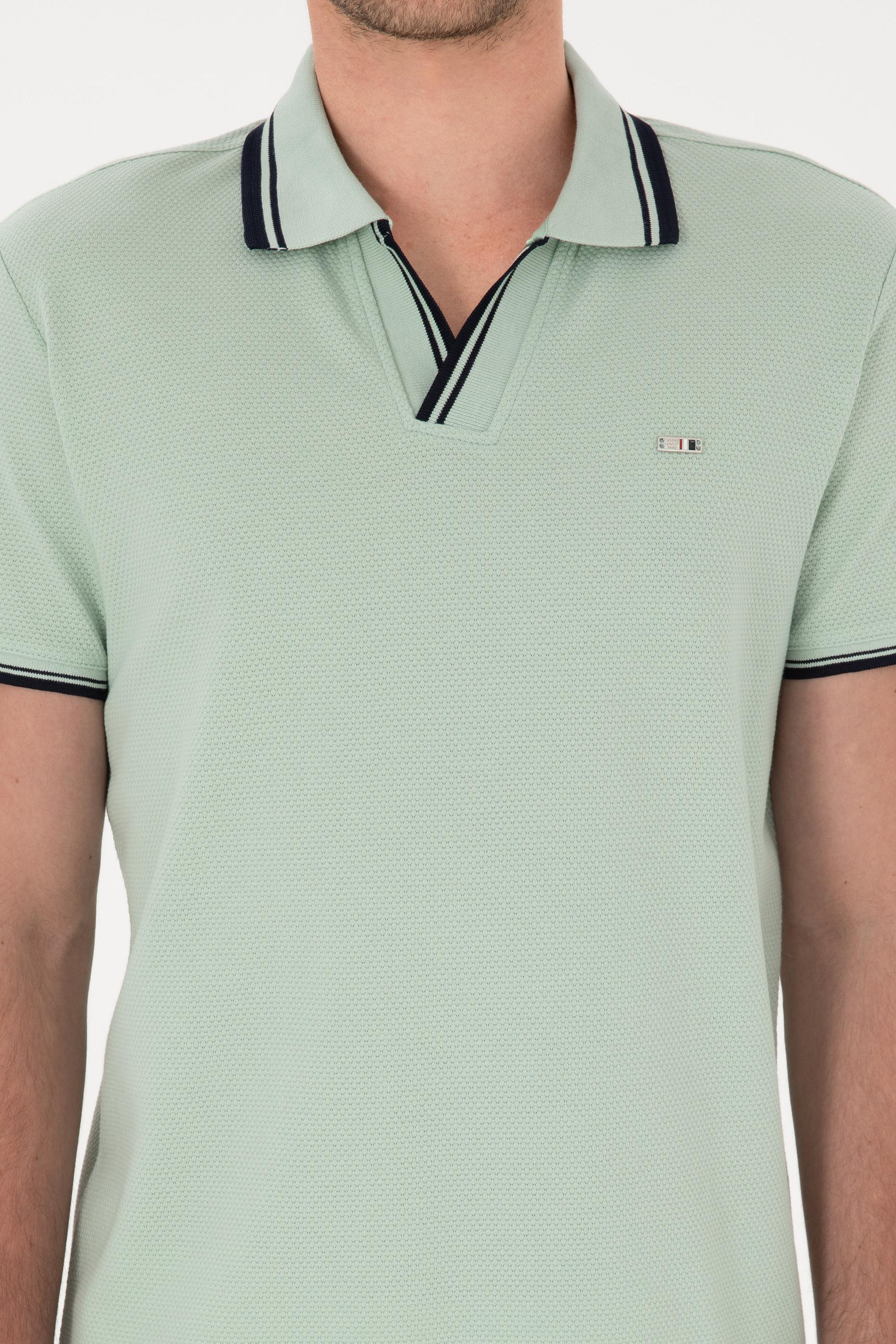 Erkek Slim Fit Kaçık Yaka Su Yeşili Tişört