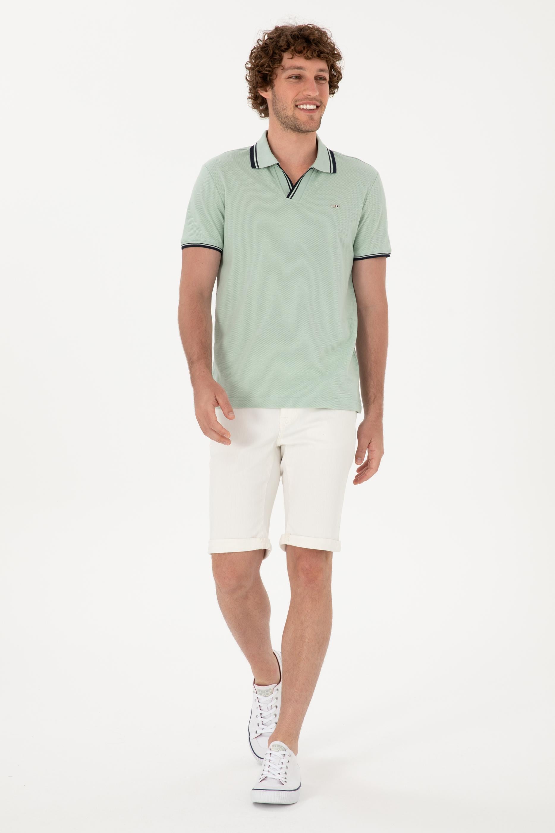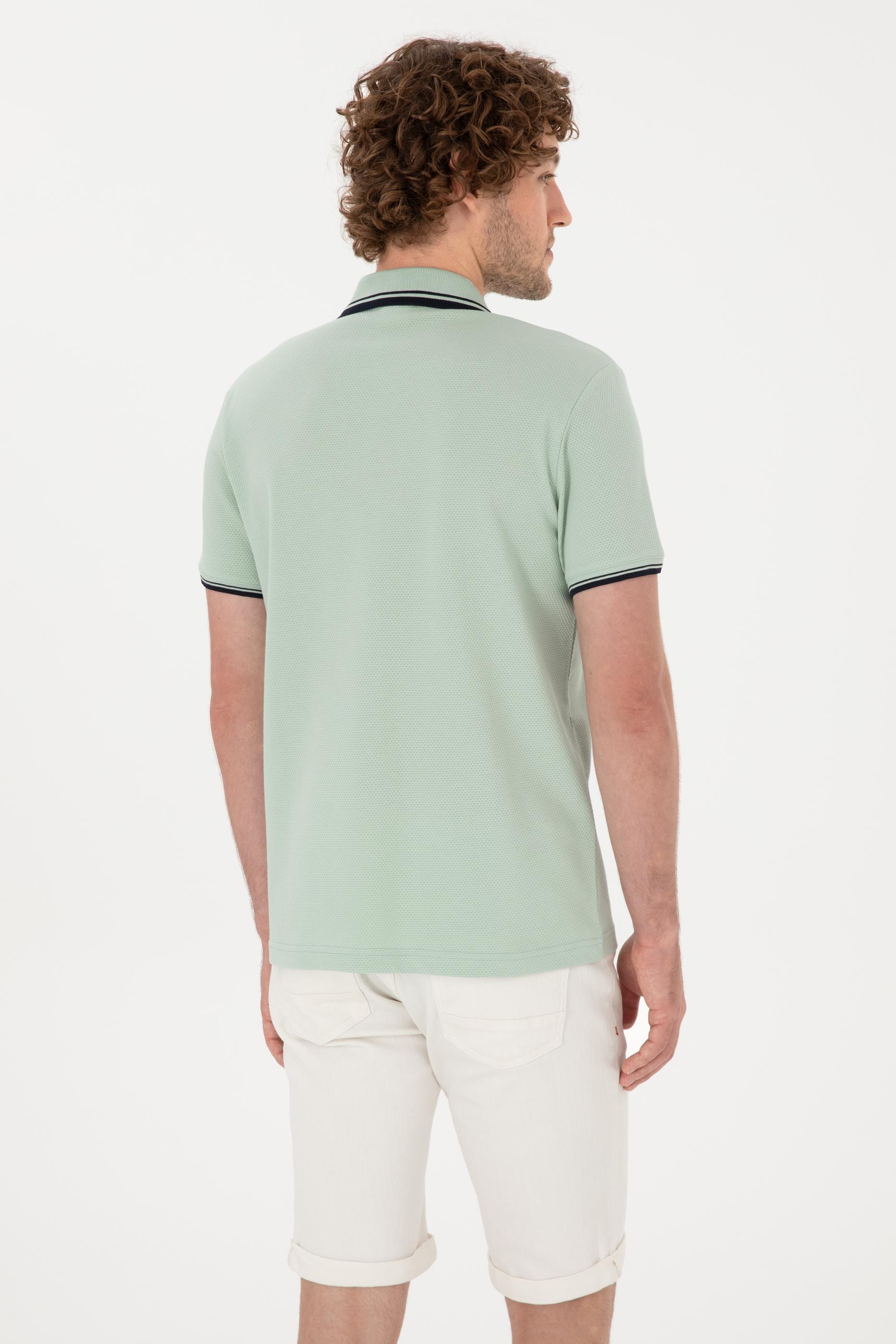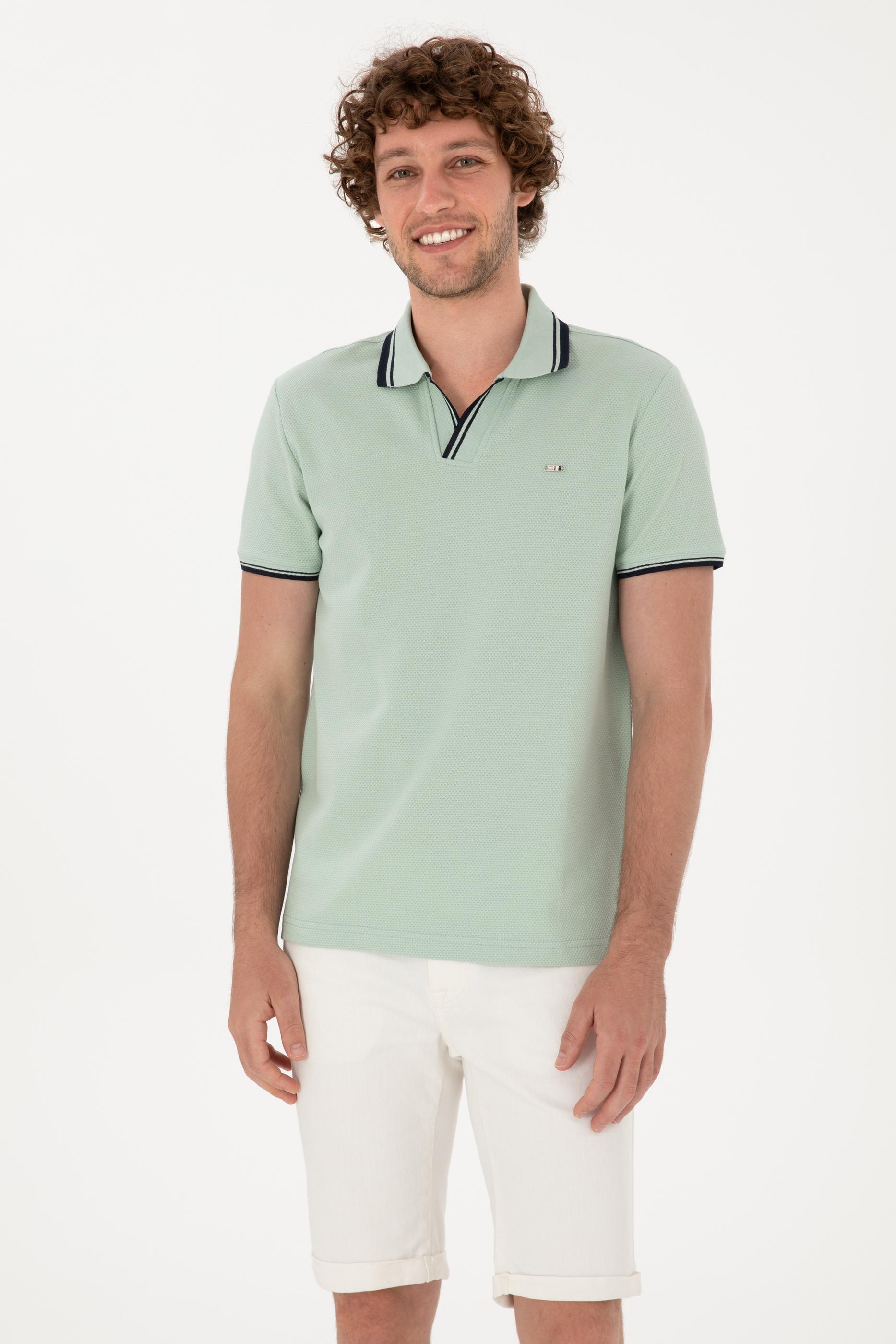 Erkek Slim Fit Kaçık Yaka Su Yeşili Tişört