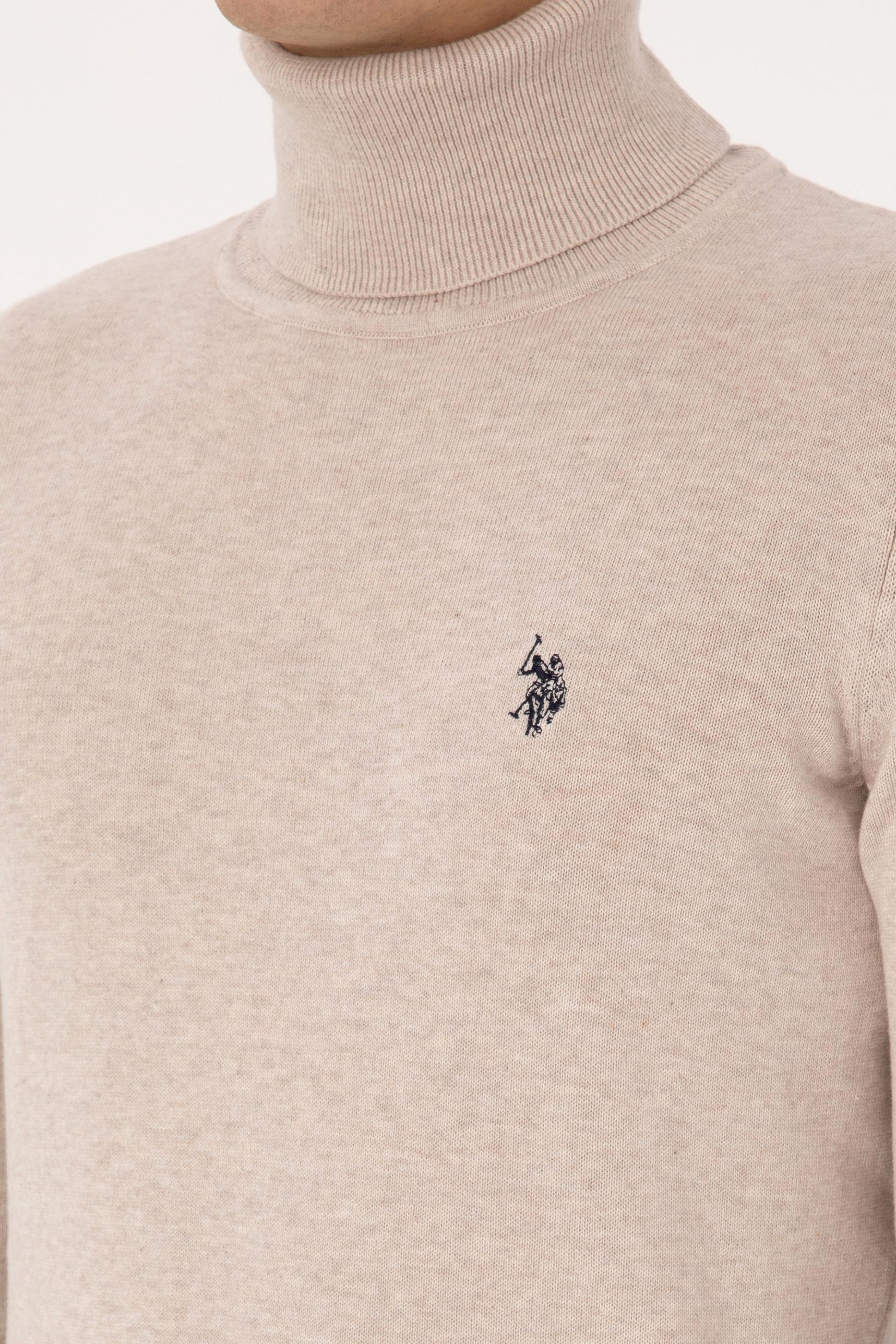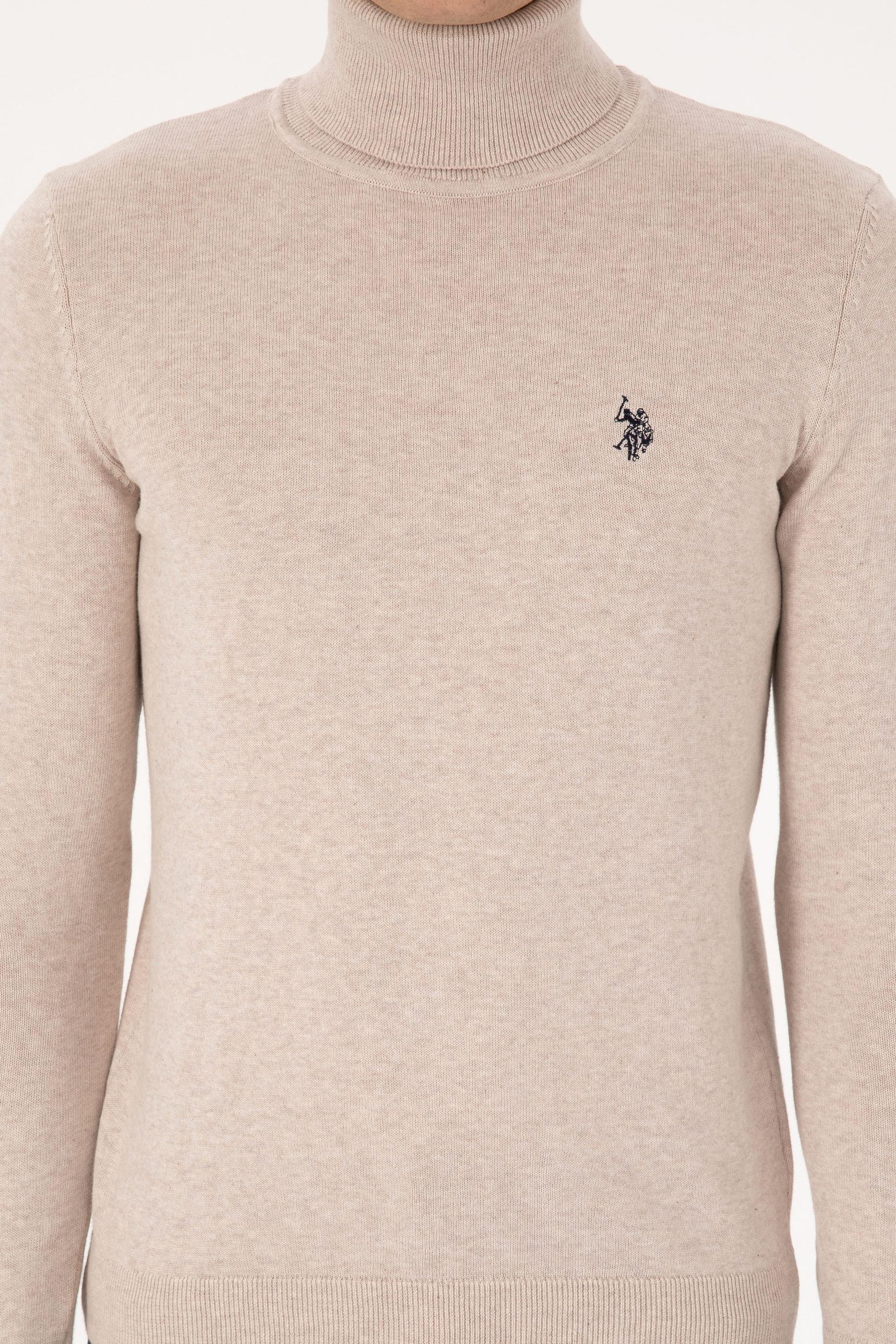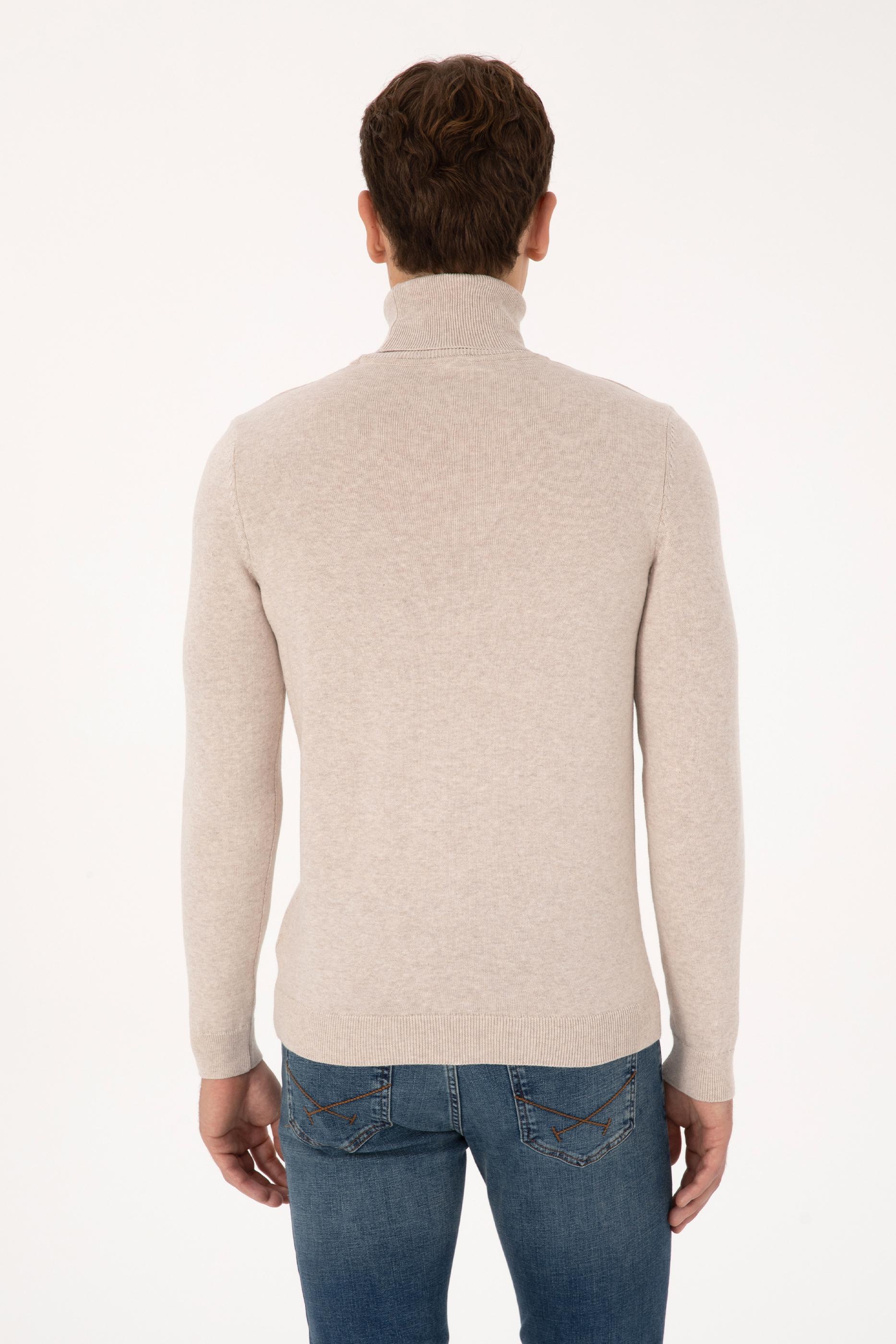 Erkek Slim Fit Boğazlı Yaka Taş Melanj Kazak