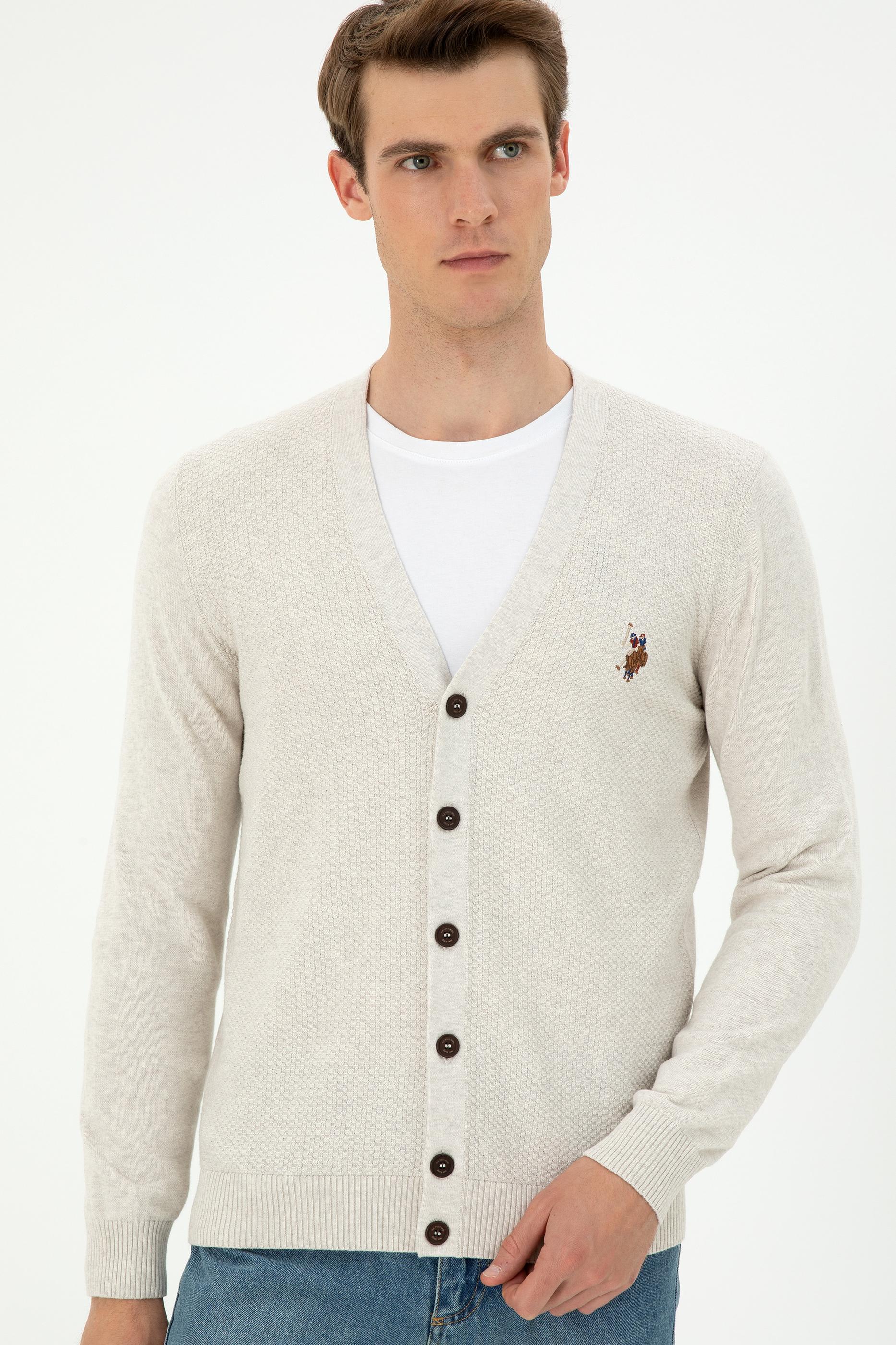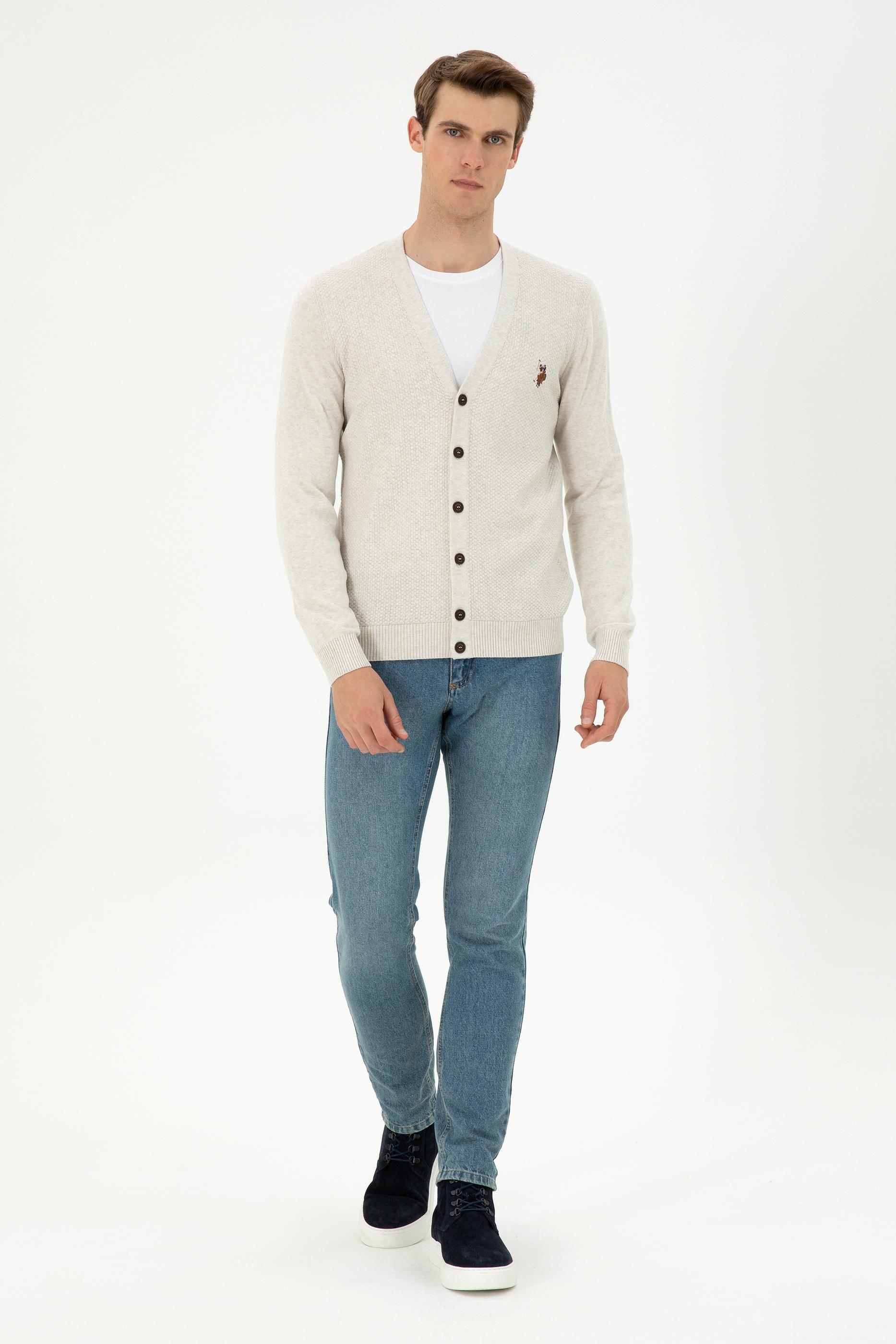 Erkek Taş Melanj Basic Triko Hırka